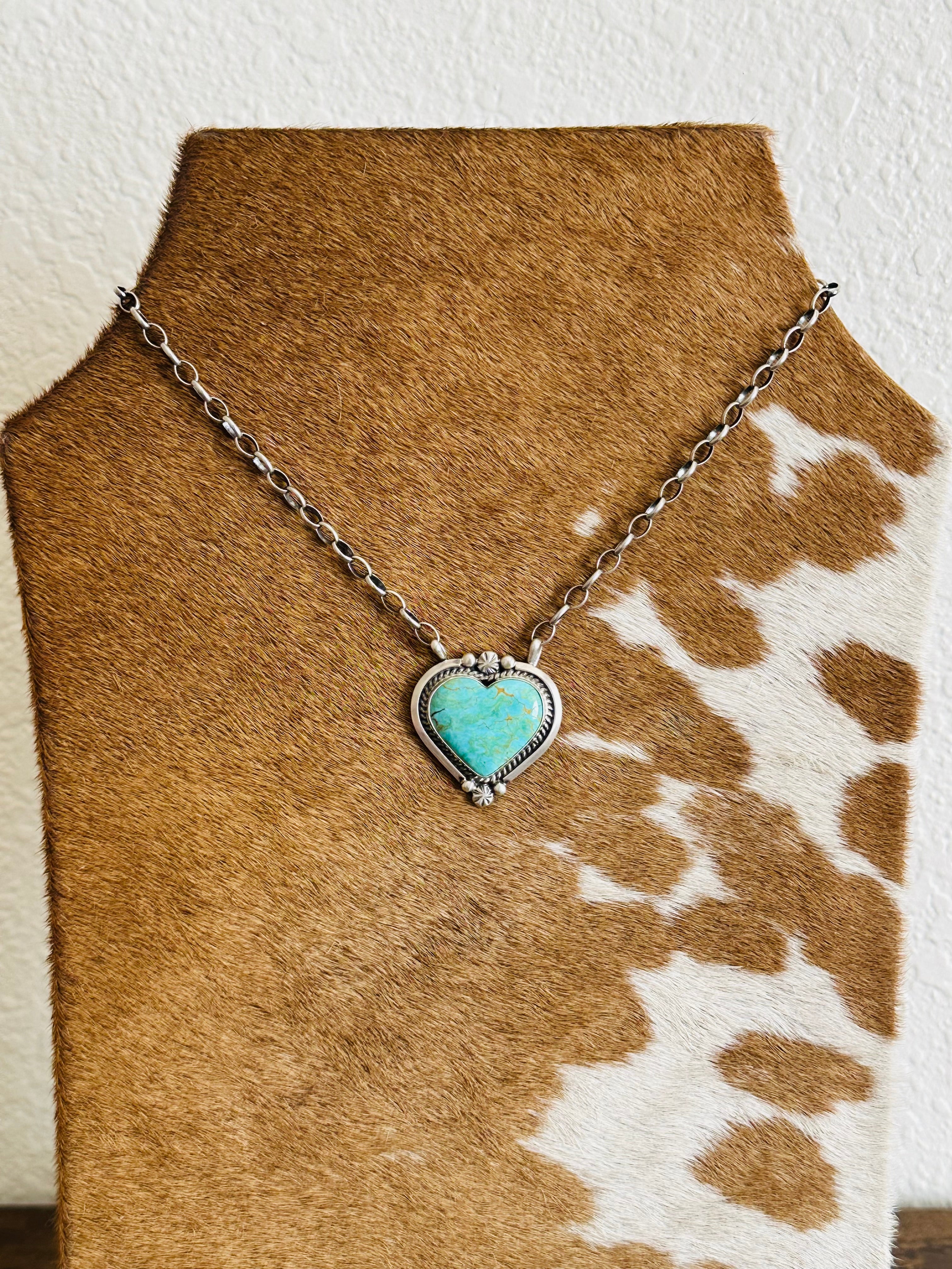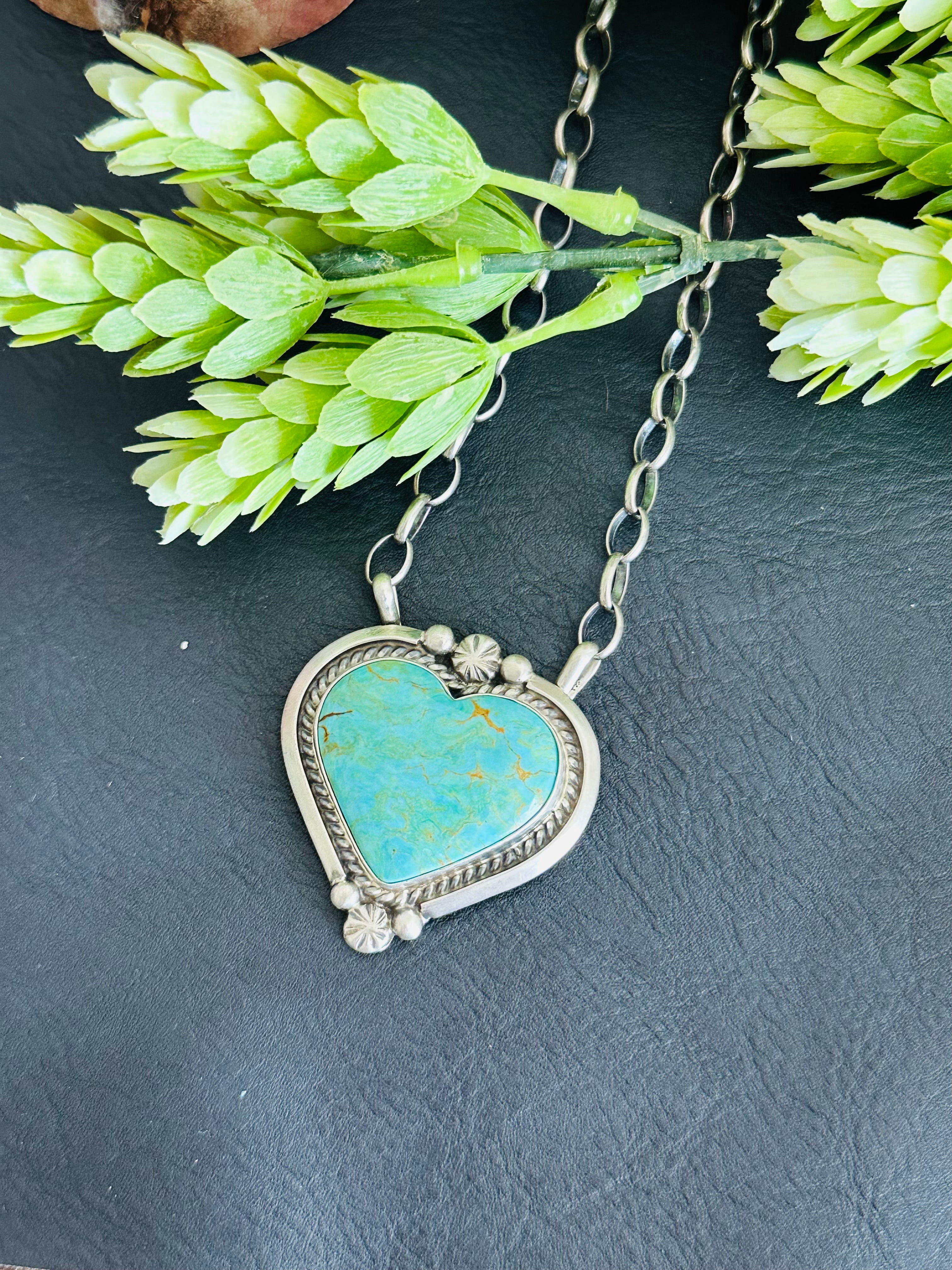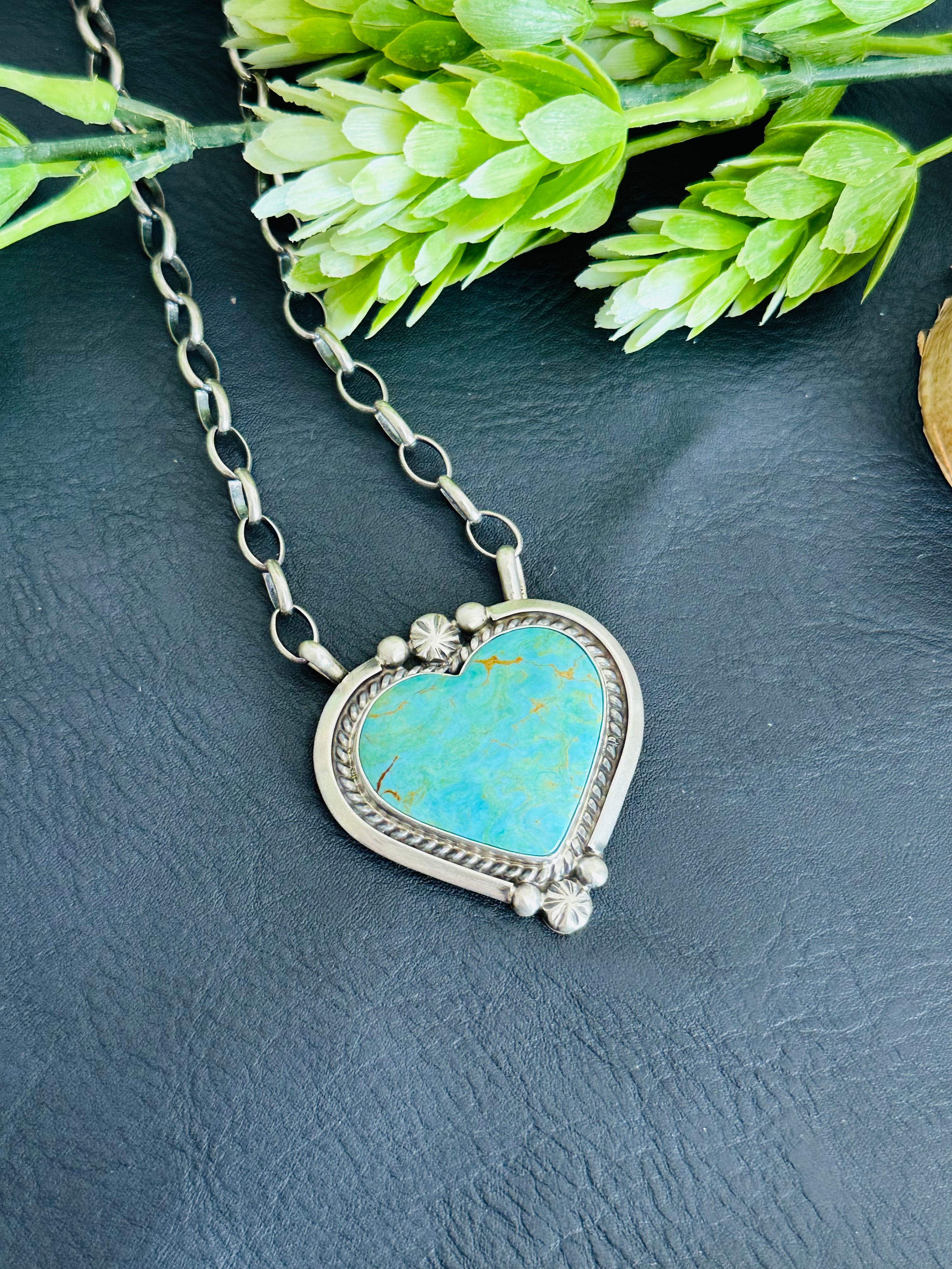 Alfred Martinez Kingman Turquoise & Sterling Silver Heart Necklace