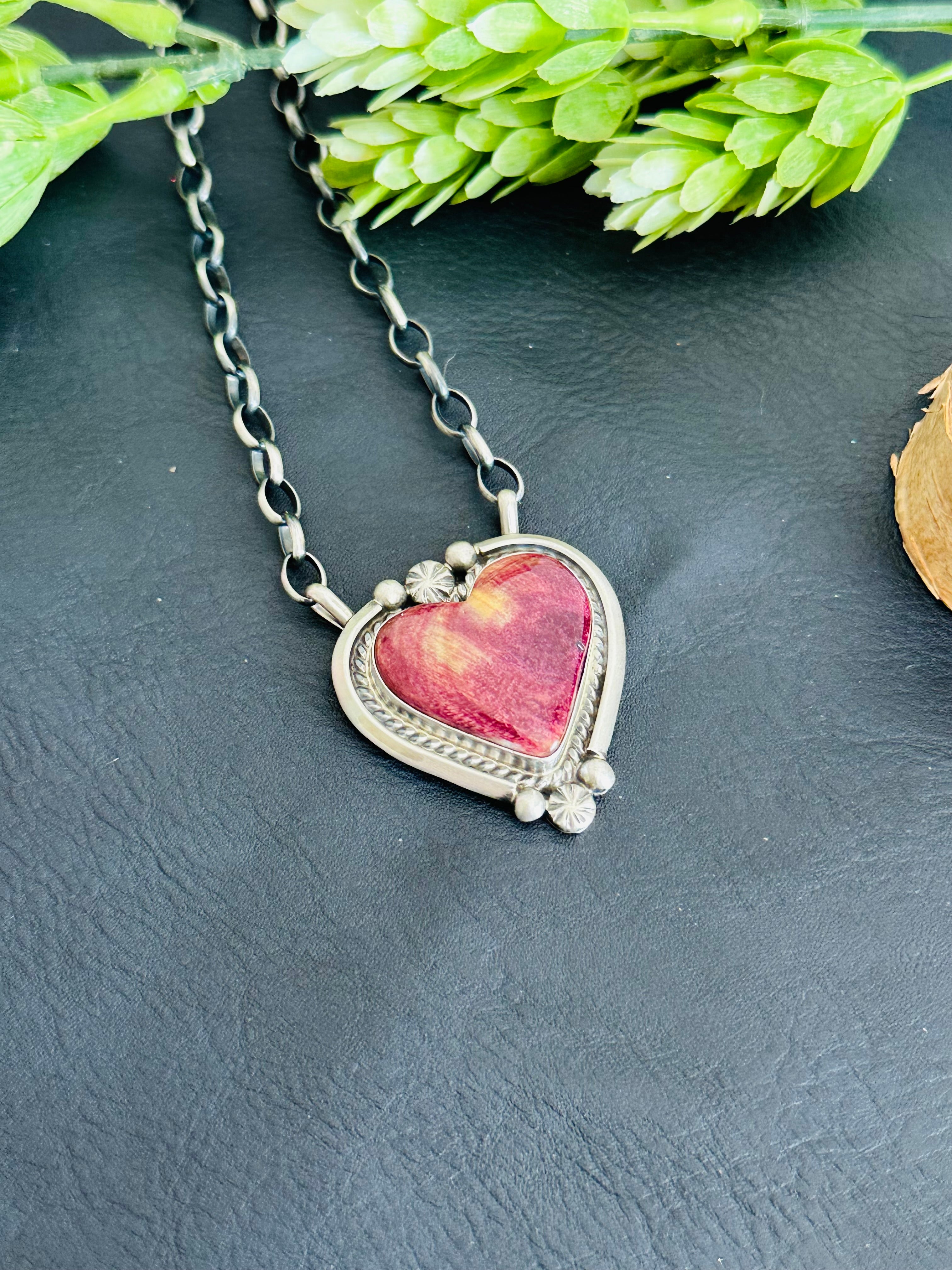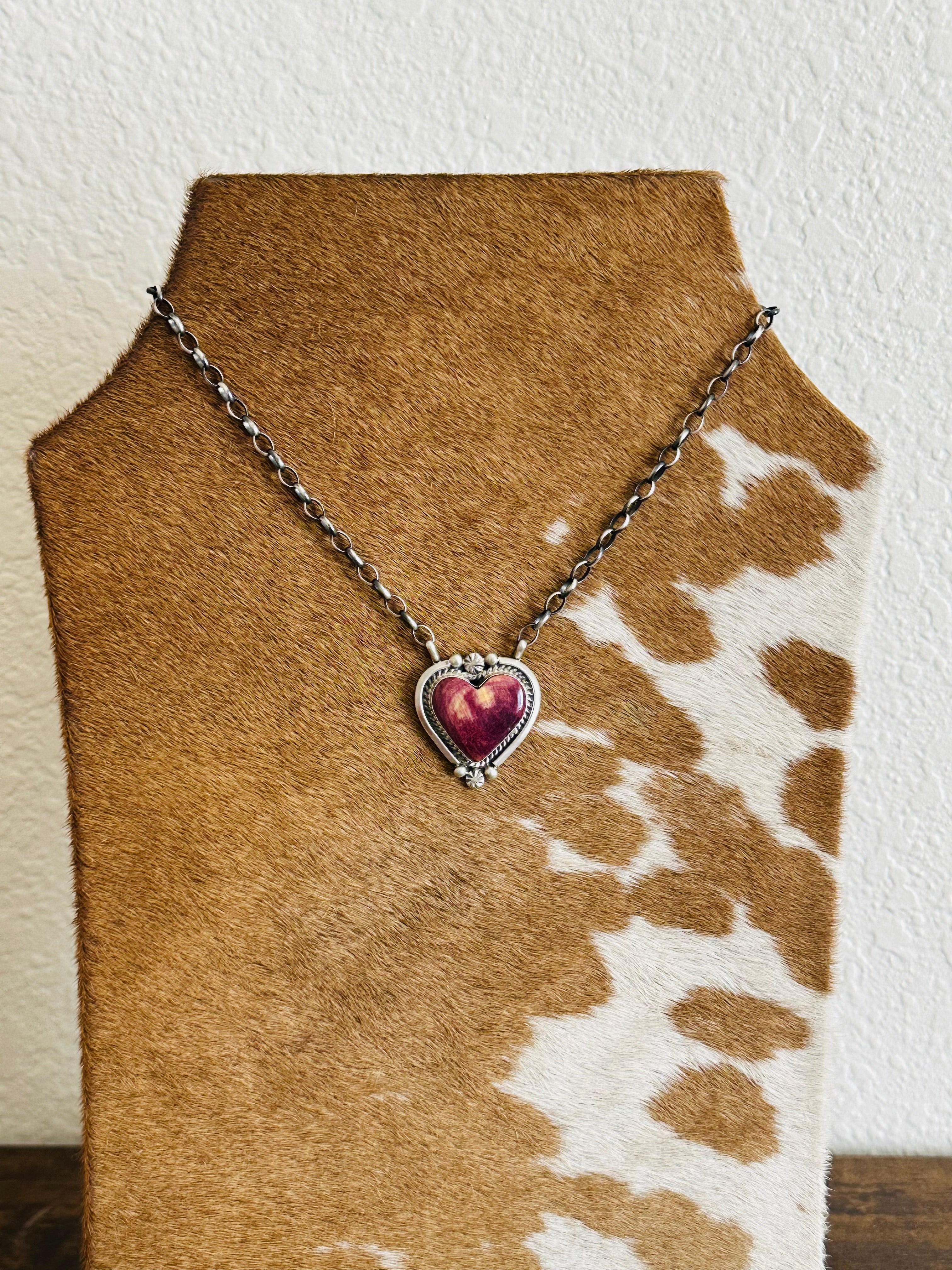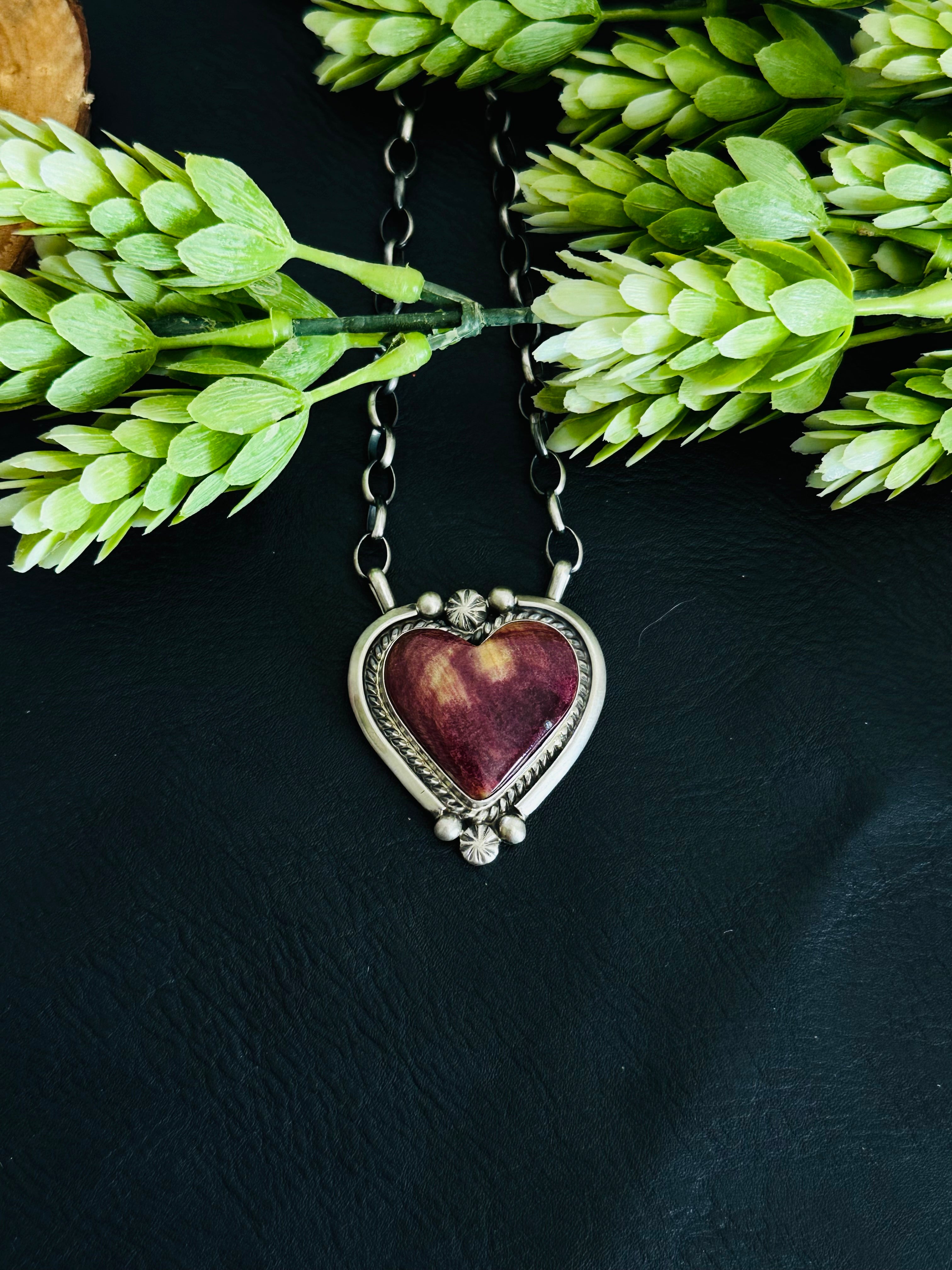 Alfred Martinez Purple Spiny Oyster & Sterling Silver Heart Necklace