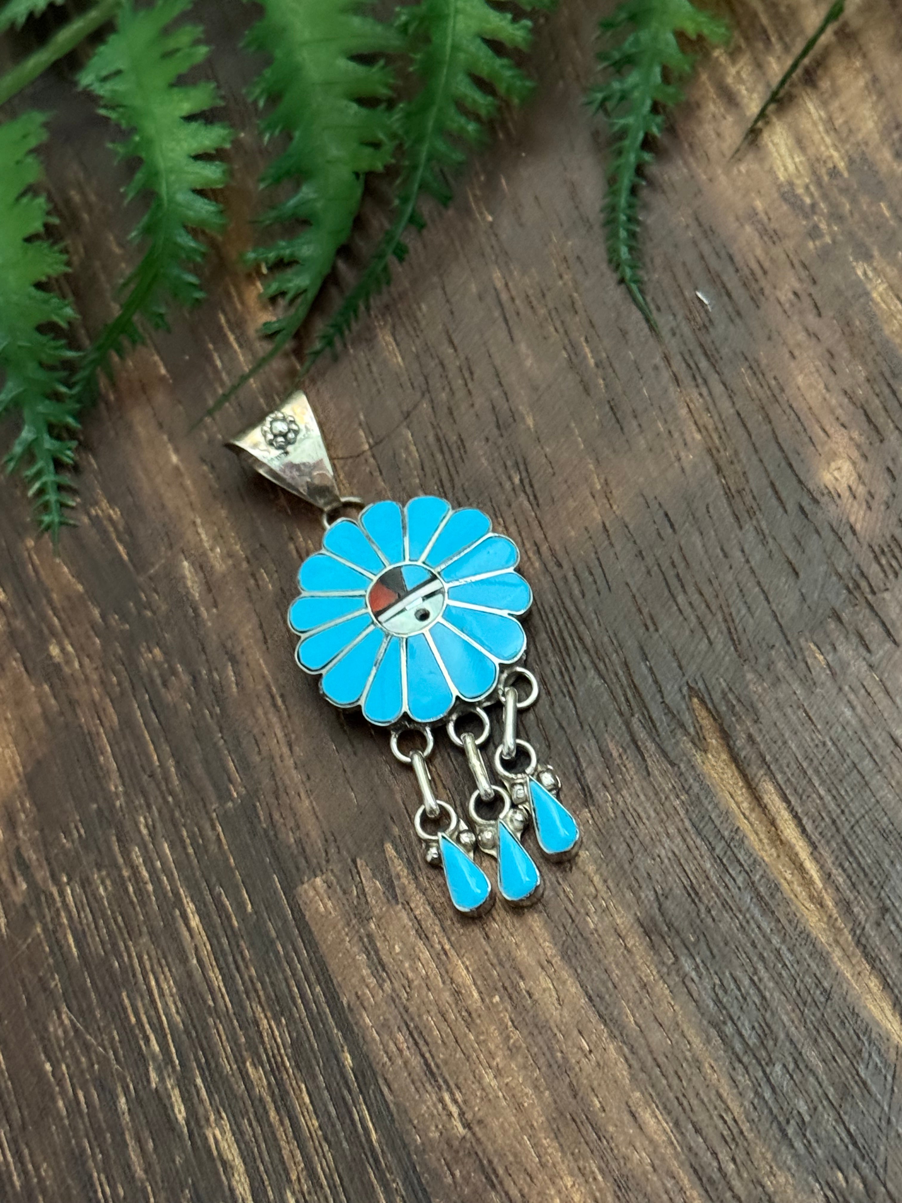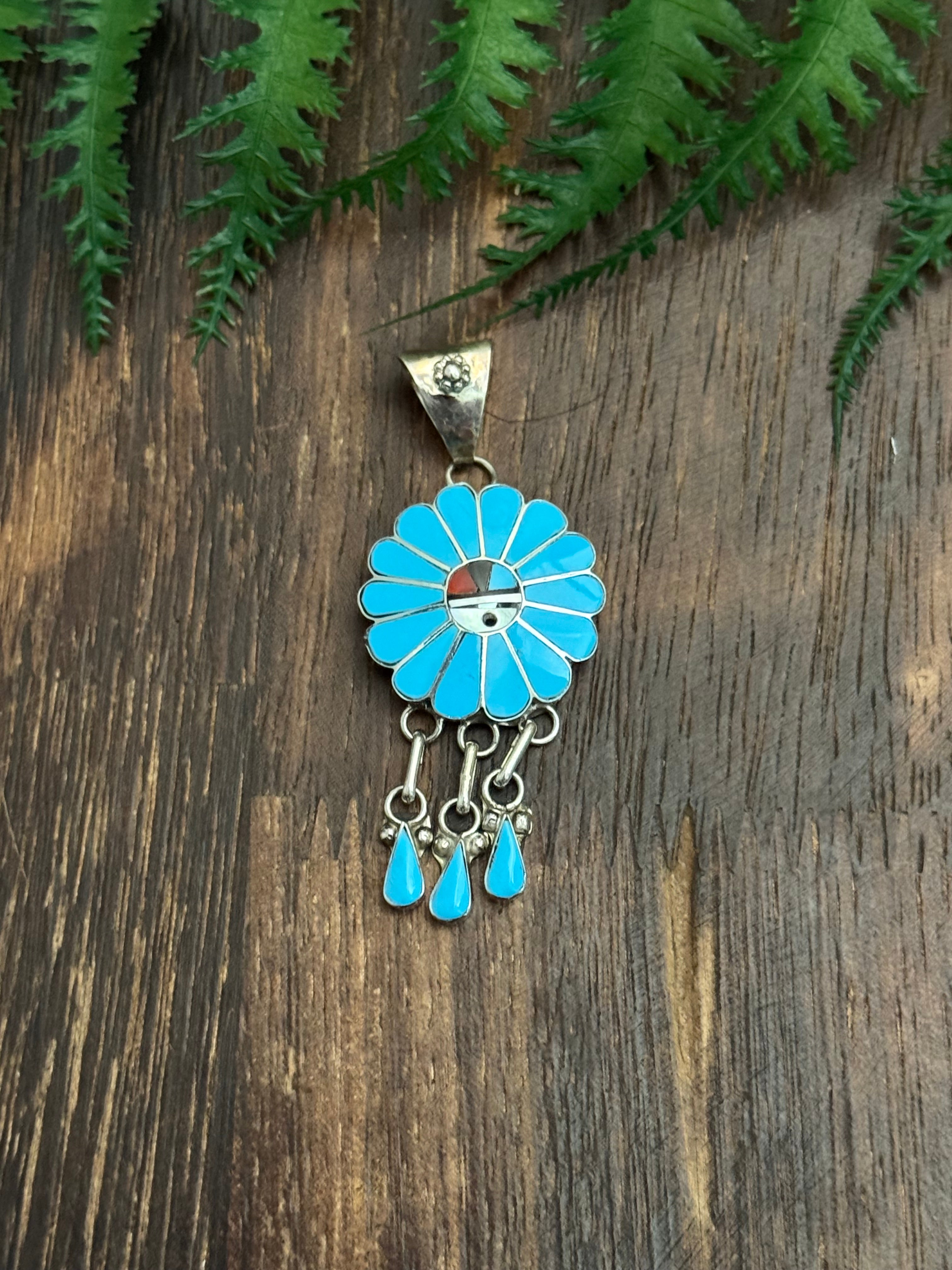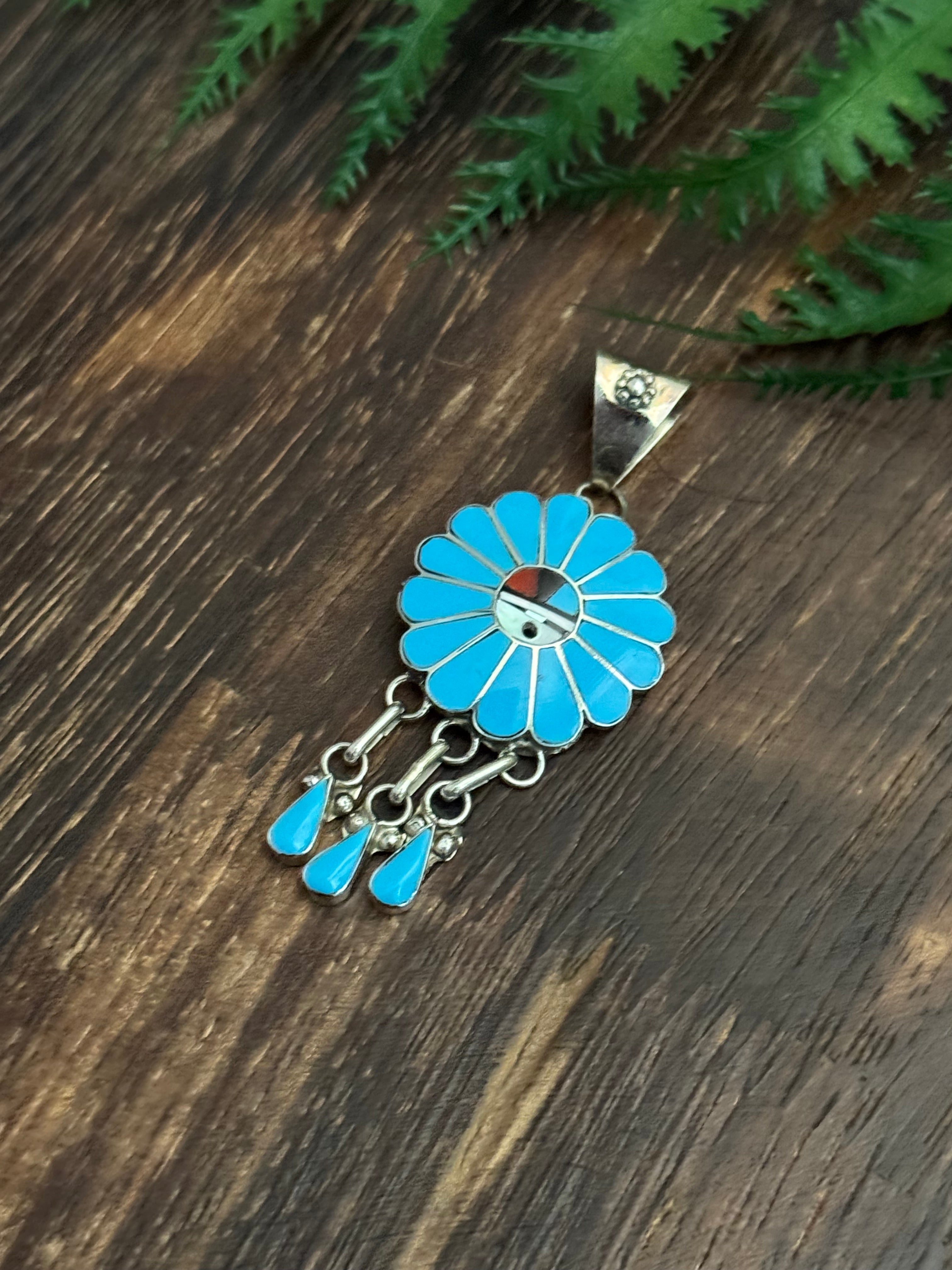 Zuni Made Multi Stone & Sterling Silver Inlay Sunface Pendant