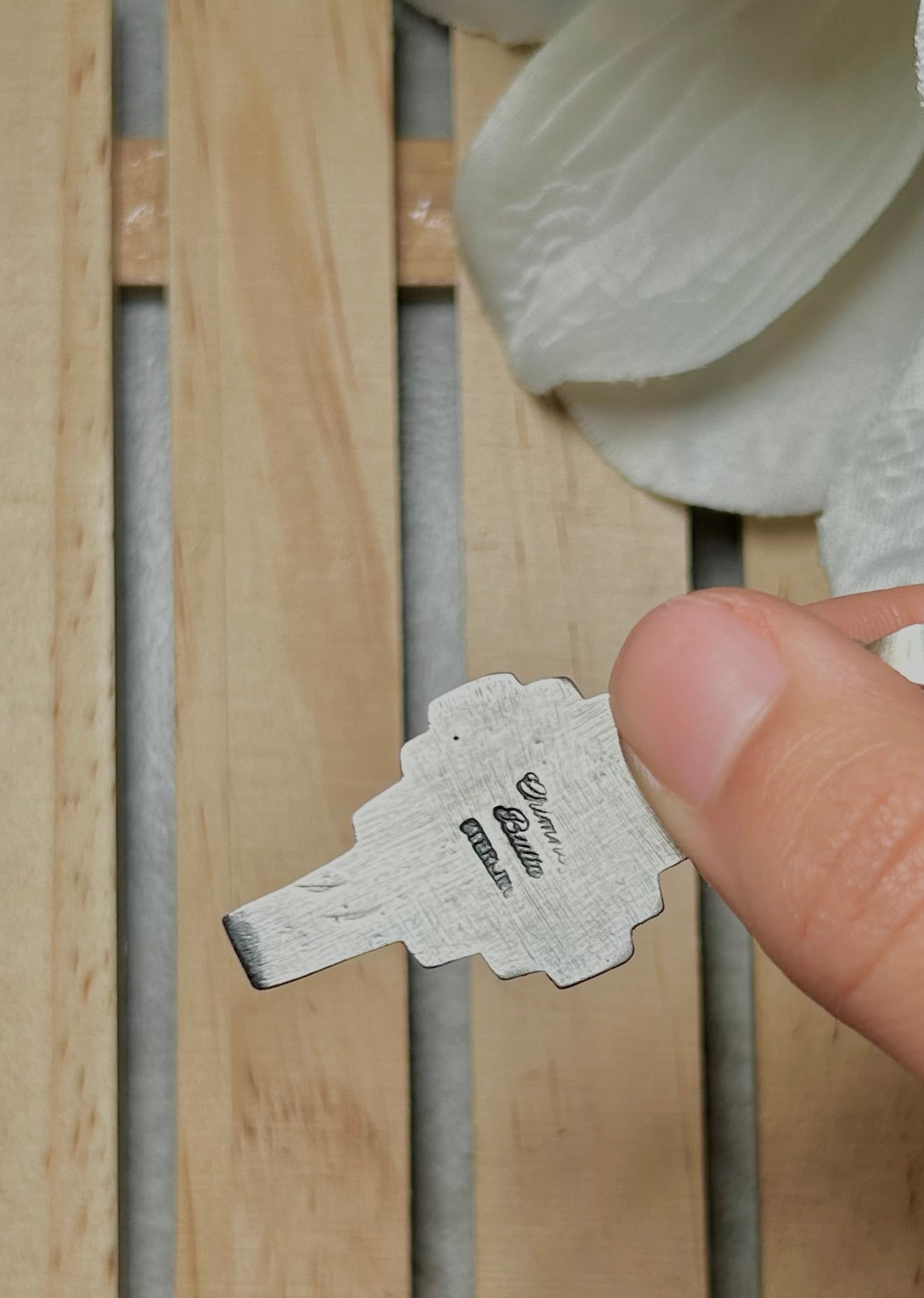 Chimney Butte Red Coral & Sterling Silver Pendant. It measures 2 3/8 inches long and 7/8 of an inch wide. Pendant Only. Signed by the artist and stamped sterling silver.