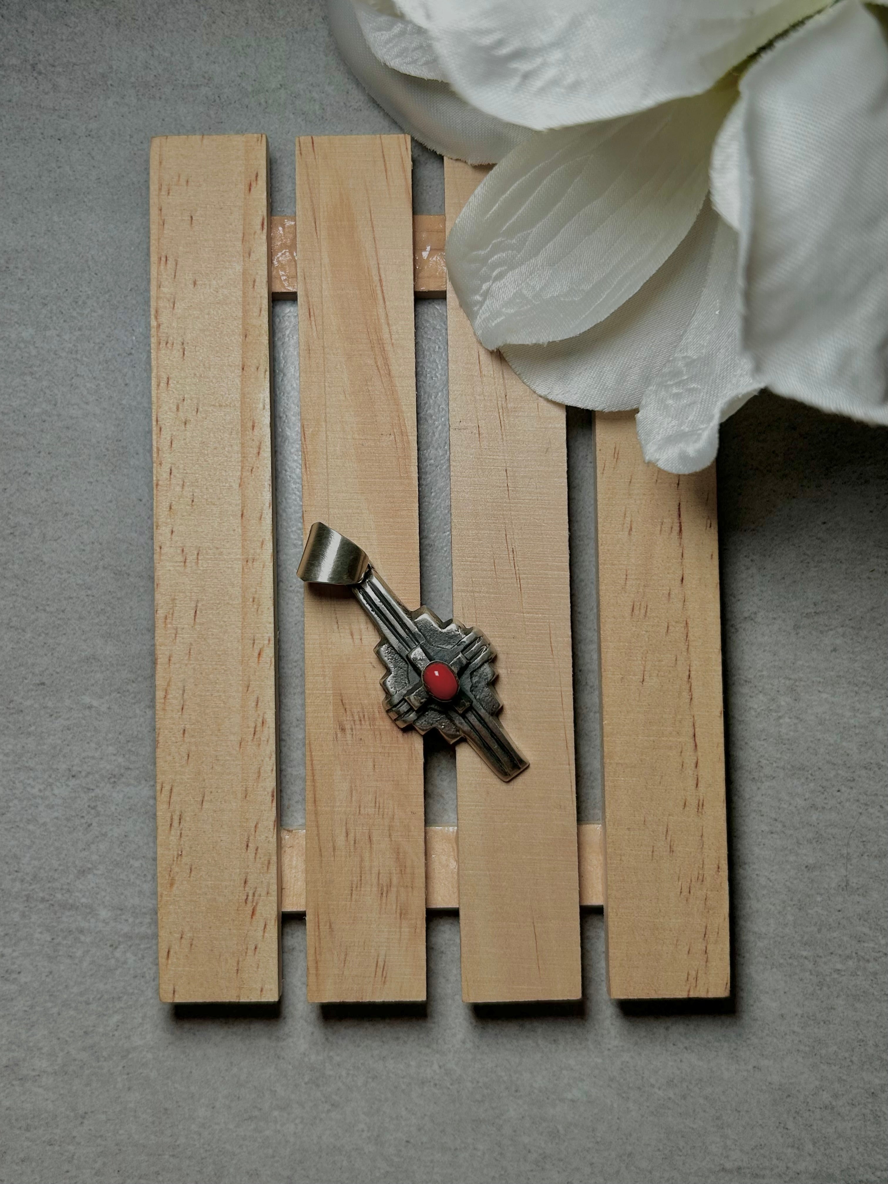 Chimney Butte Red Coral & Sterling Silver Pendant