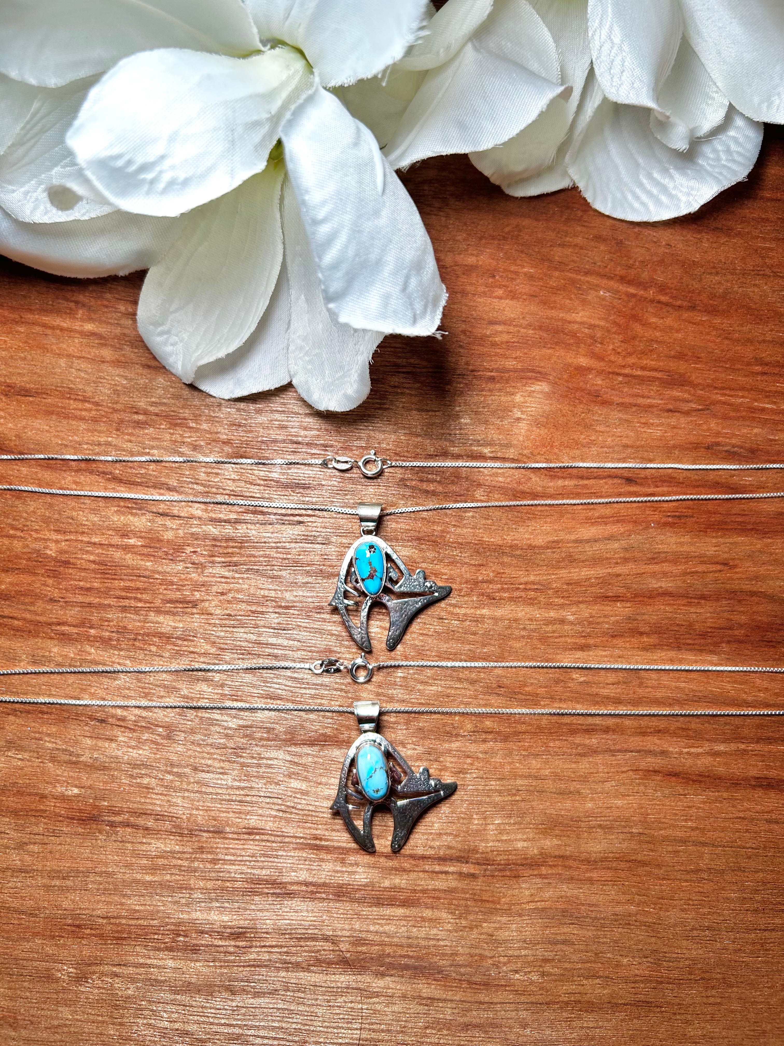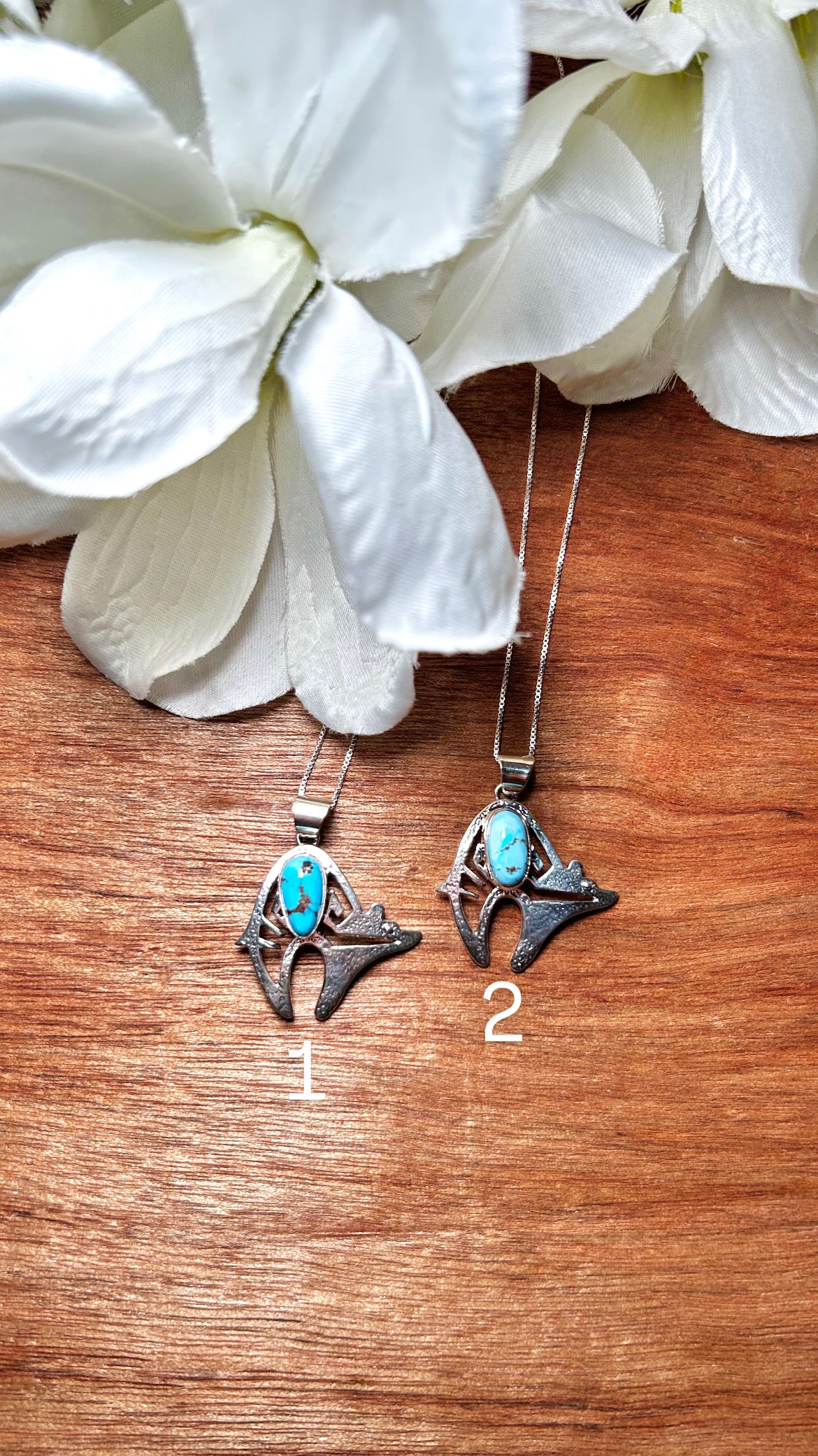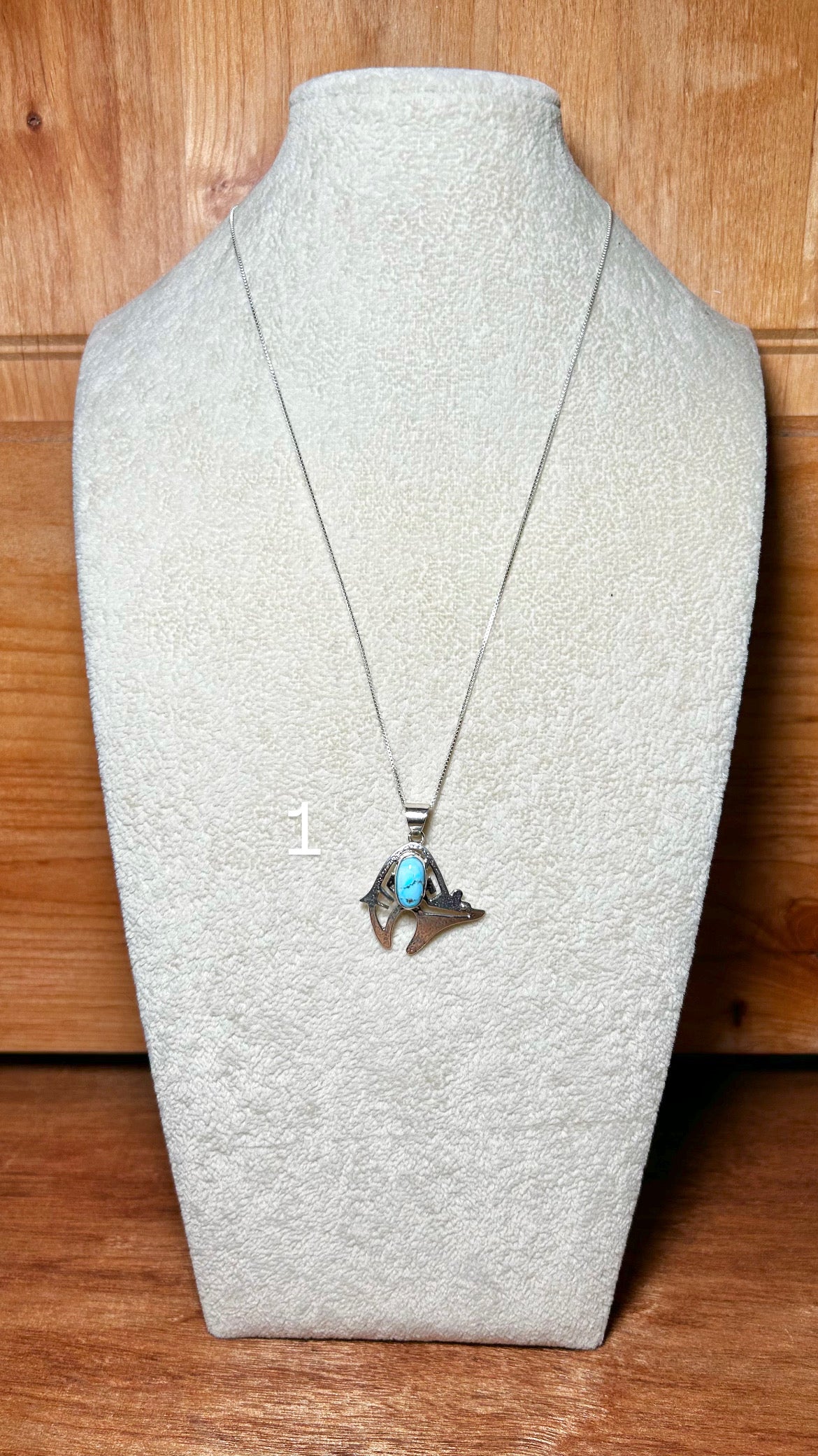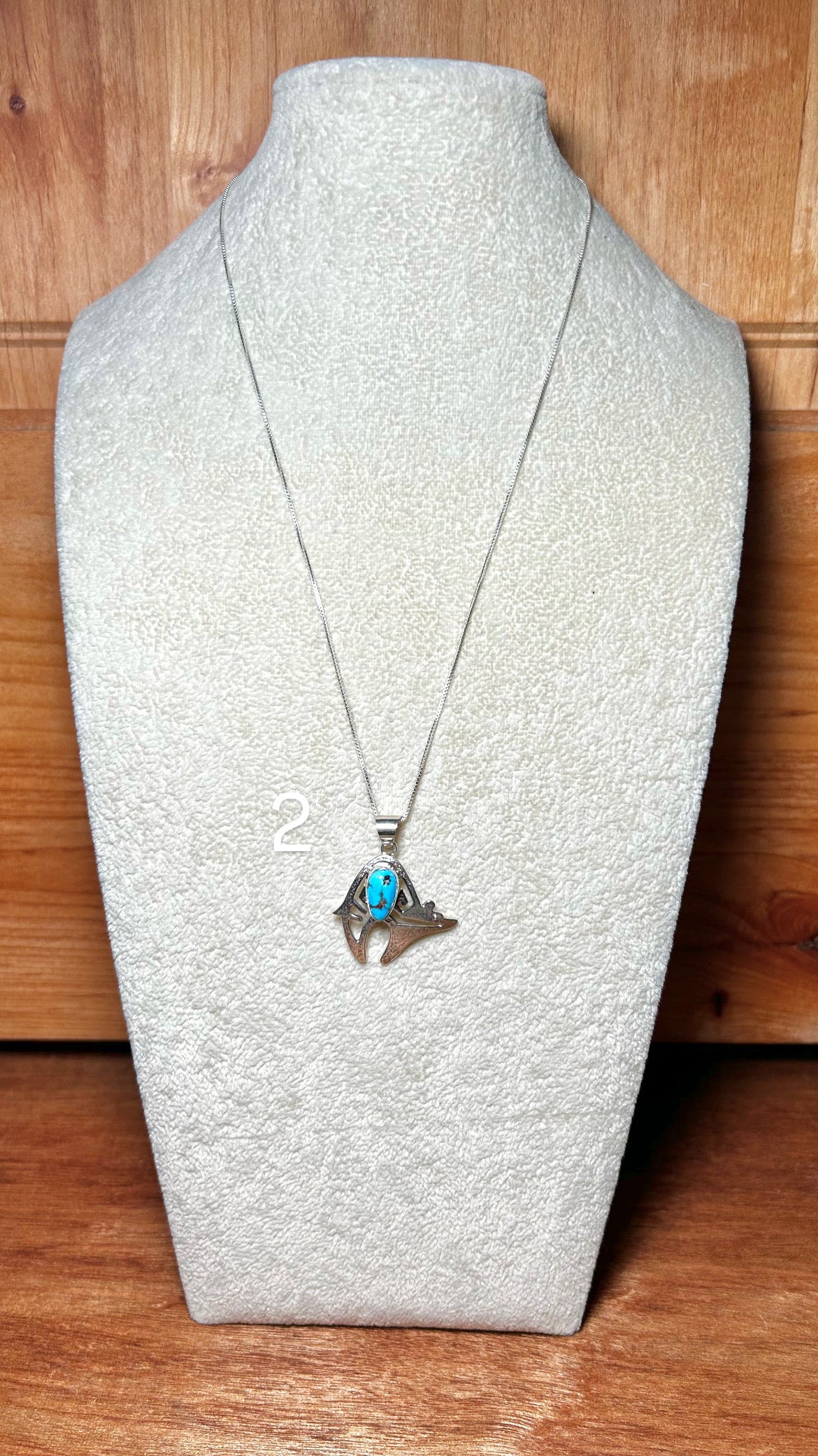 Navajo Made Golden Hill Turquoise & Sterling Silver Necklace. It measures 22 1/4 inches long with hang while the chain by itself measures 19 1/2 inches . Signed by the artist and stamped sterling silver.