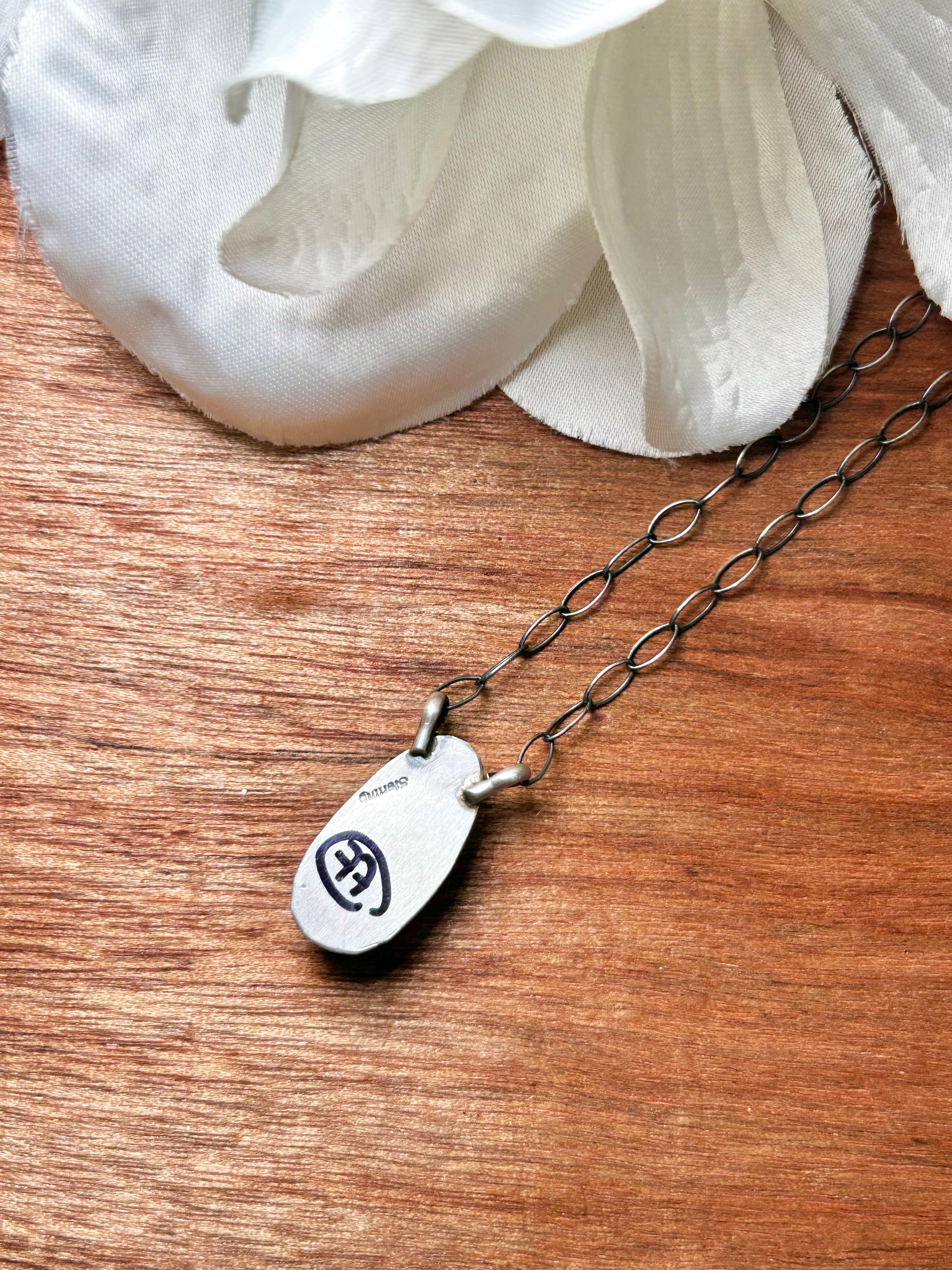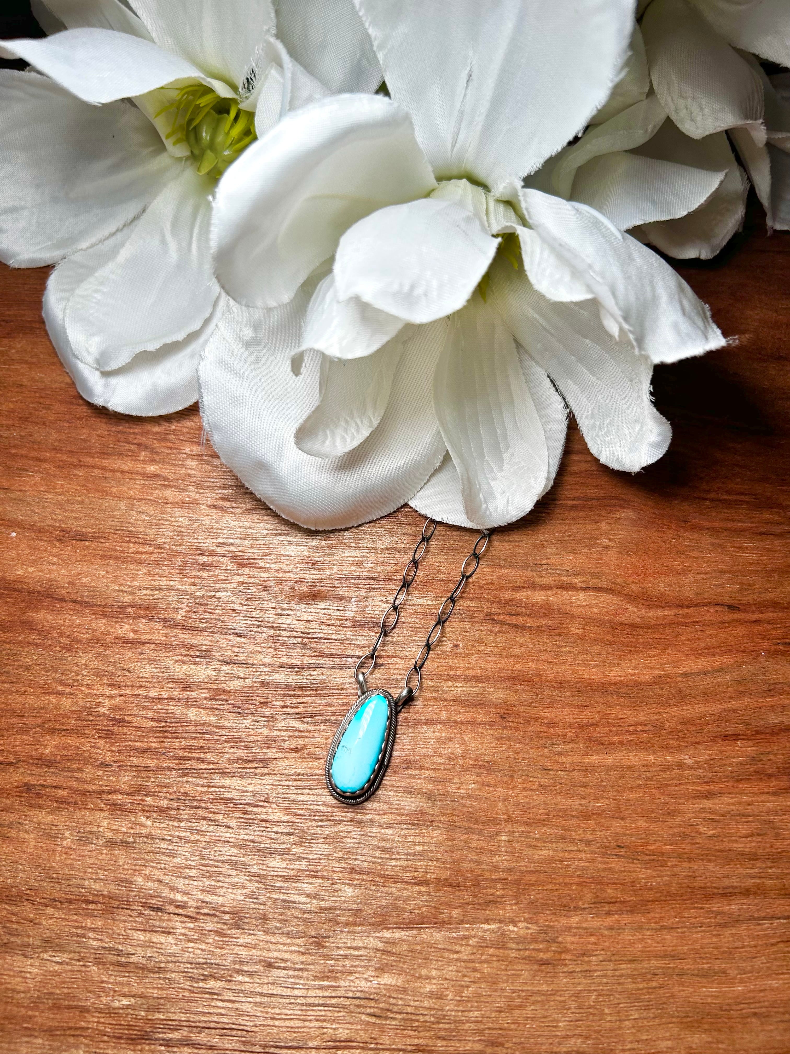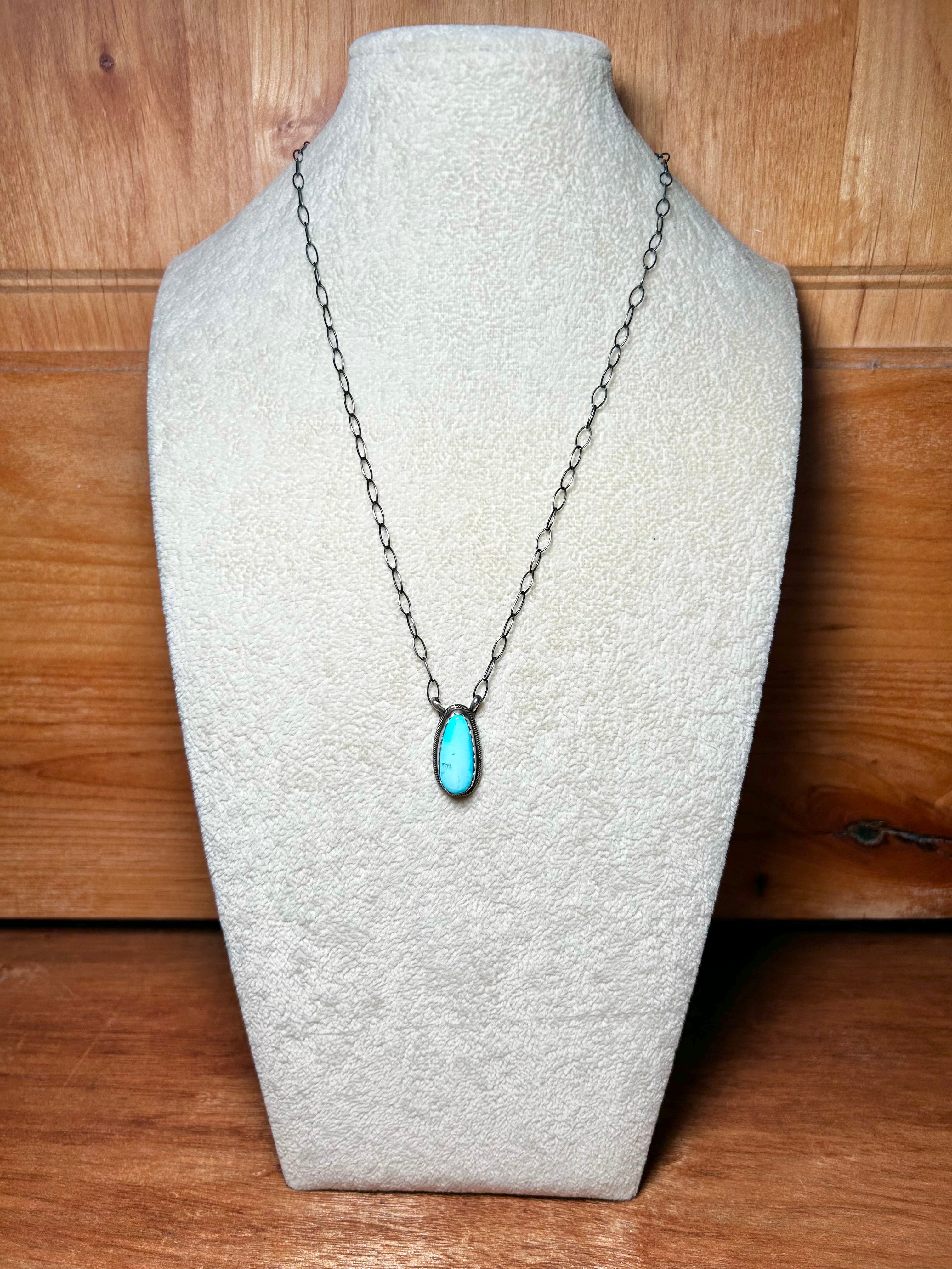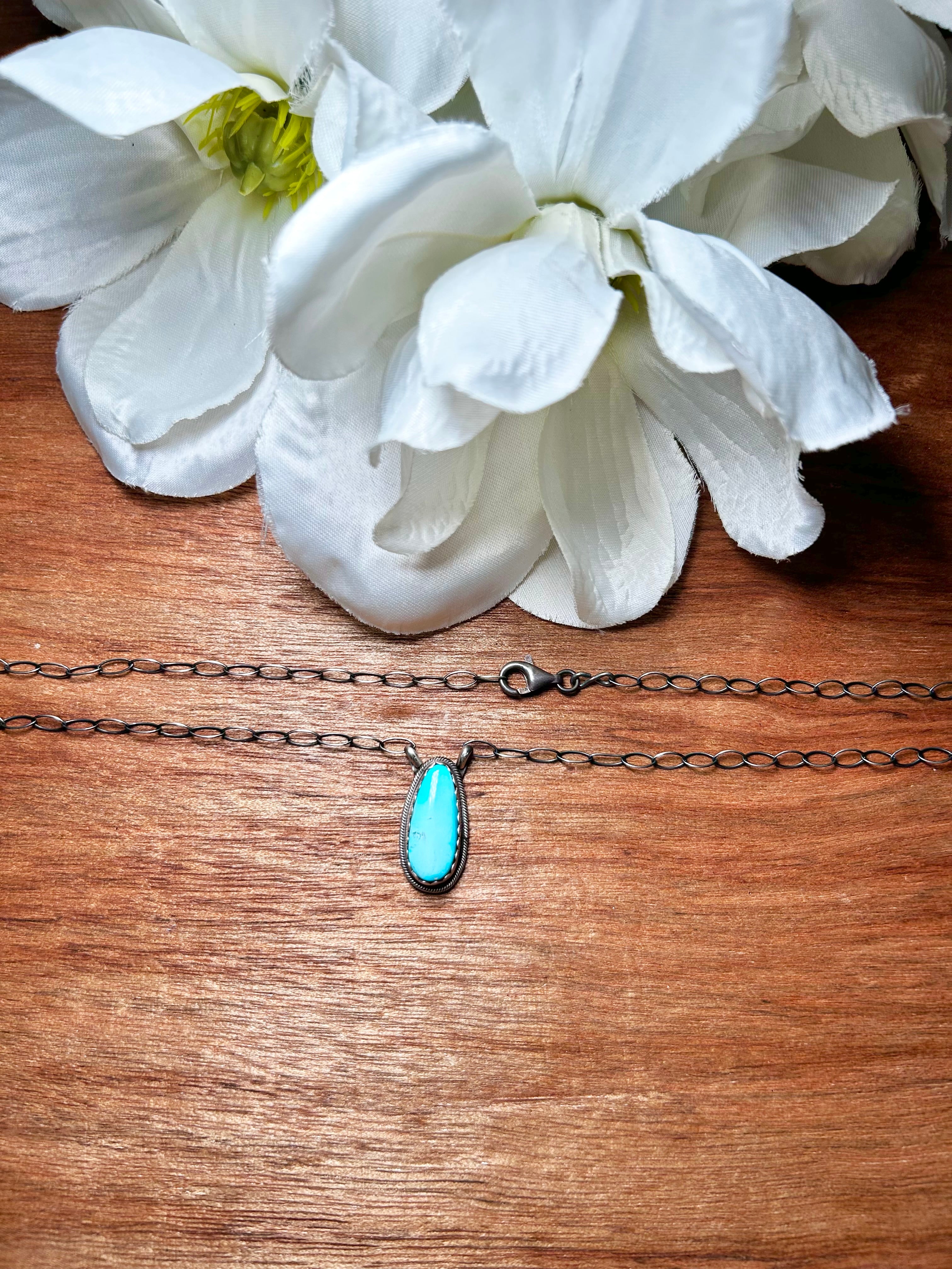 Antionette Largo Royston Turquoise & Sterling Silver Necklace. It measures 20 3/4 inches long with hang while the chain by itself measures 18 1/4 inches . Signed by the artist and stamped sterling silver.