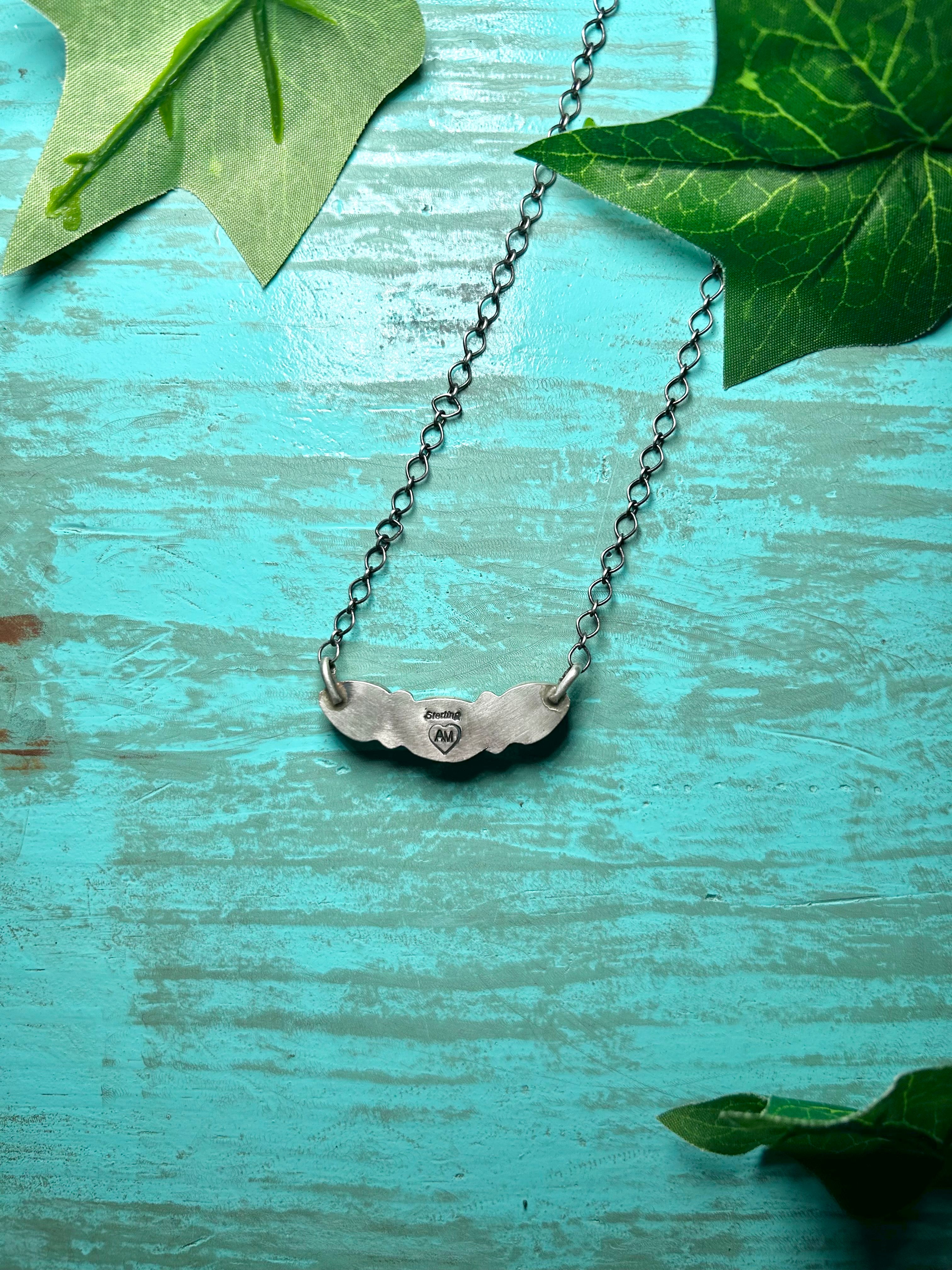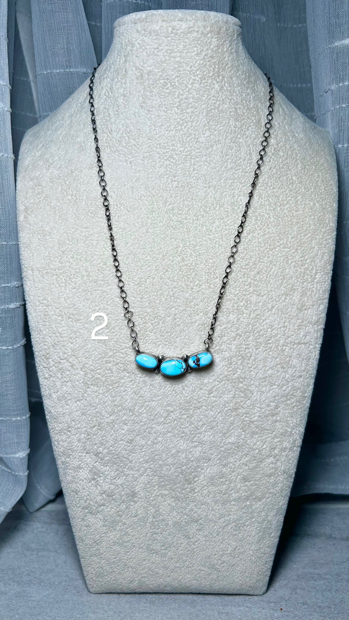 Antionette Mart Golden Hill Turquoise & Sterling Silver Necklace. It measures 19 3/4 inches long with hang while the chain by itself measures 18 1/2 inches long. Signed by the artist and stamped sterling silver.