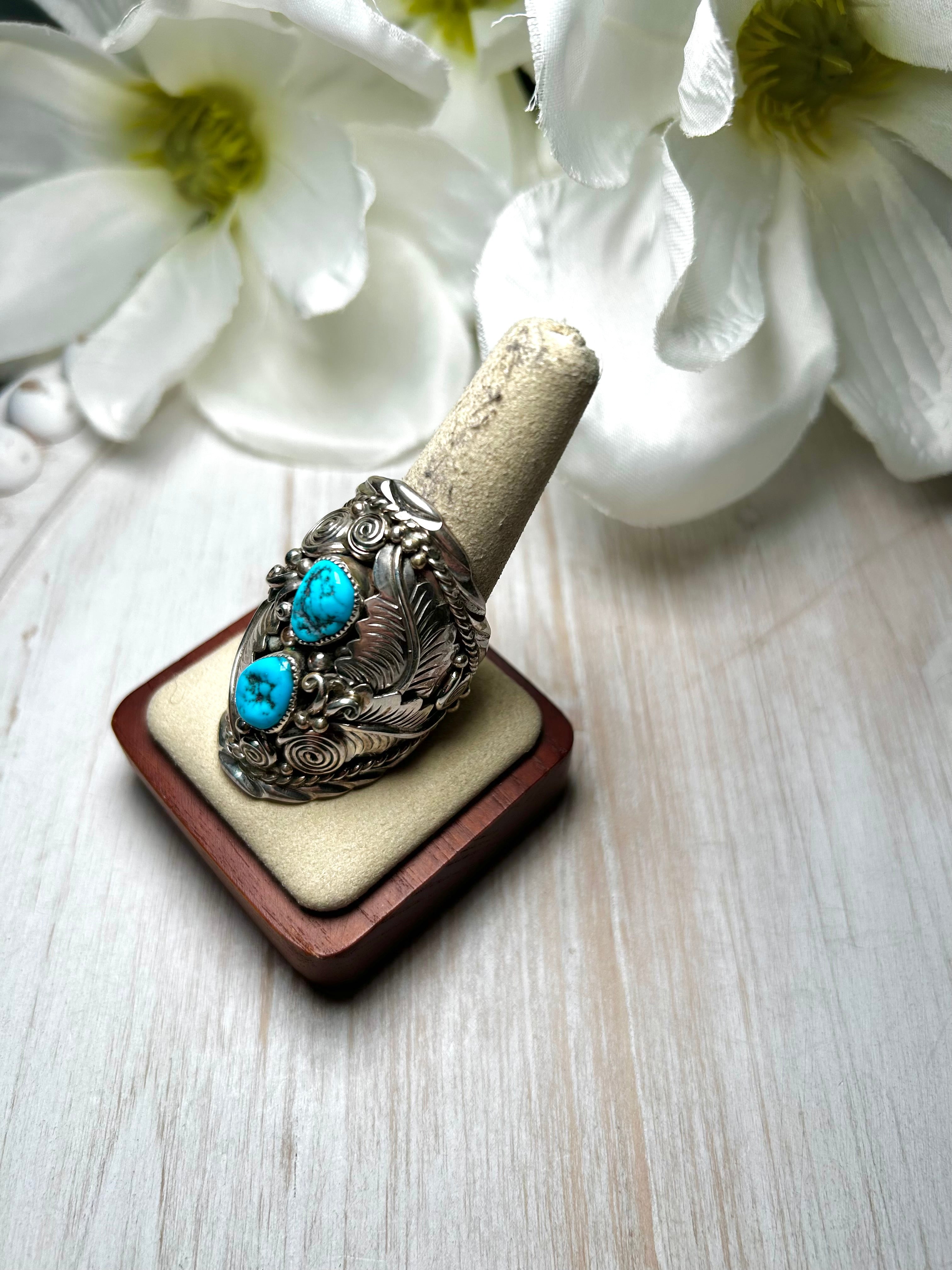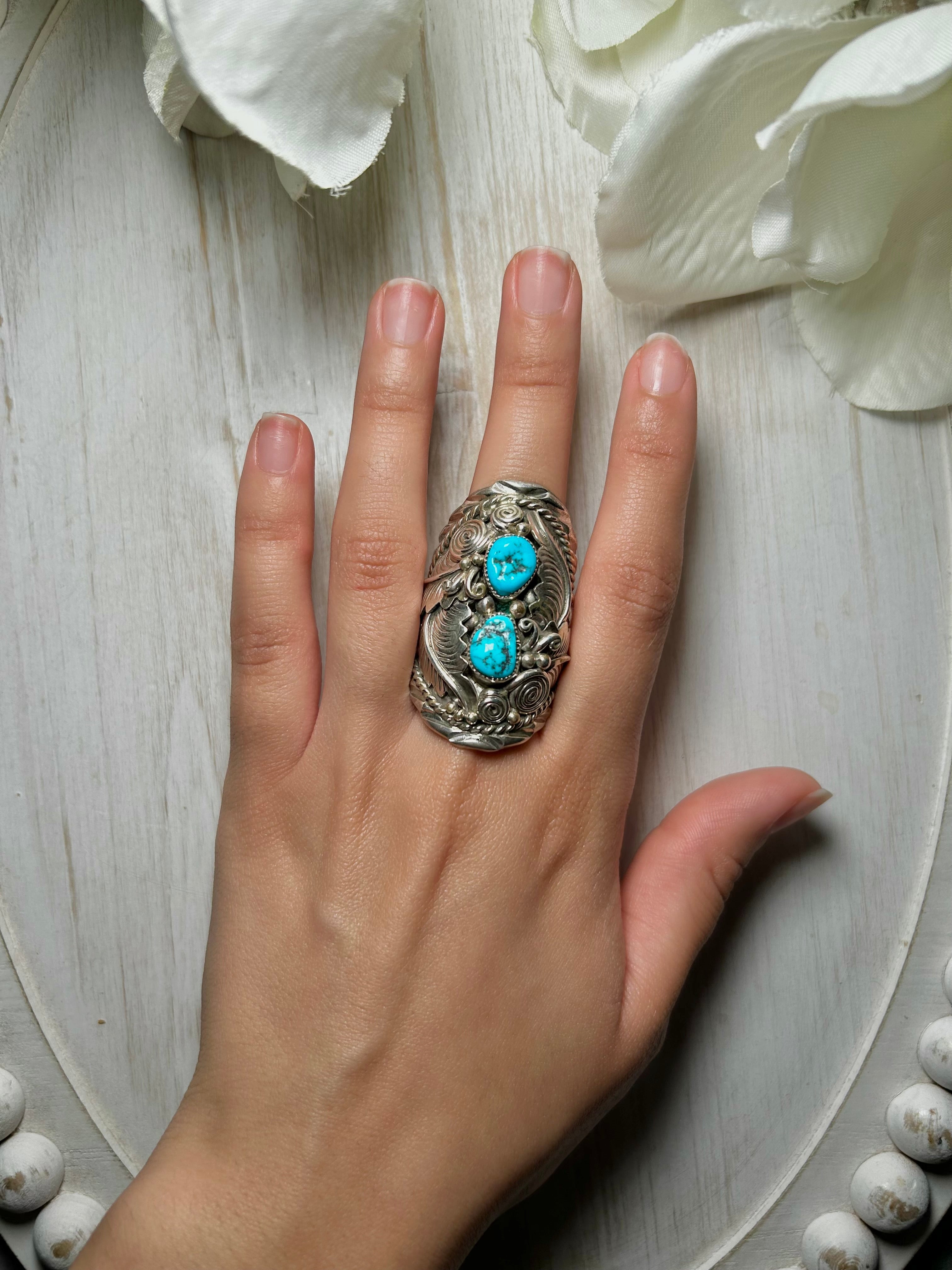 Julia Etsitty Kingman Turquoise & Sterling Silver Ring Size 12.75