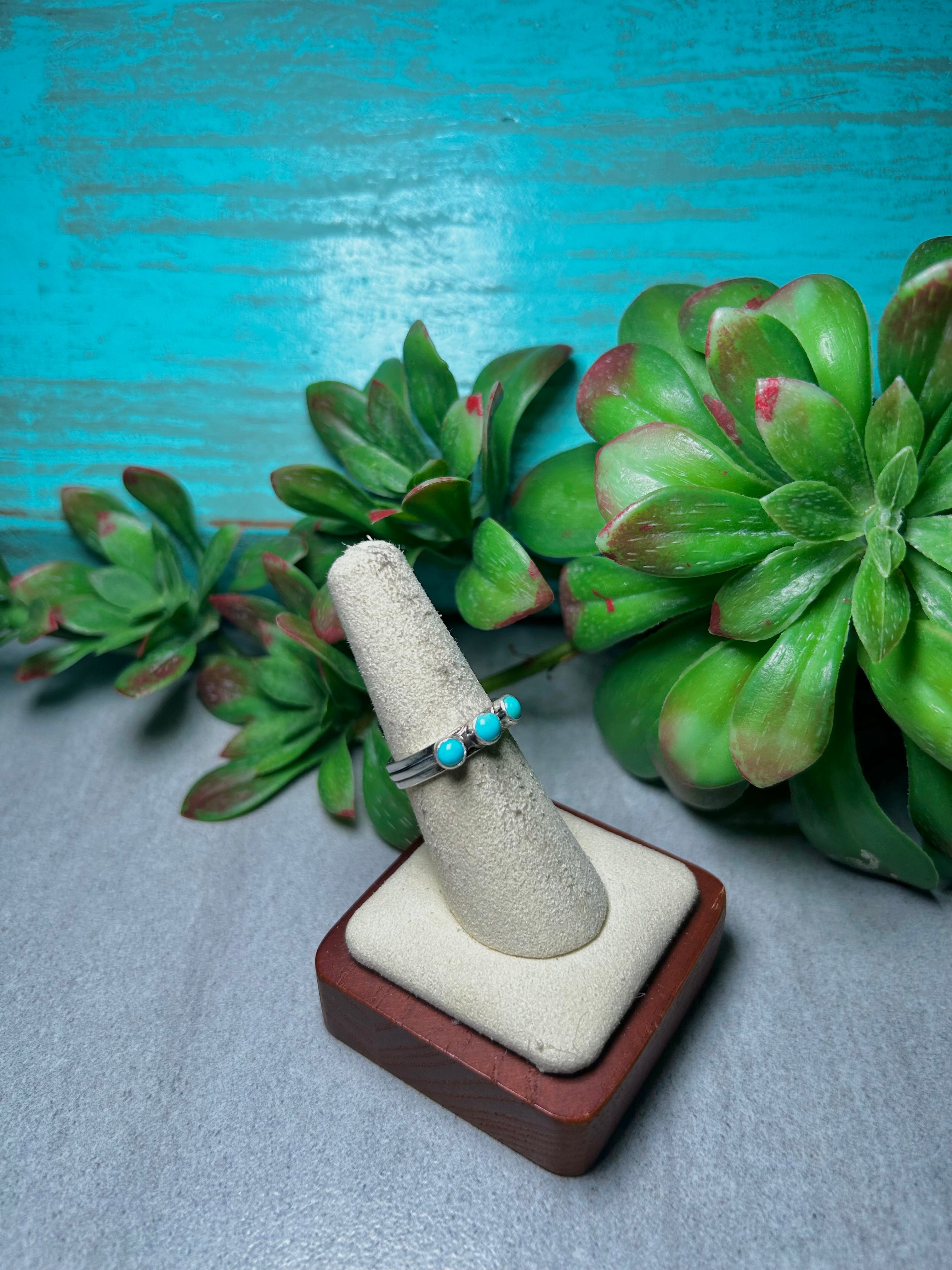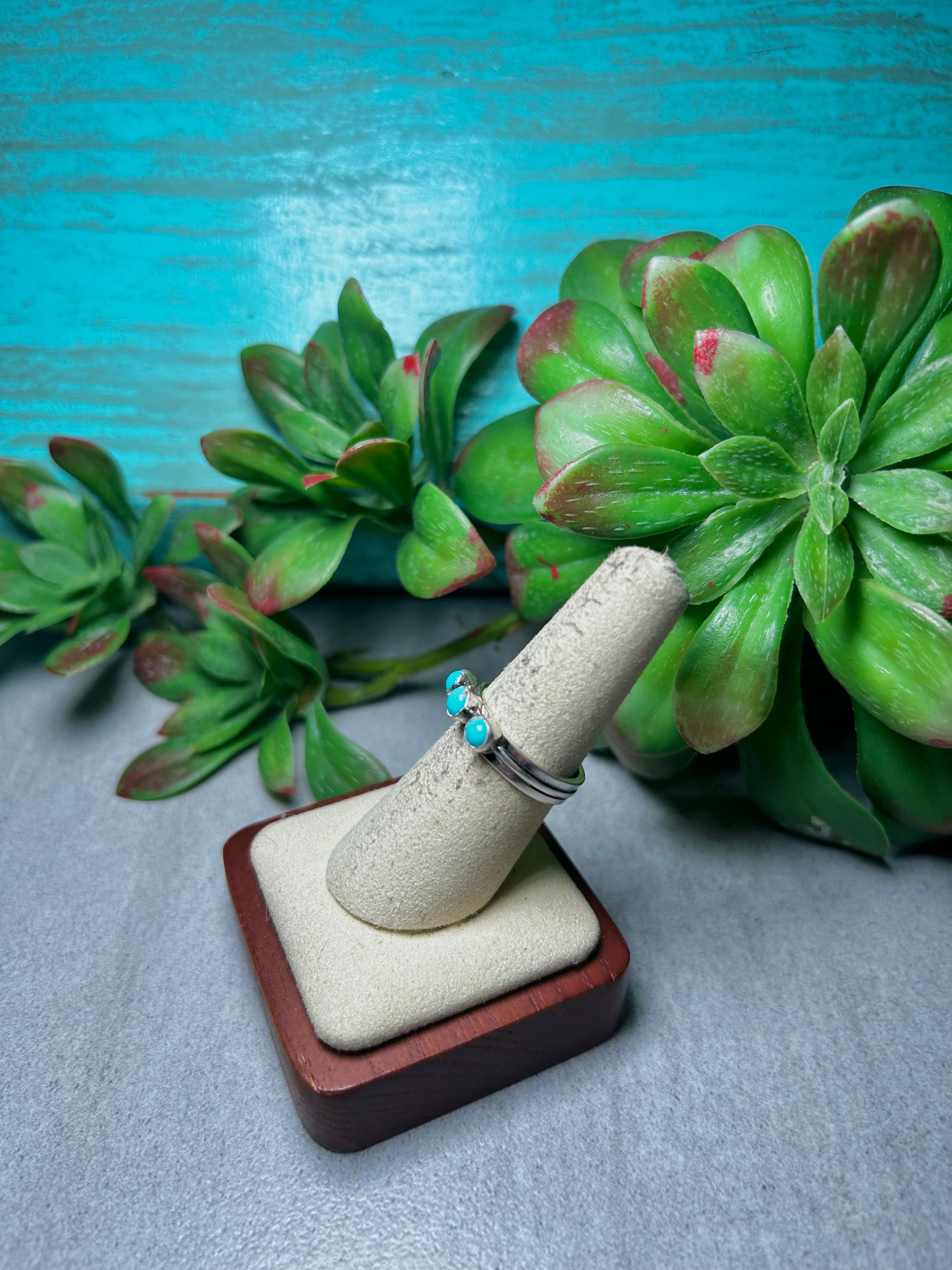Arlene Lewis Kingman Turquoise & Sterling Silver Cluster Ring Size 7. It measures 1/2 of an inch long and 5/8 of an inch wide. Signed by the artist and stamped sterling silver.