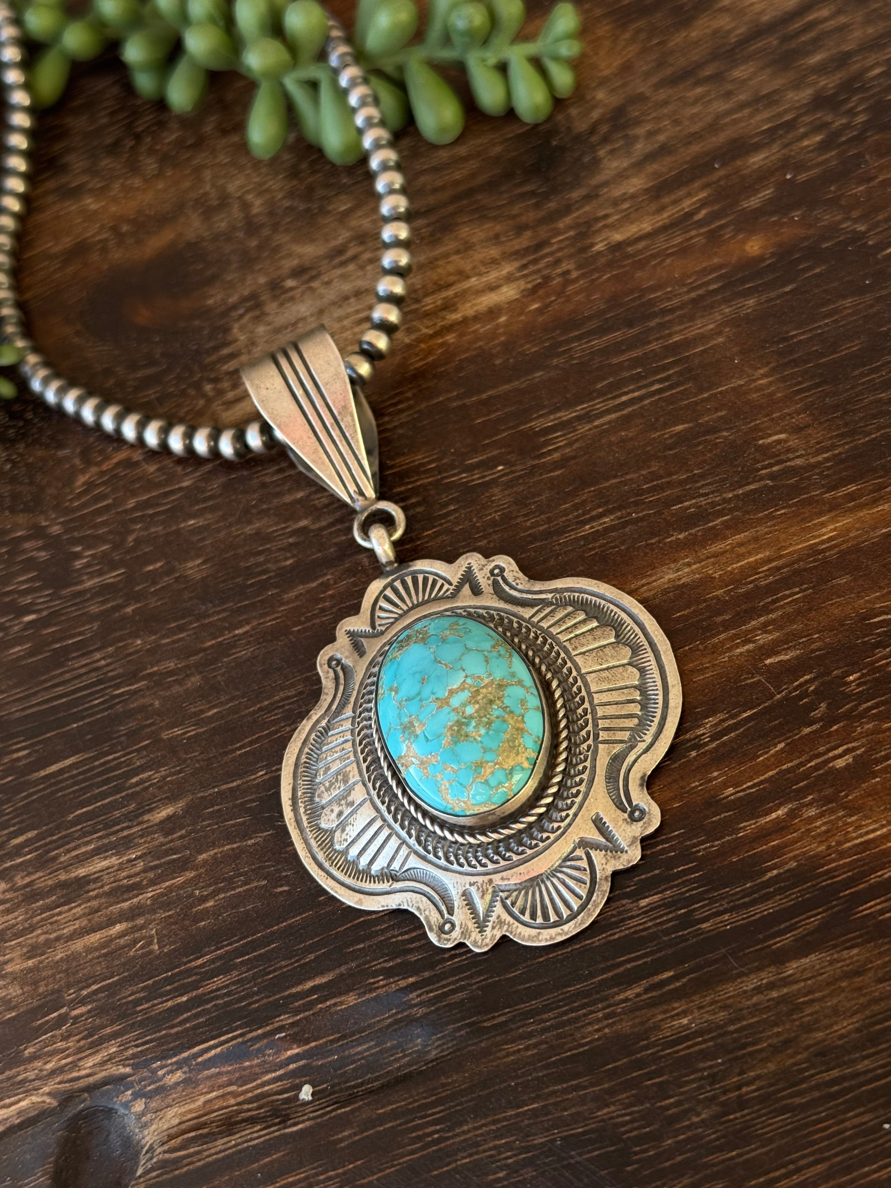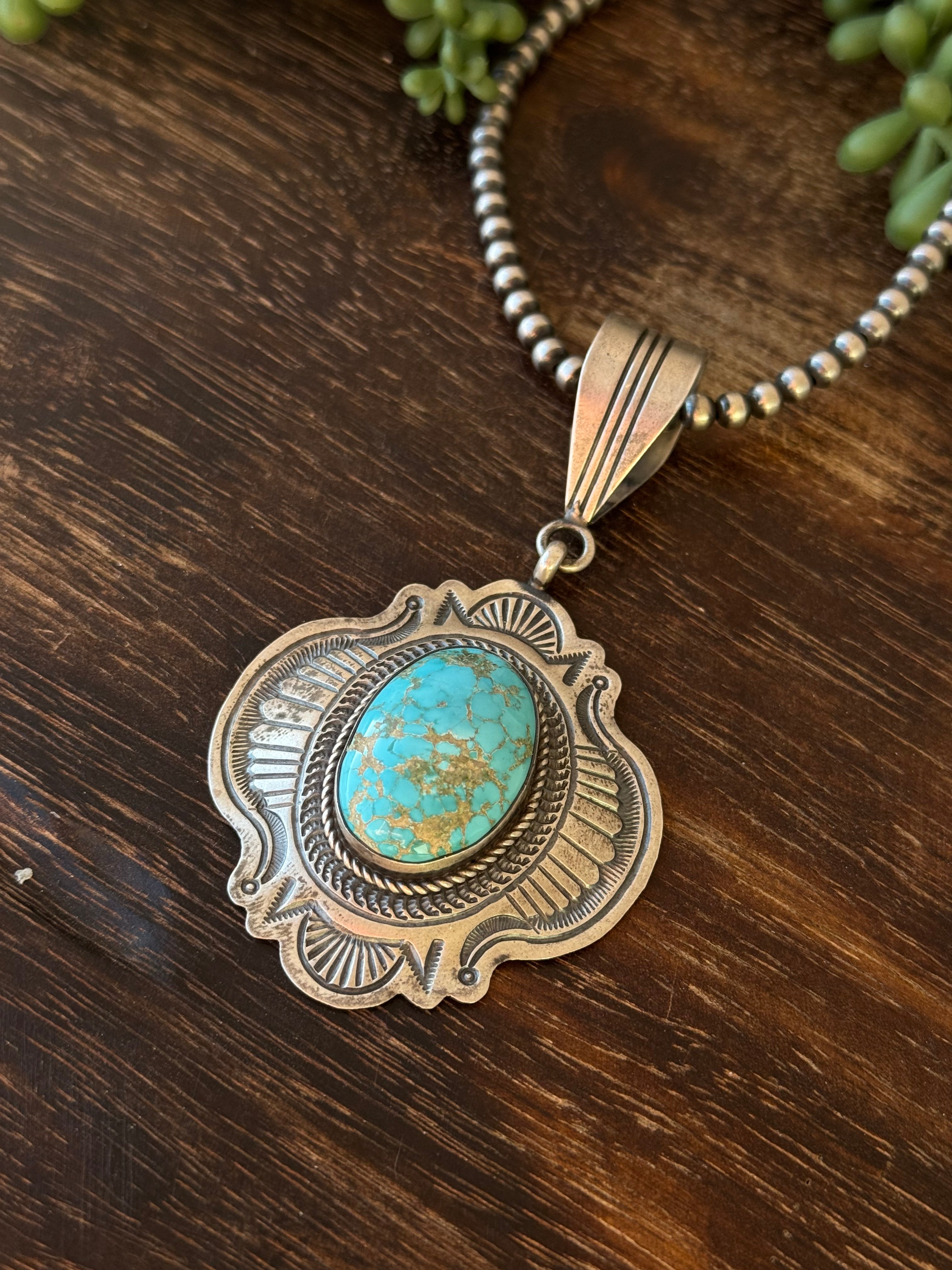 Arnold Blackgoat Royston Turquoise & Sterling Silver Concho Pendant
