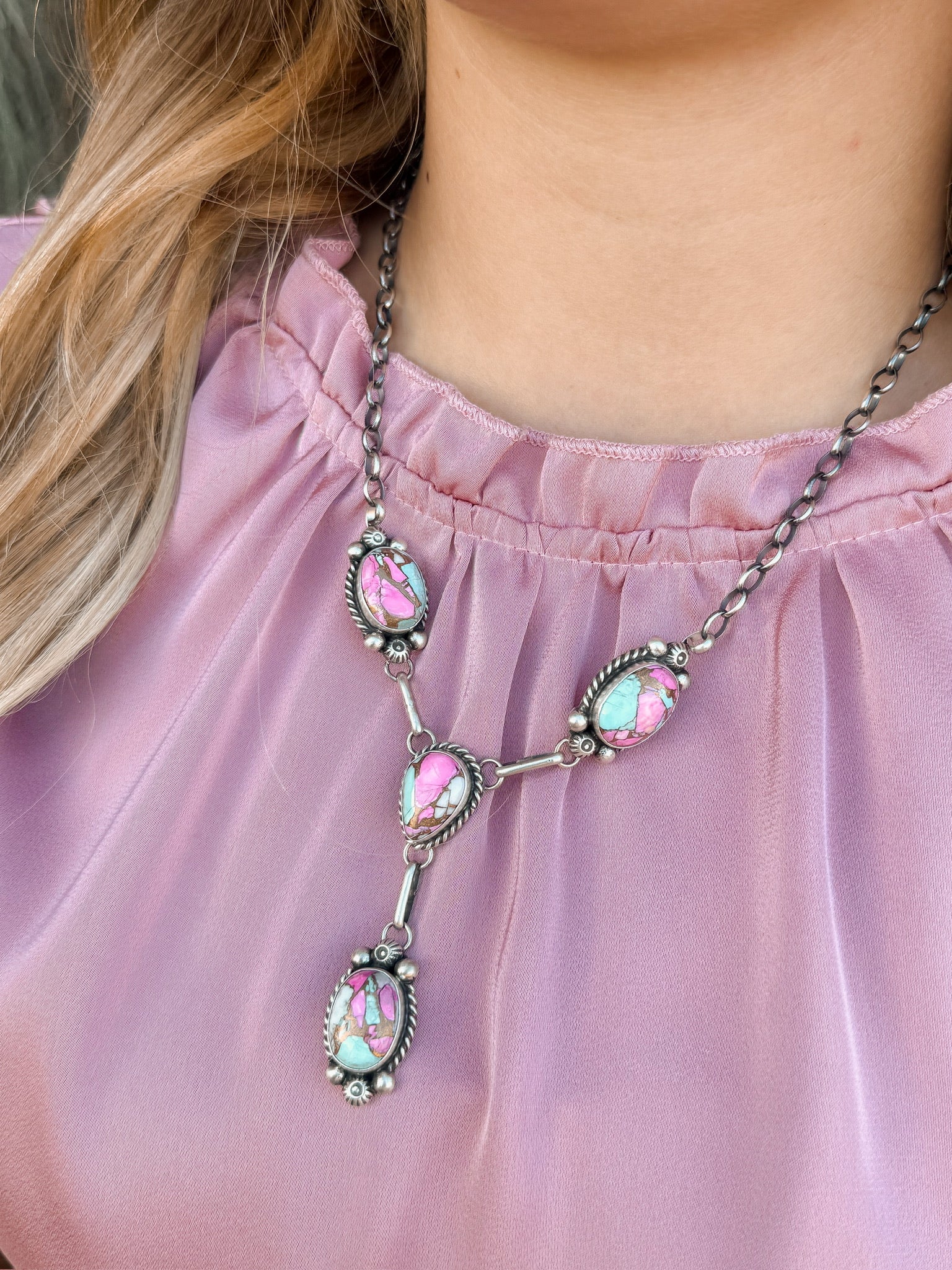 Augustine Largo Cotton Candy Dahlia Composite & Sterling Silver Lariat Necklace