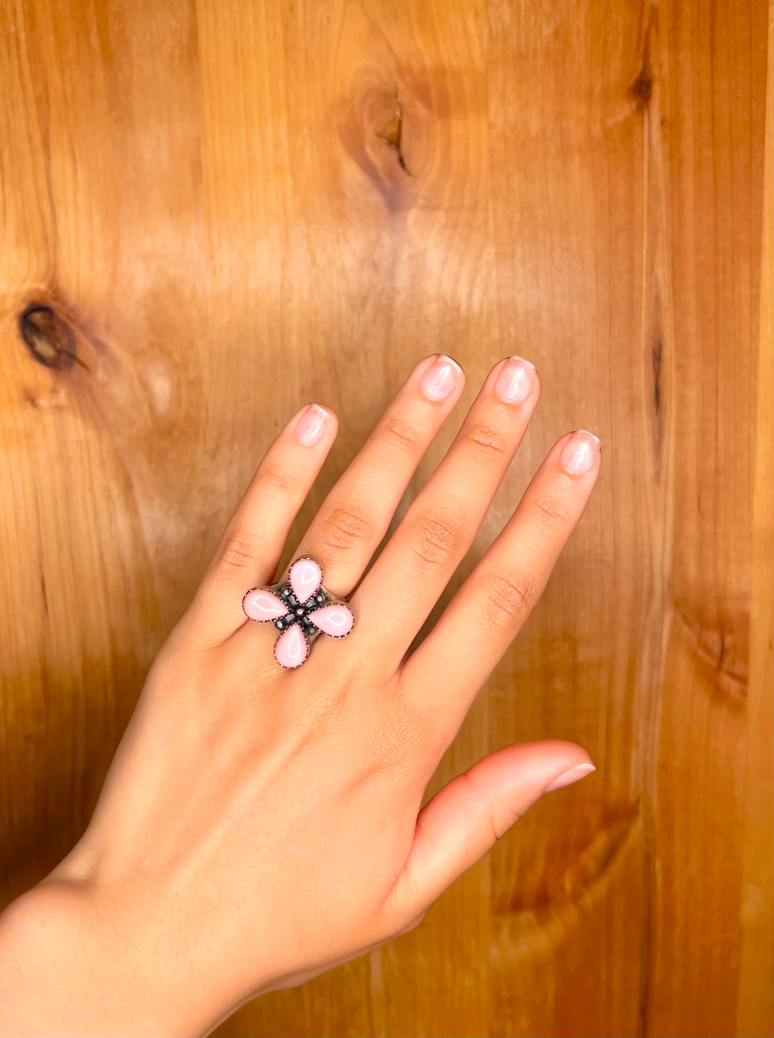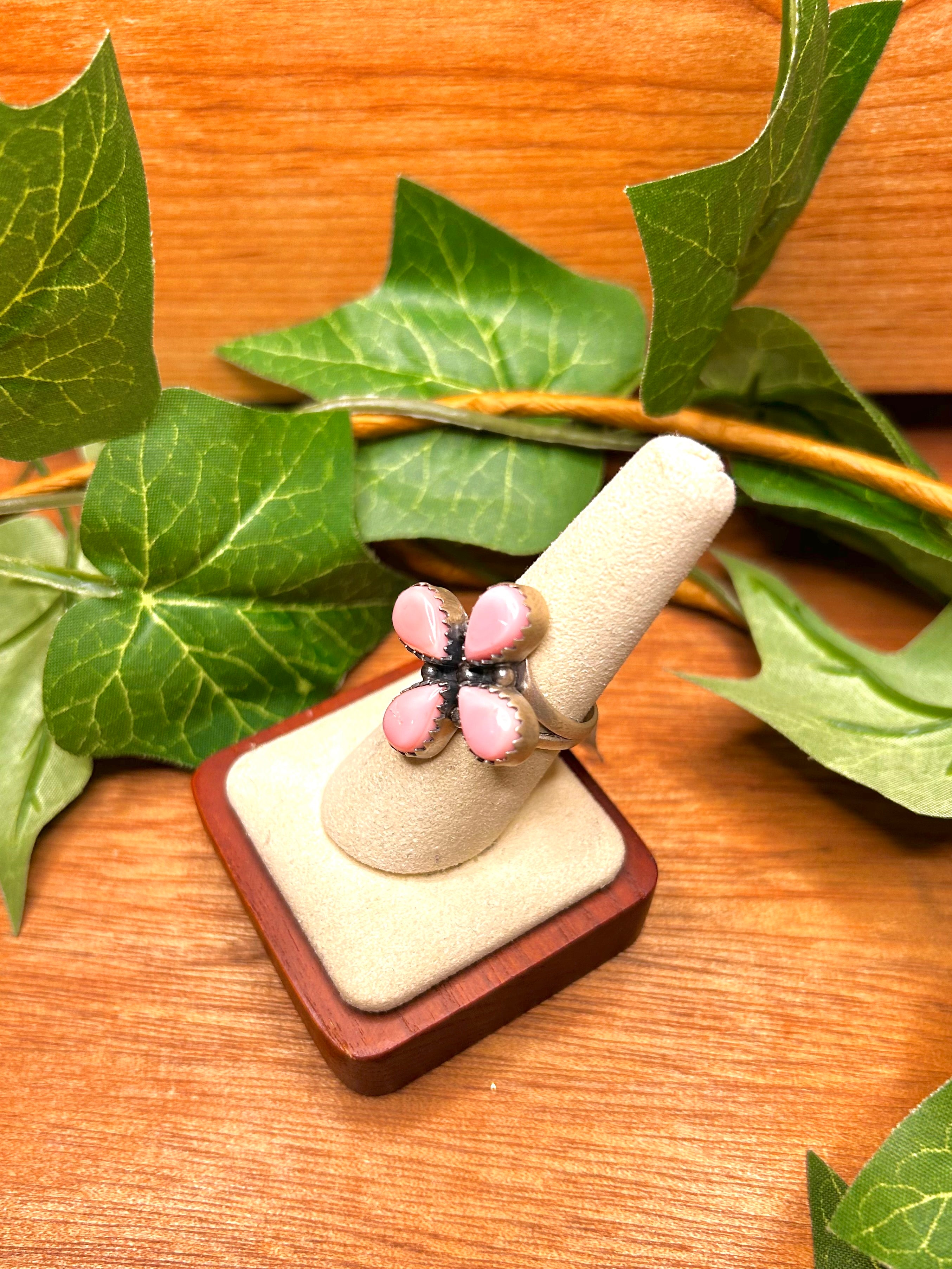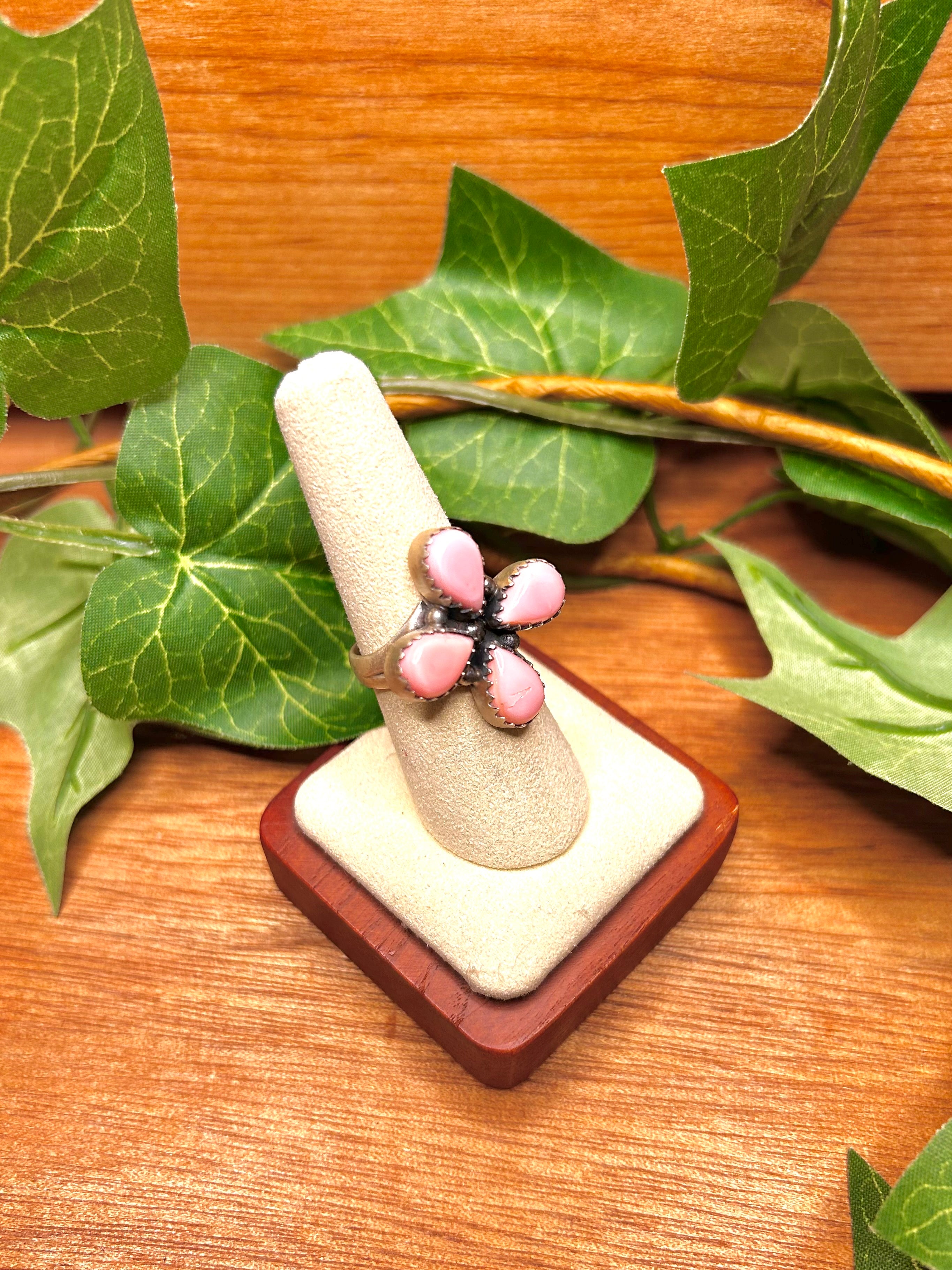 Southwest Made Pink Conch & Sterling Sliver Cluster Ring Size 8