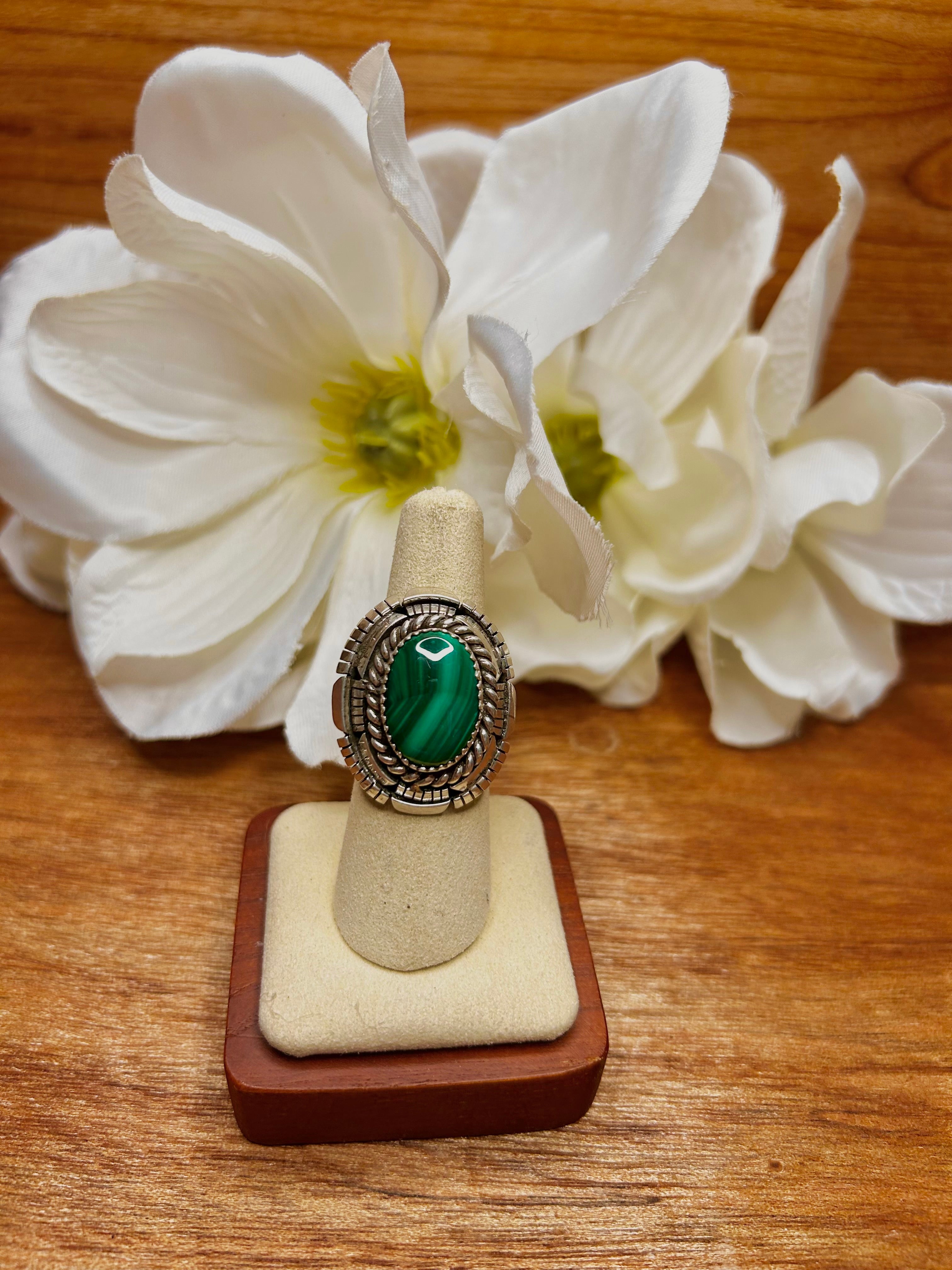 Navajo Made Malachite & Sterling Sliver Cluster Ring Size 7