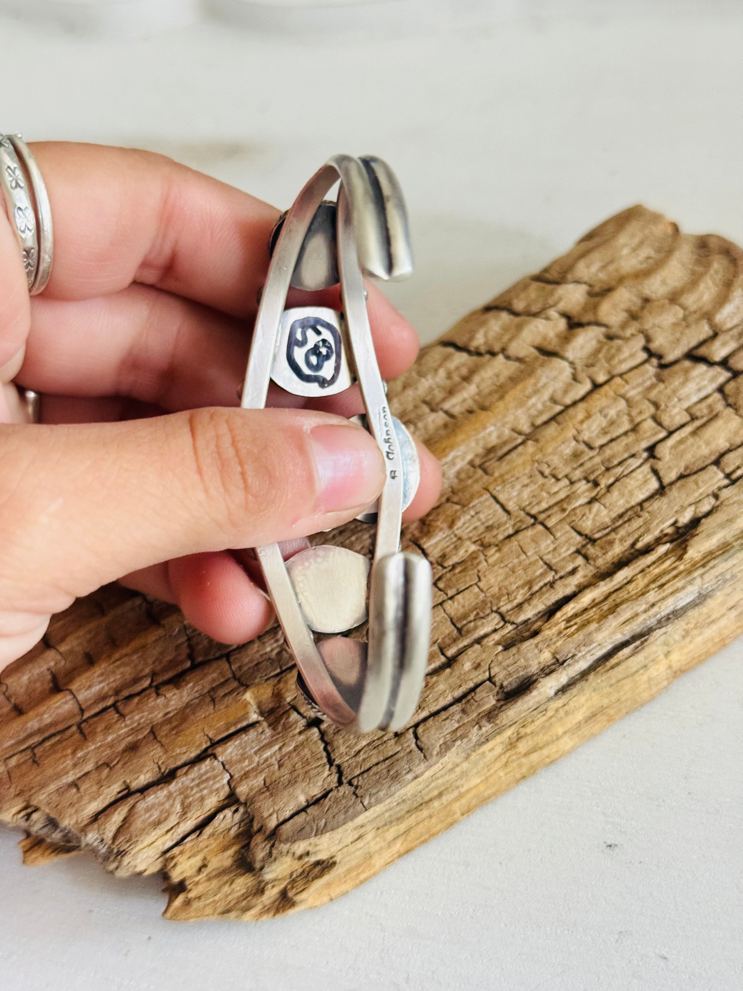 Bobby Johnson Kingman Turquoise & Sterling Silver Cluster Cuff Bracelet