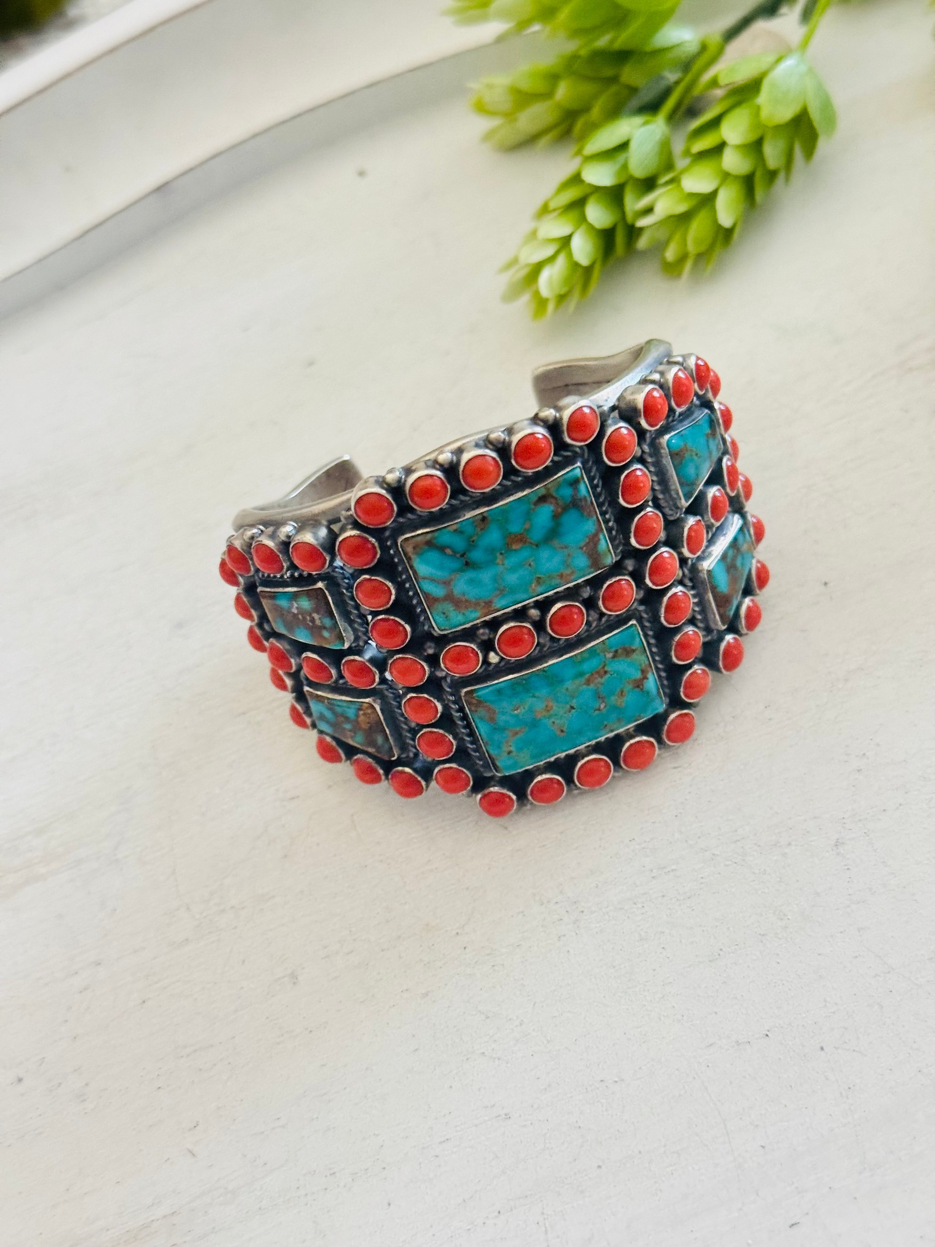 Kirk Smith Multi Stone & Sterling Silver Cluster Cuff Bracelet