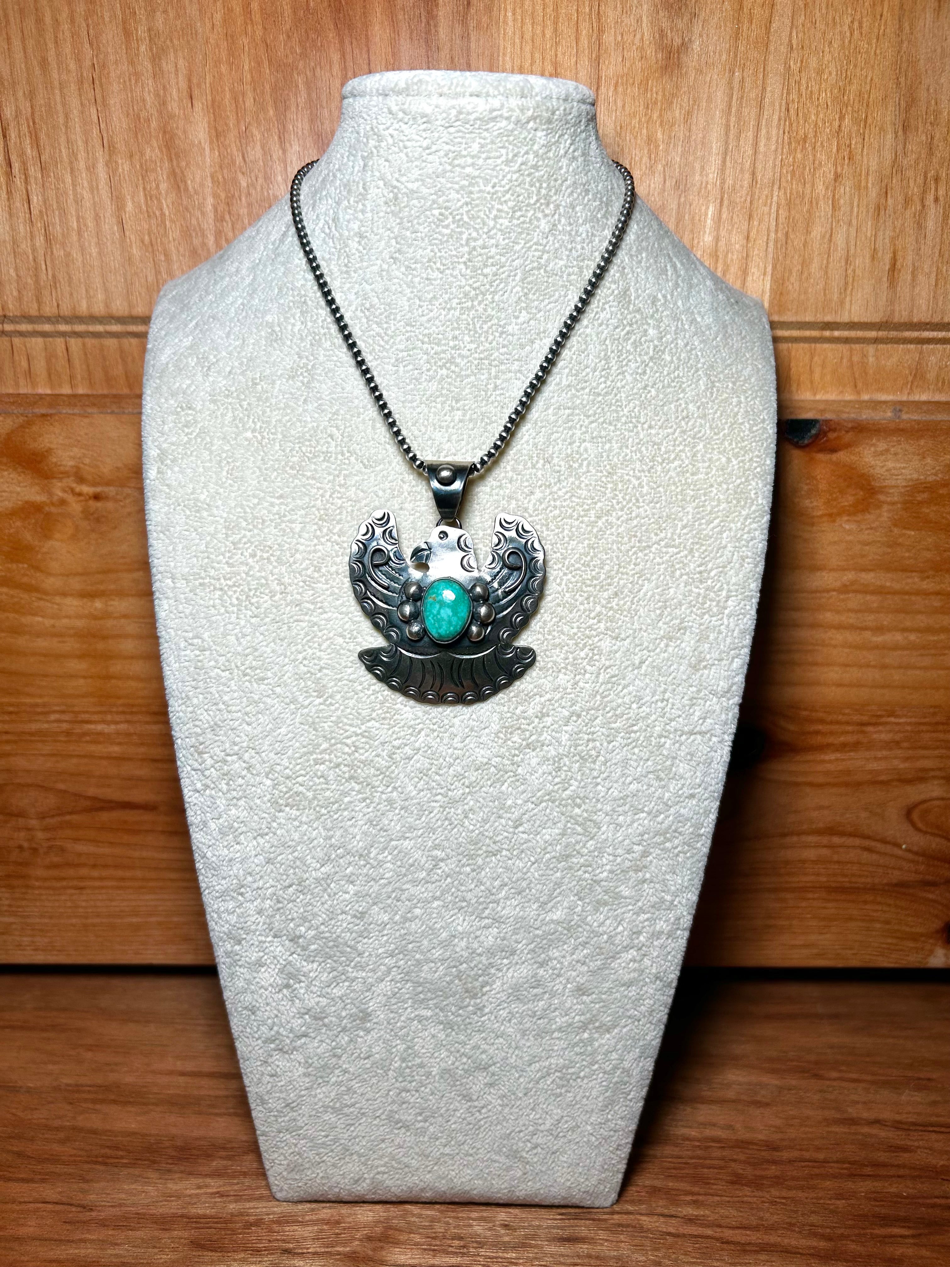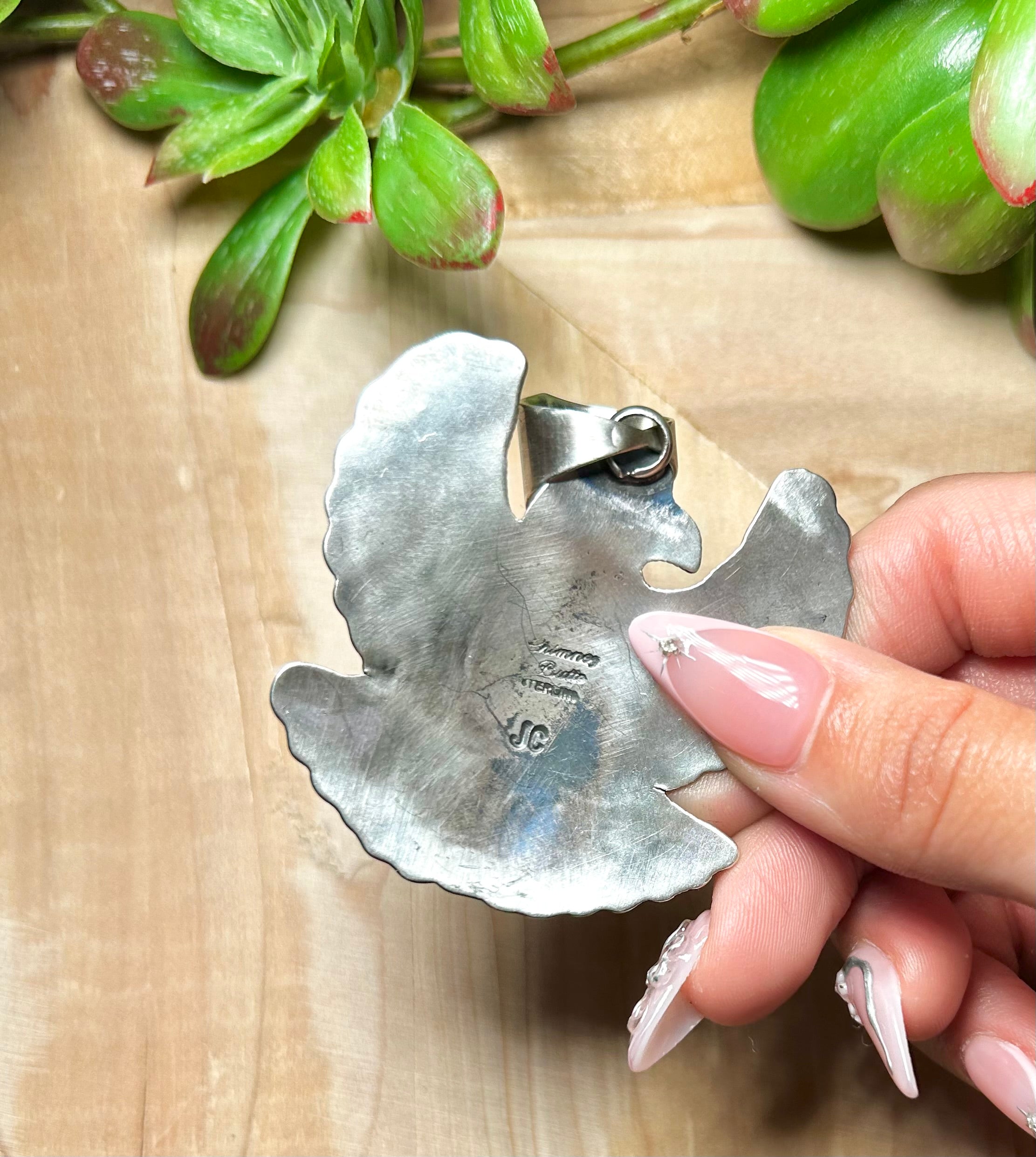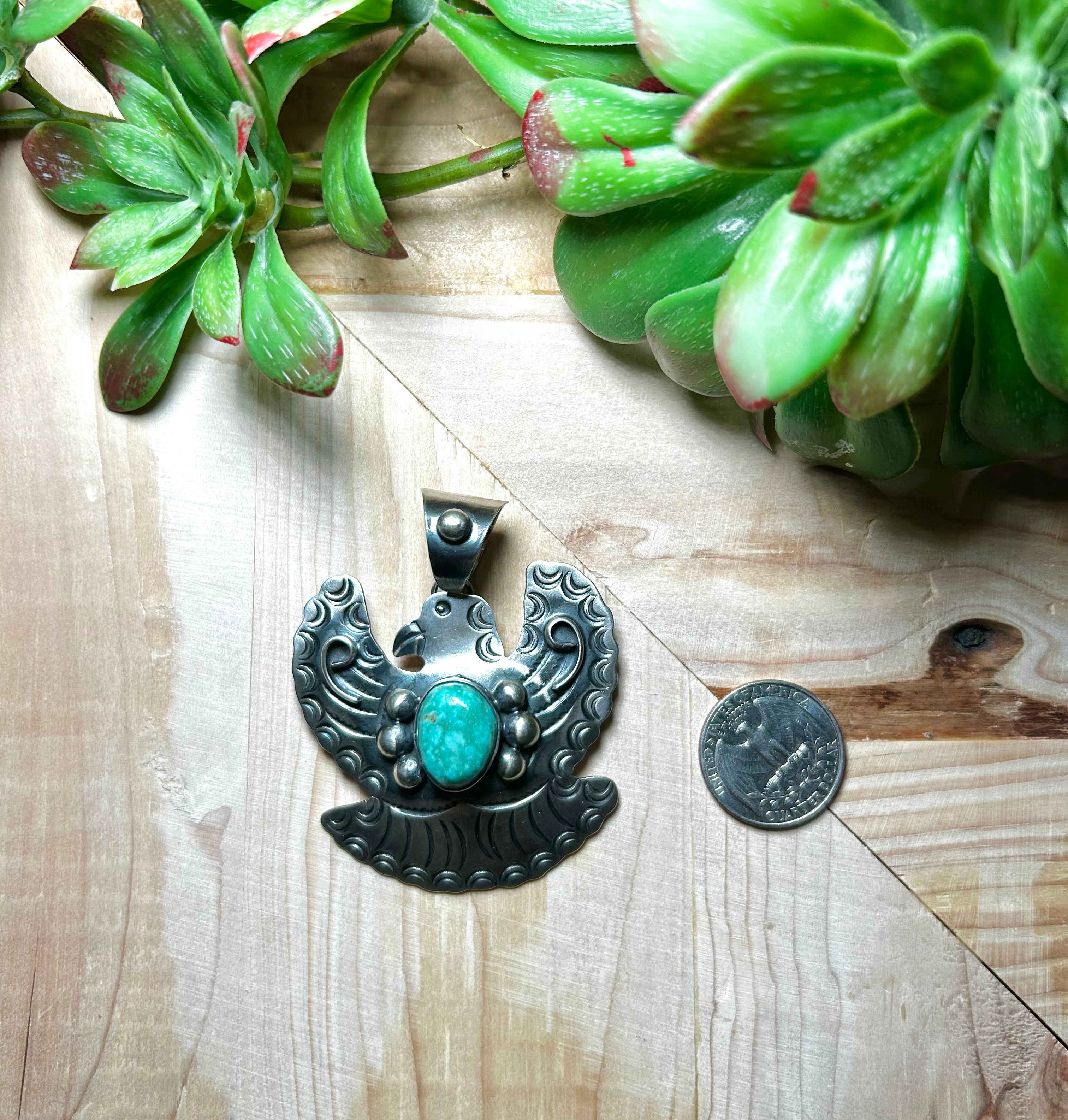 Chimney Butte Sterling Kingman Turquoise & Silver Pendant. It measures 2 5/8 inches long and 2 1/8 inches wide. Pendant Only!! Signed by the artist and stamped sterling silver.