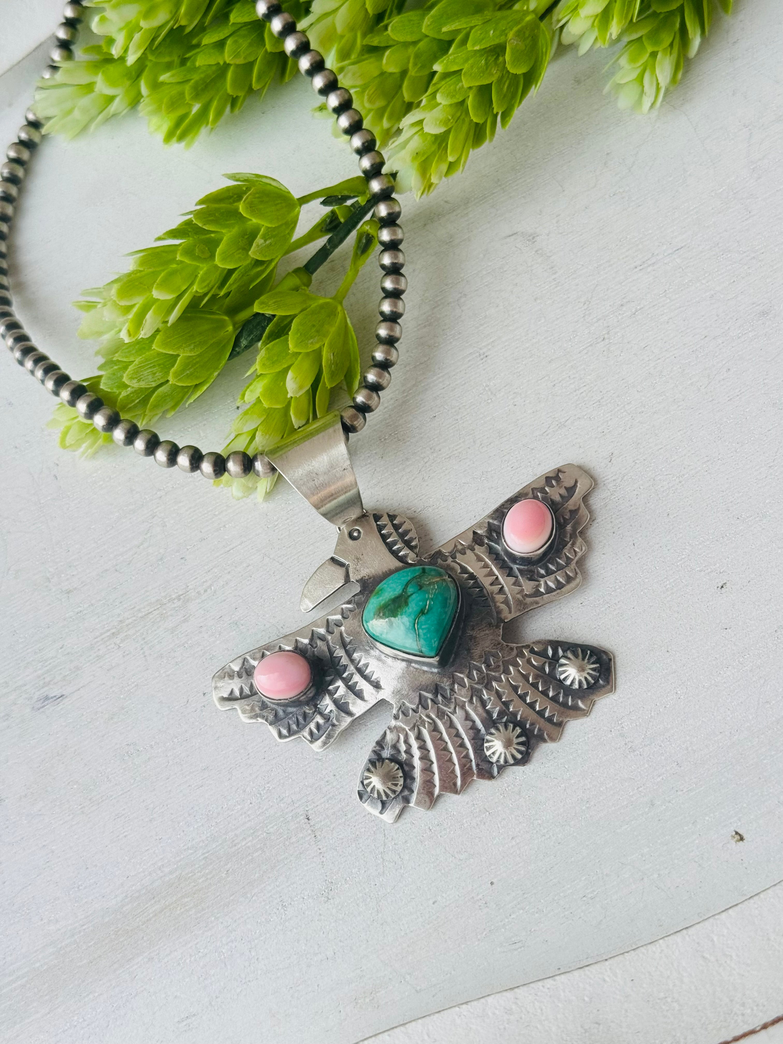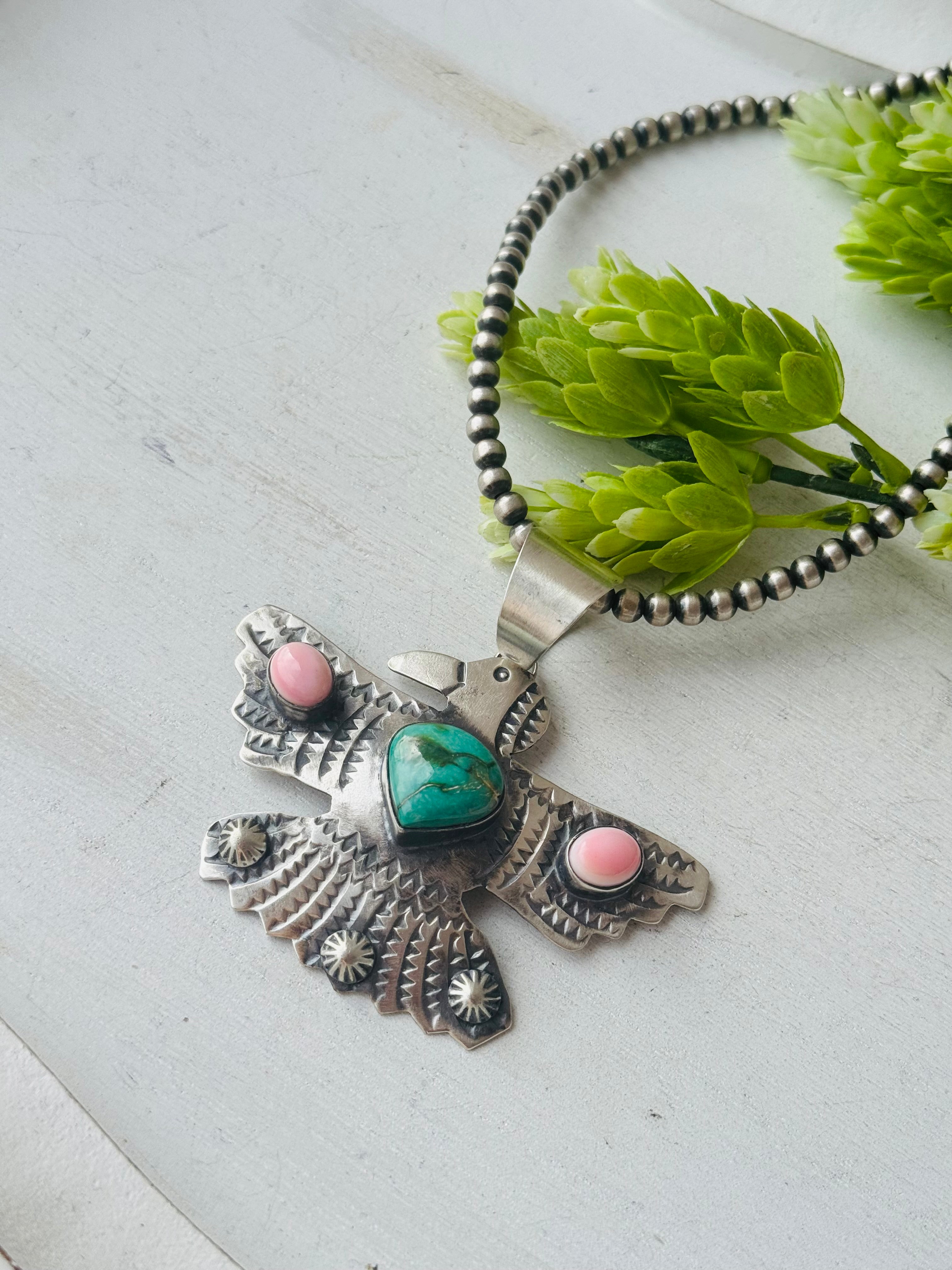 Chimney Butte Multi Stone & Sterling Silver Thunderbird Pendant