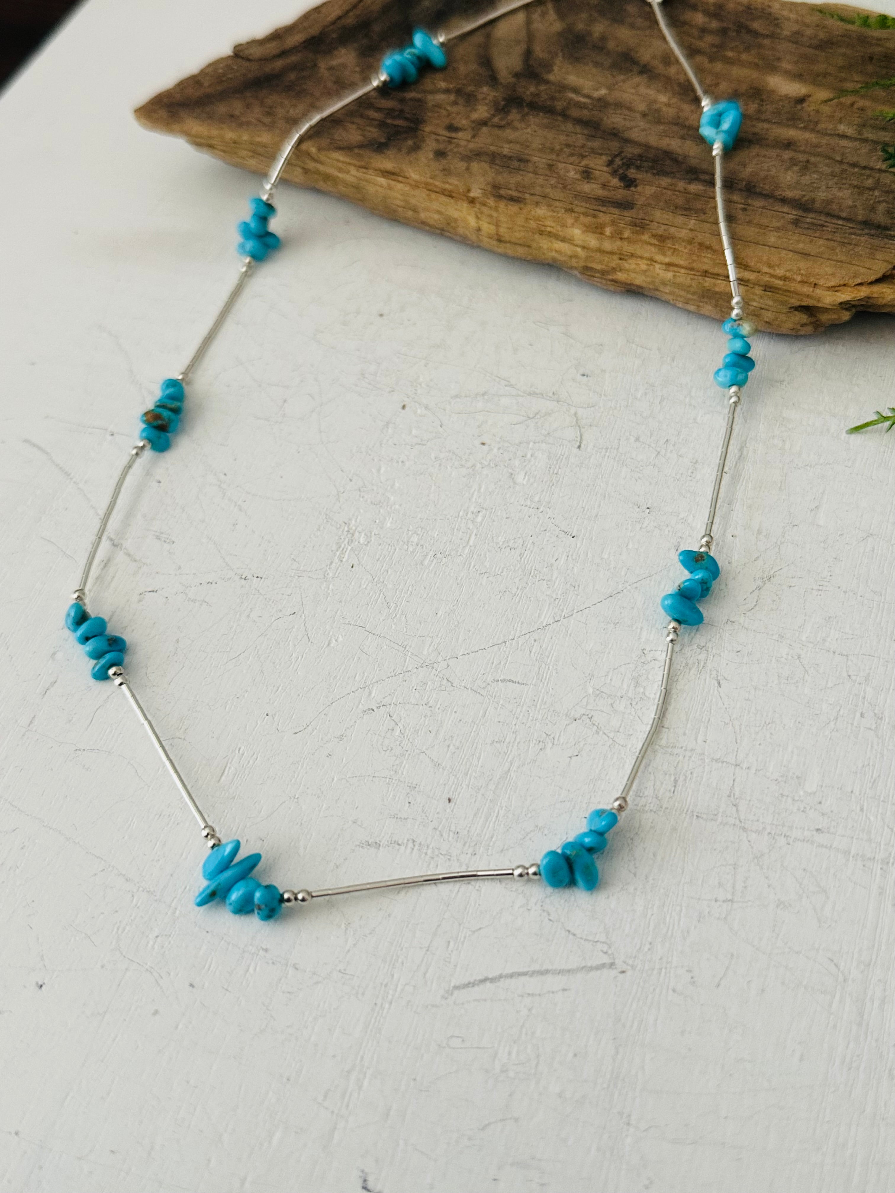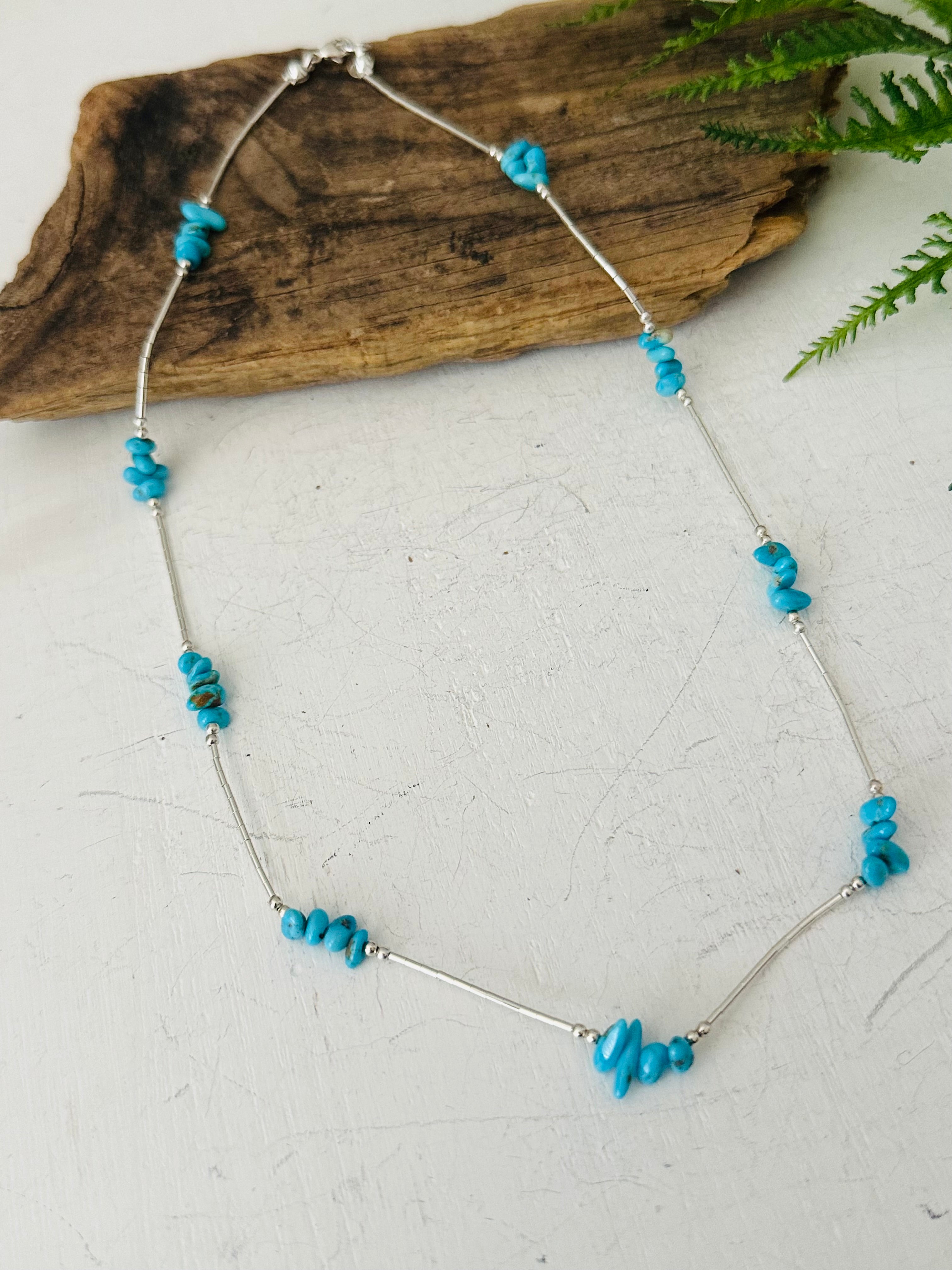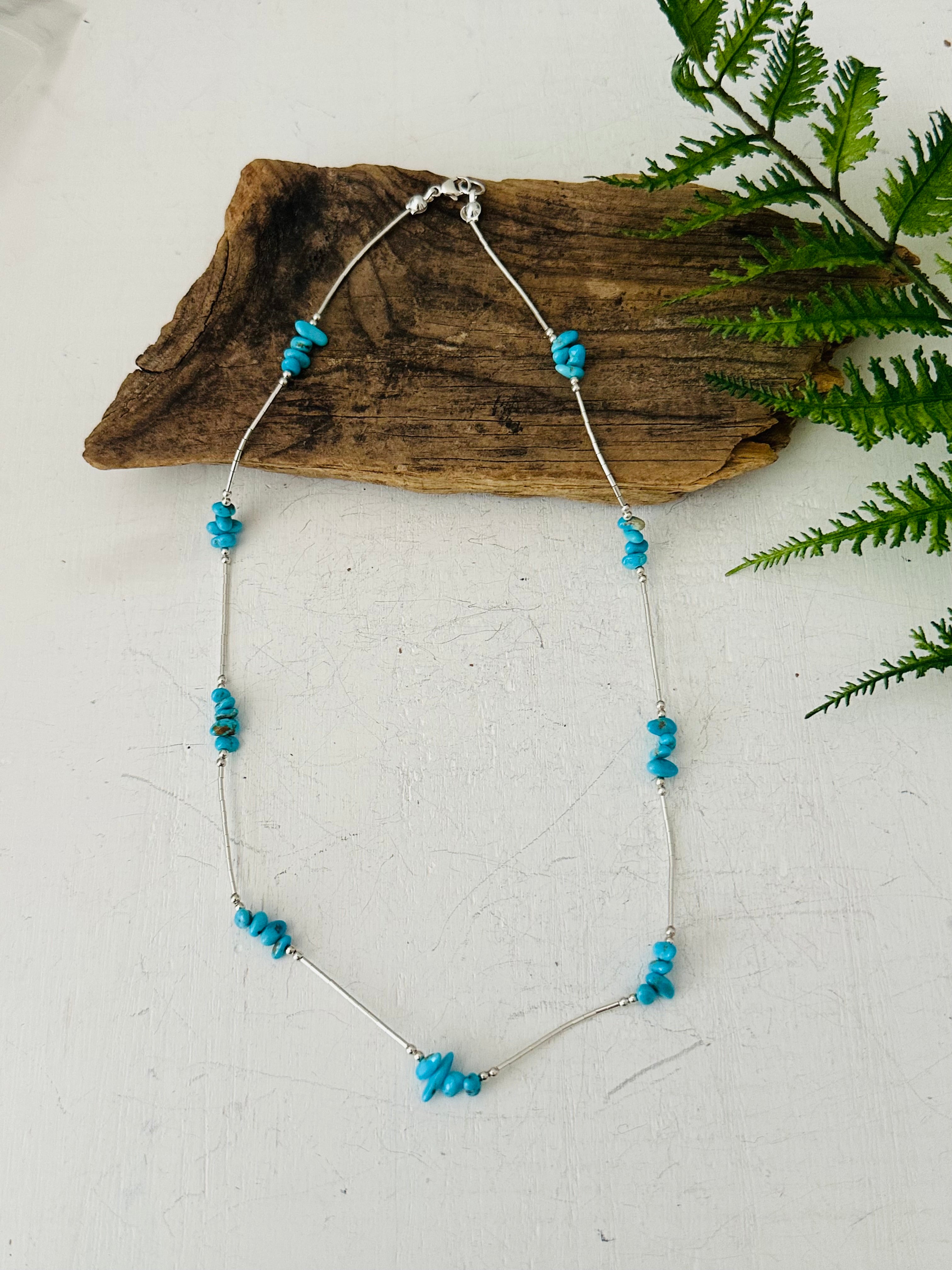 Corraine Smith Kingman & Sterling Silver Beaded Necklace. It measures 18 inches long.