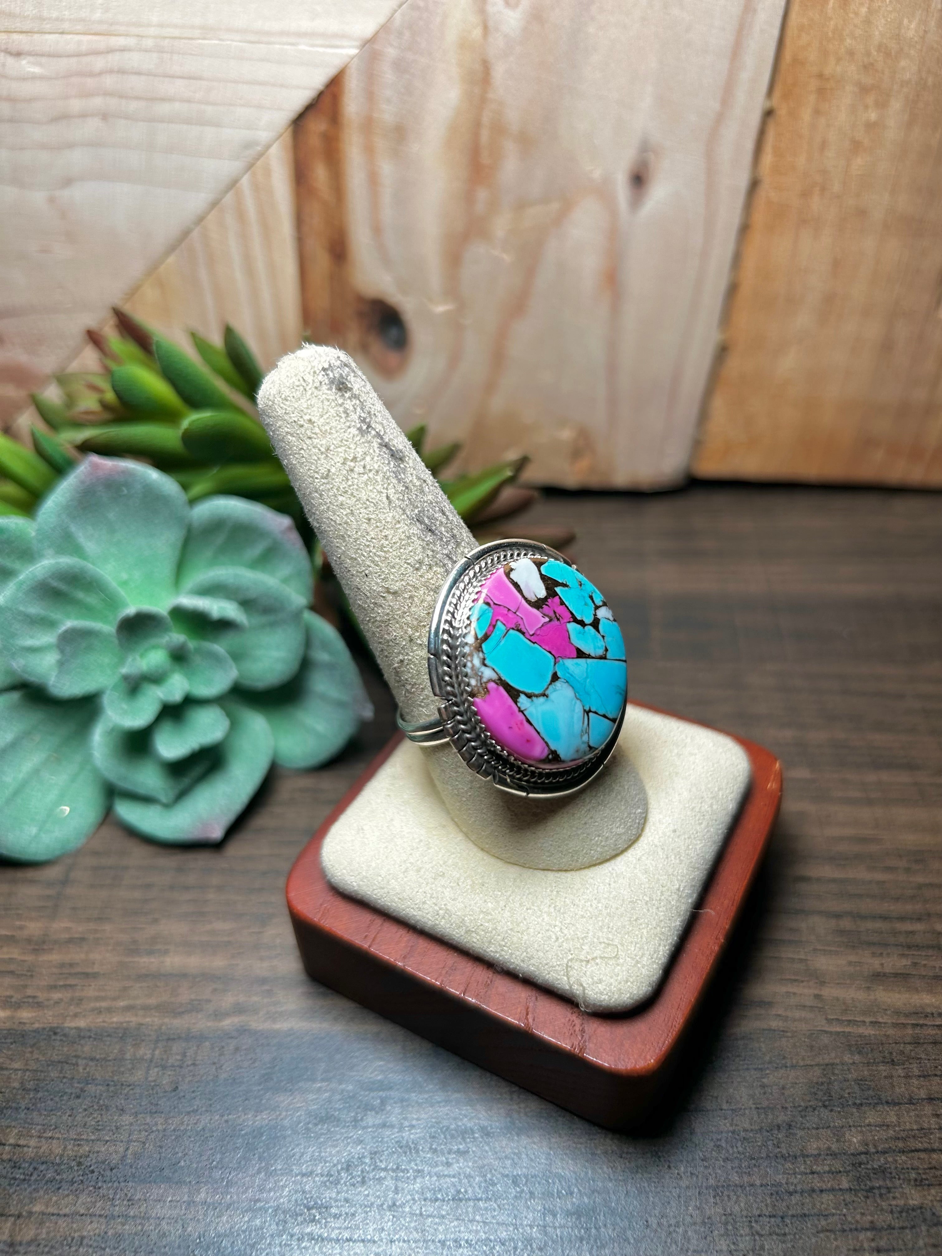 Dane Skeets Cotton Candy Dahlia & Sterling Silver Ring Size 9.75