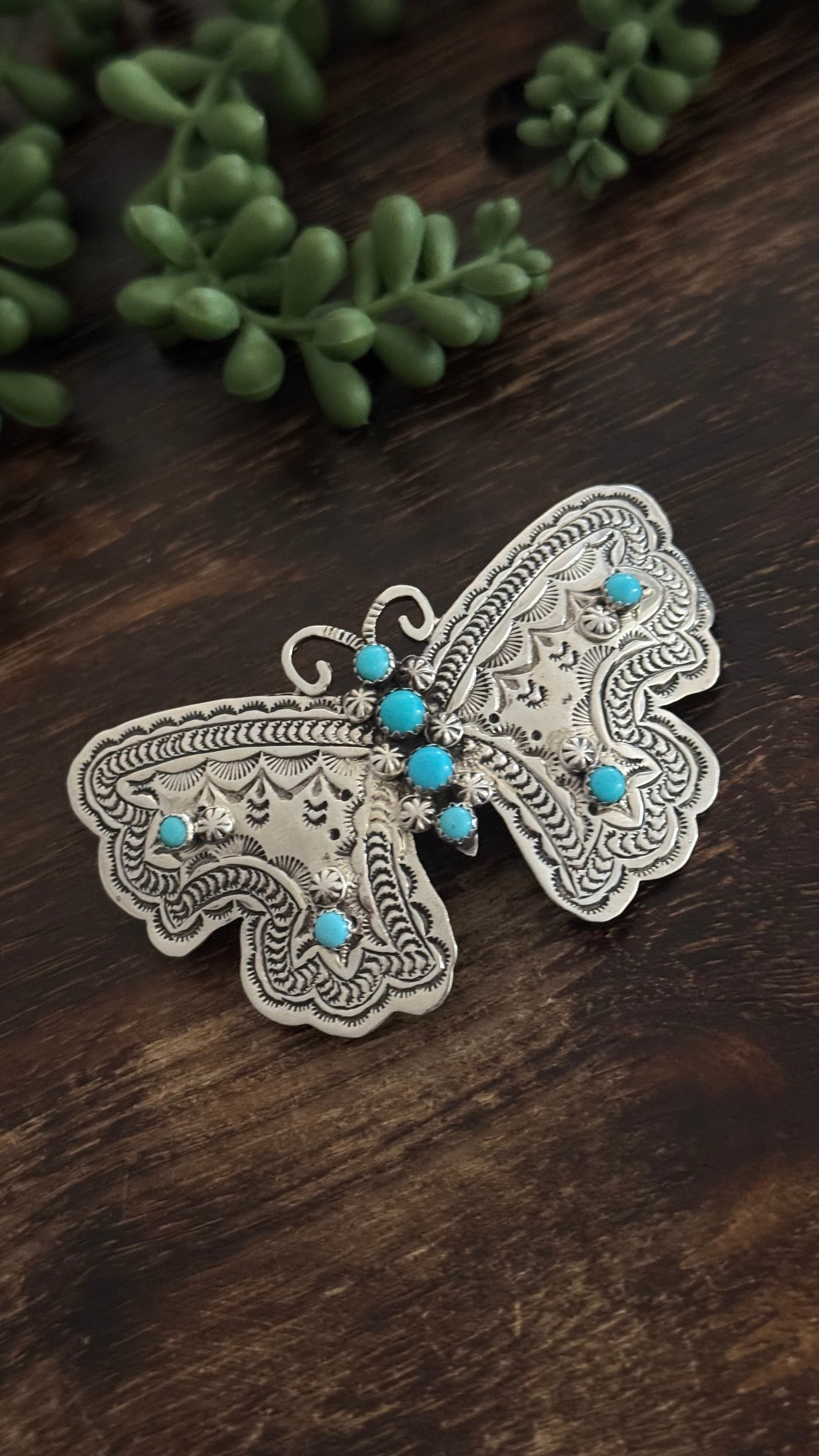Jereme Delgarito Kingman Turquoise & Sterling Silver Butterfly Hair Barrette