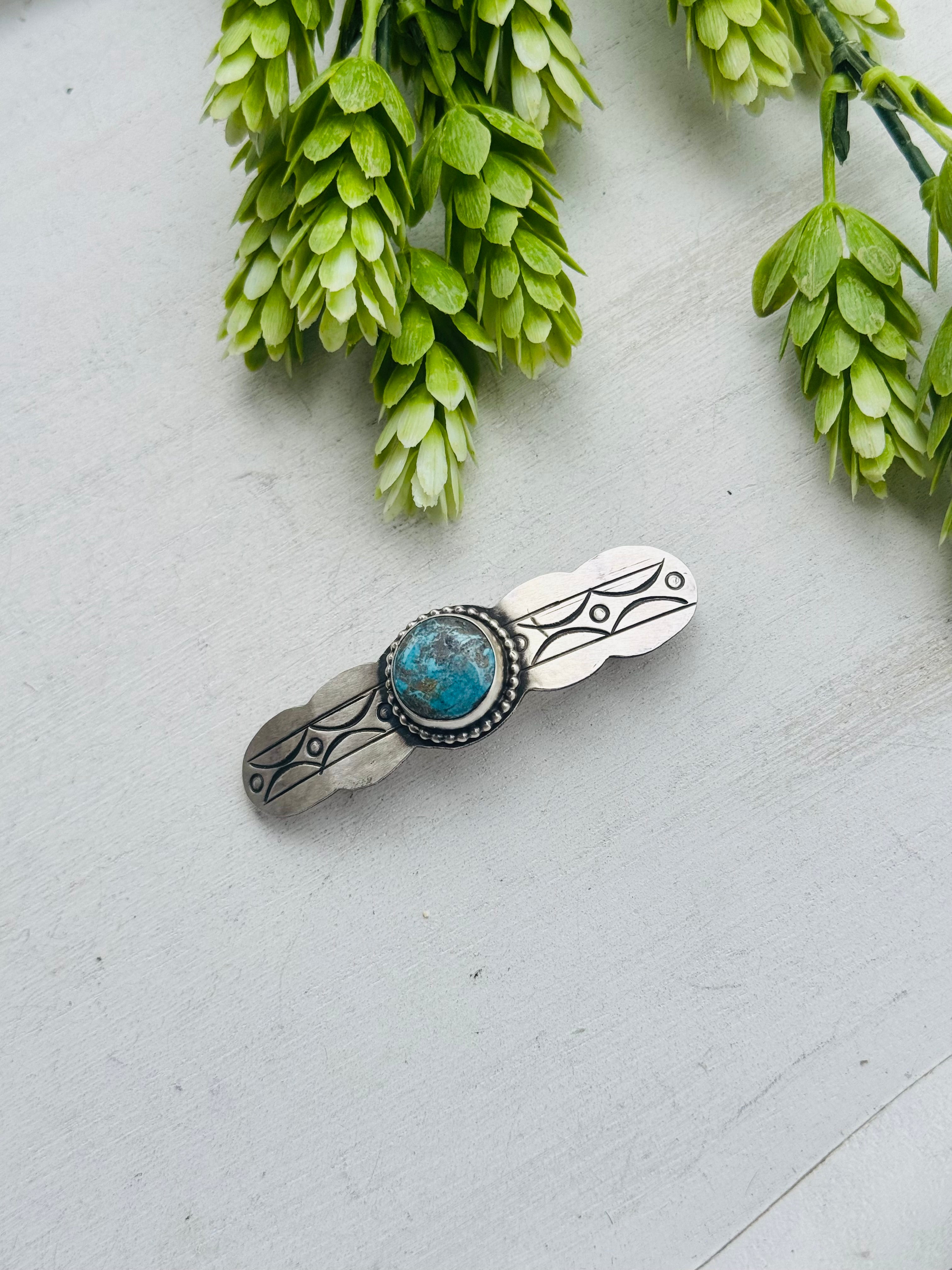 Danny Henio Kingman Turquoise & Sterling Silver Hair Barrette