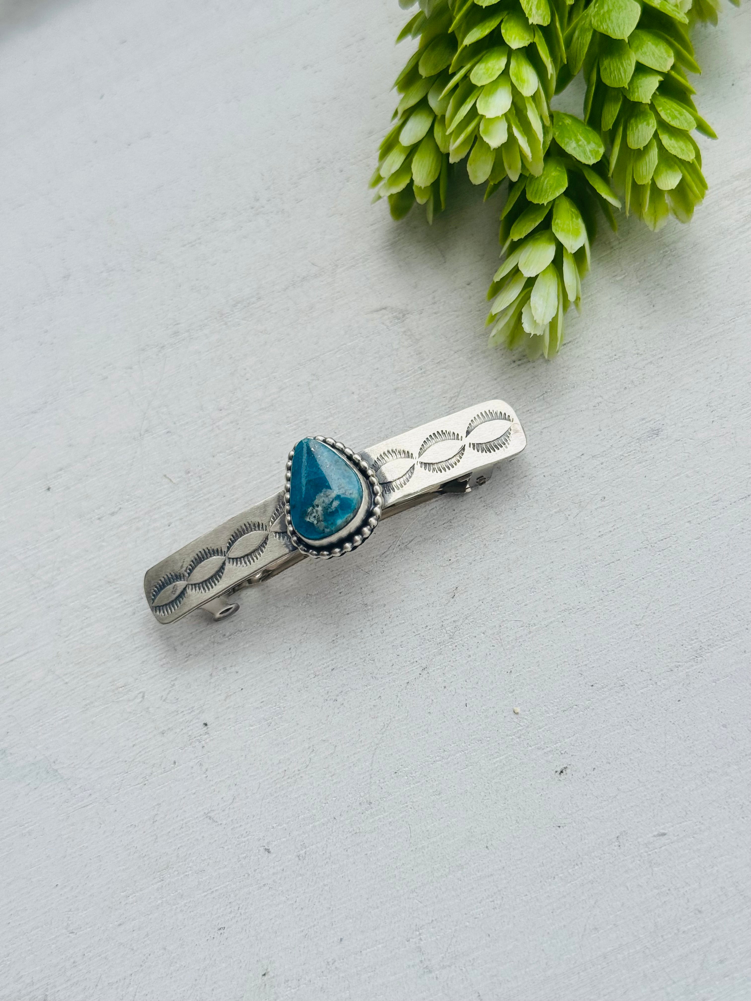 Danny Henio Kingman Turquoise & Sterling Silver Hair Barrette