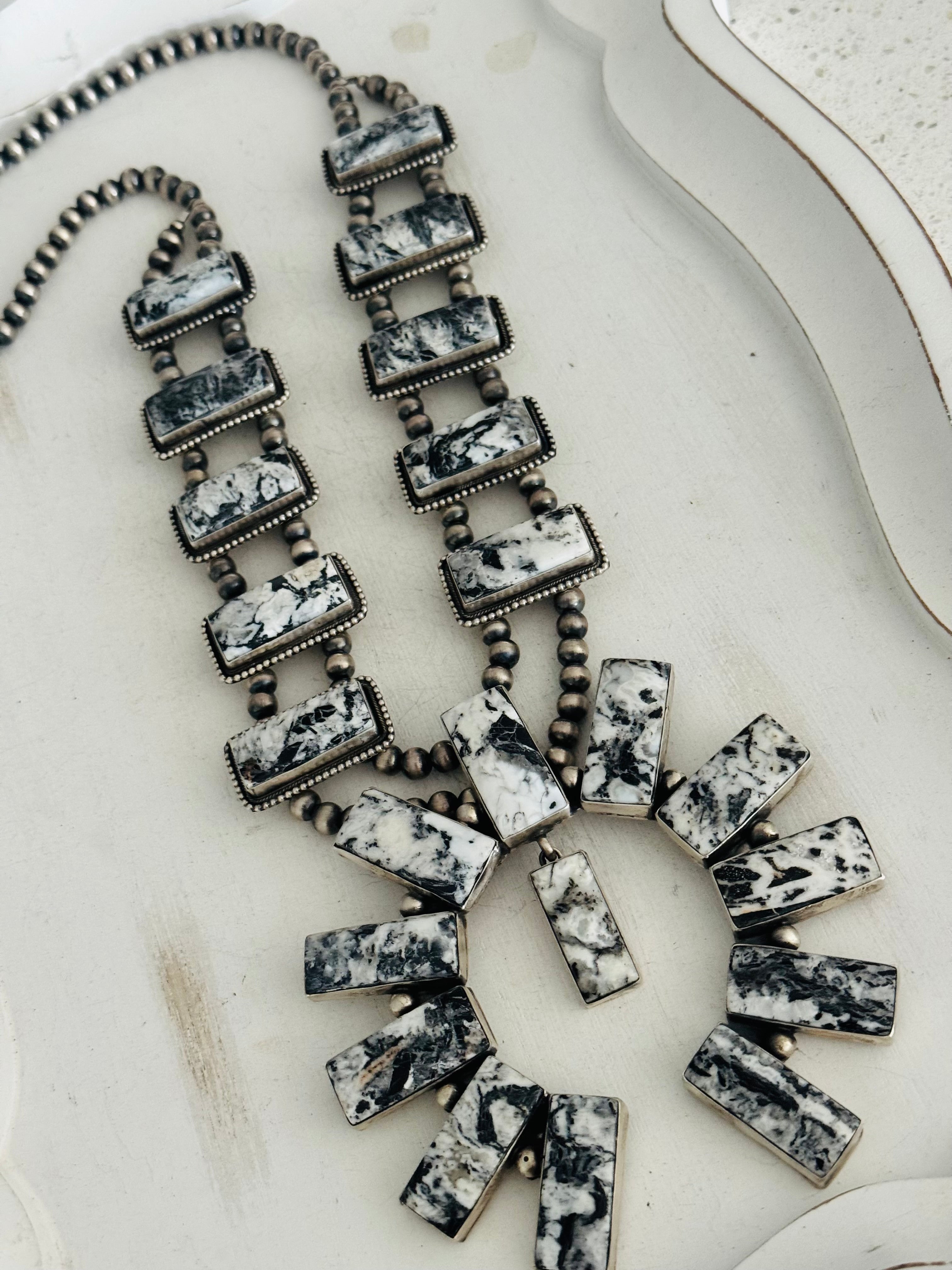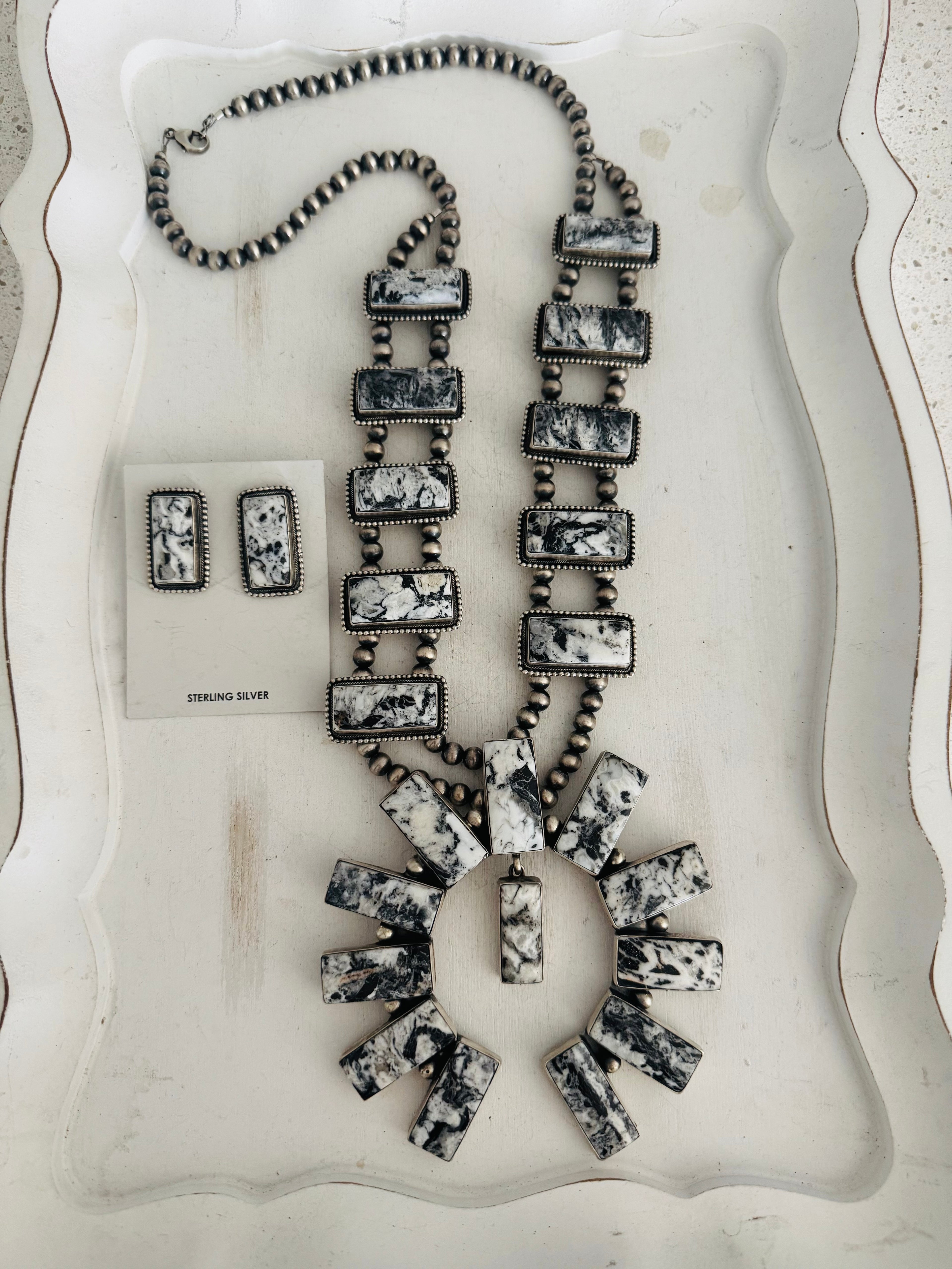 Darrin Livingston White Buffalo & Sterling Silver Squash Blossom Necklace Set