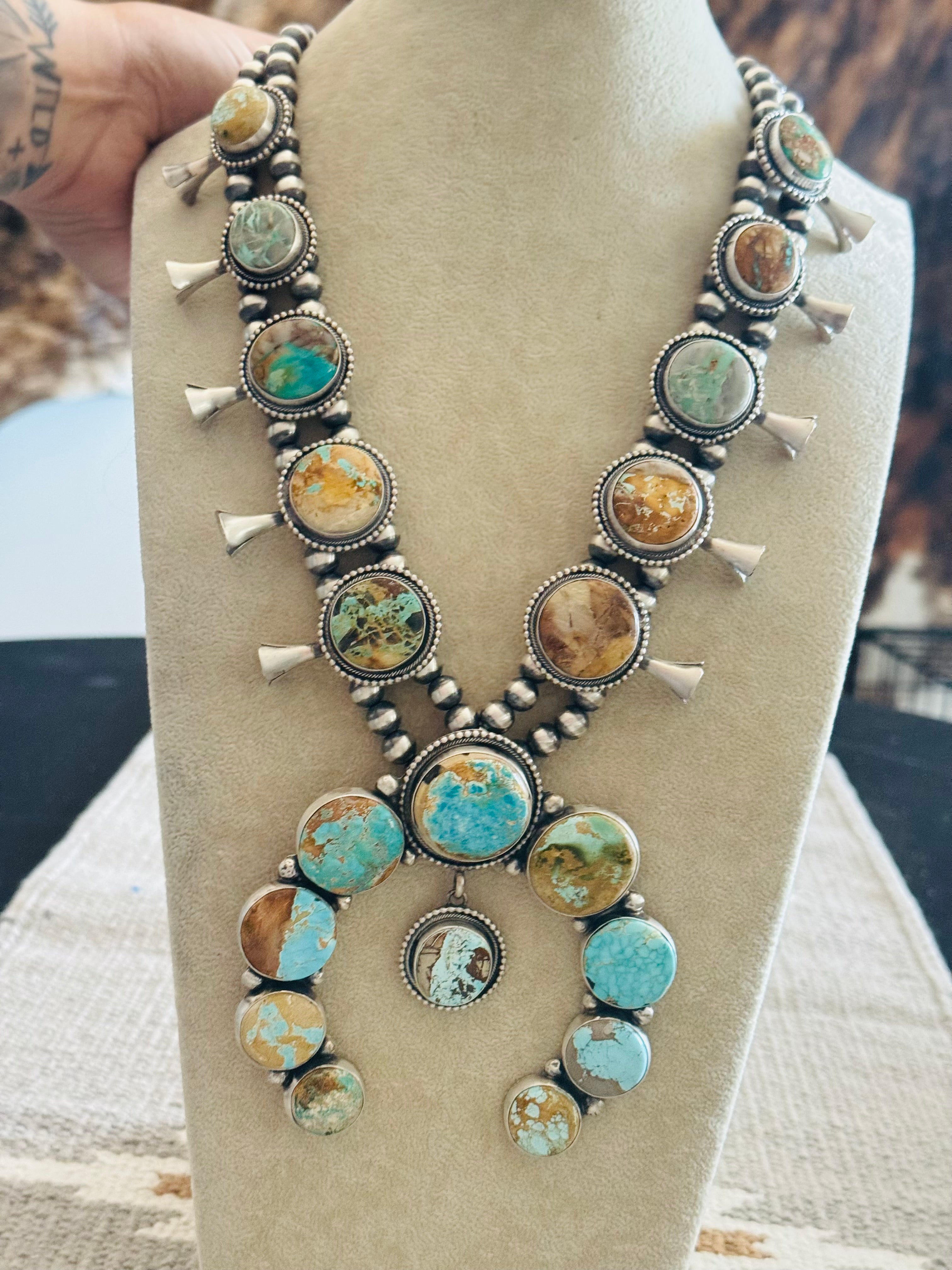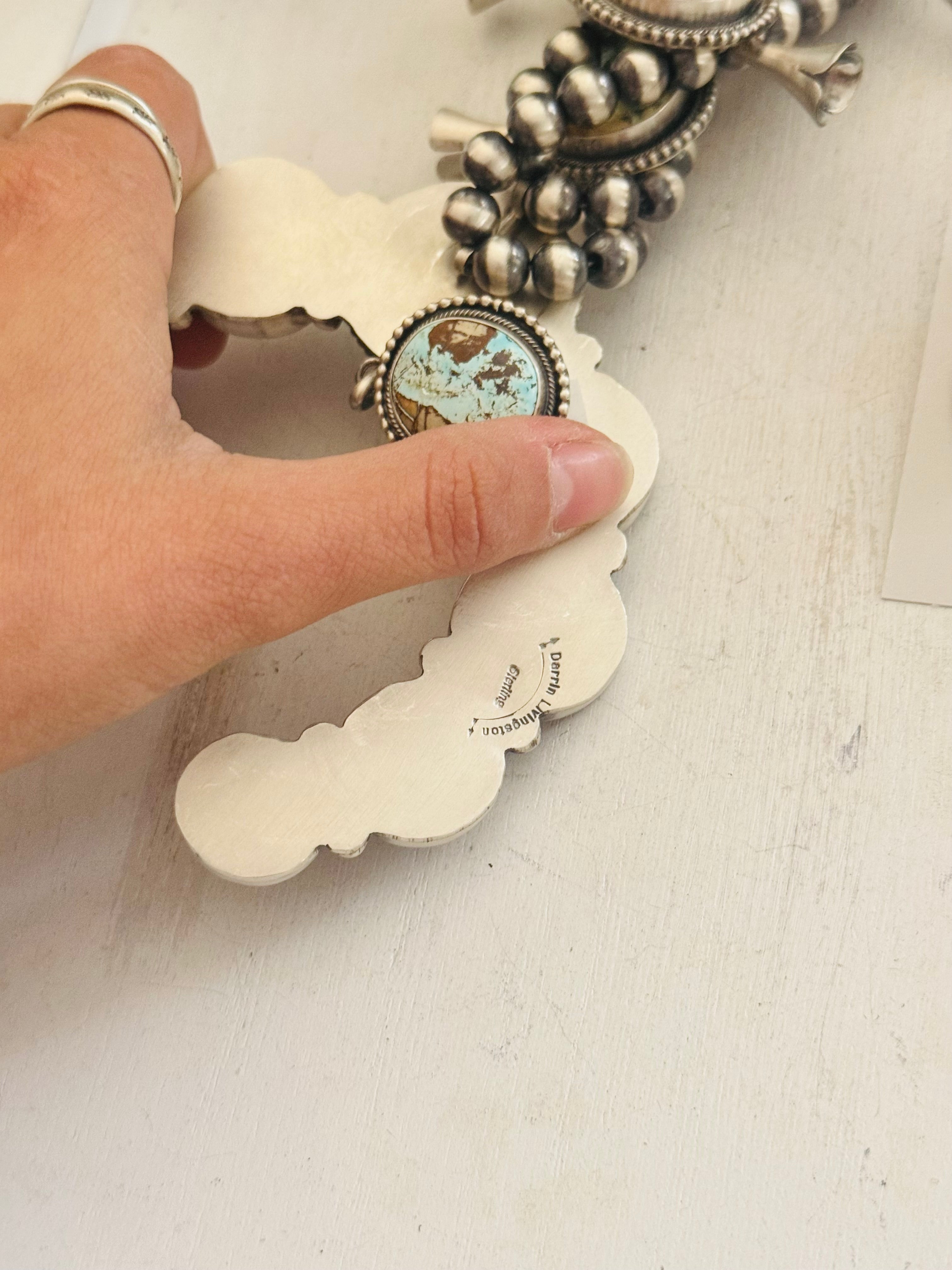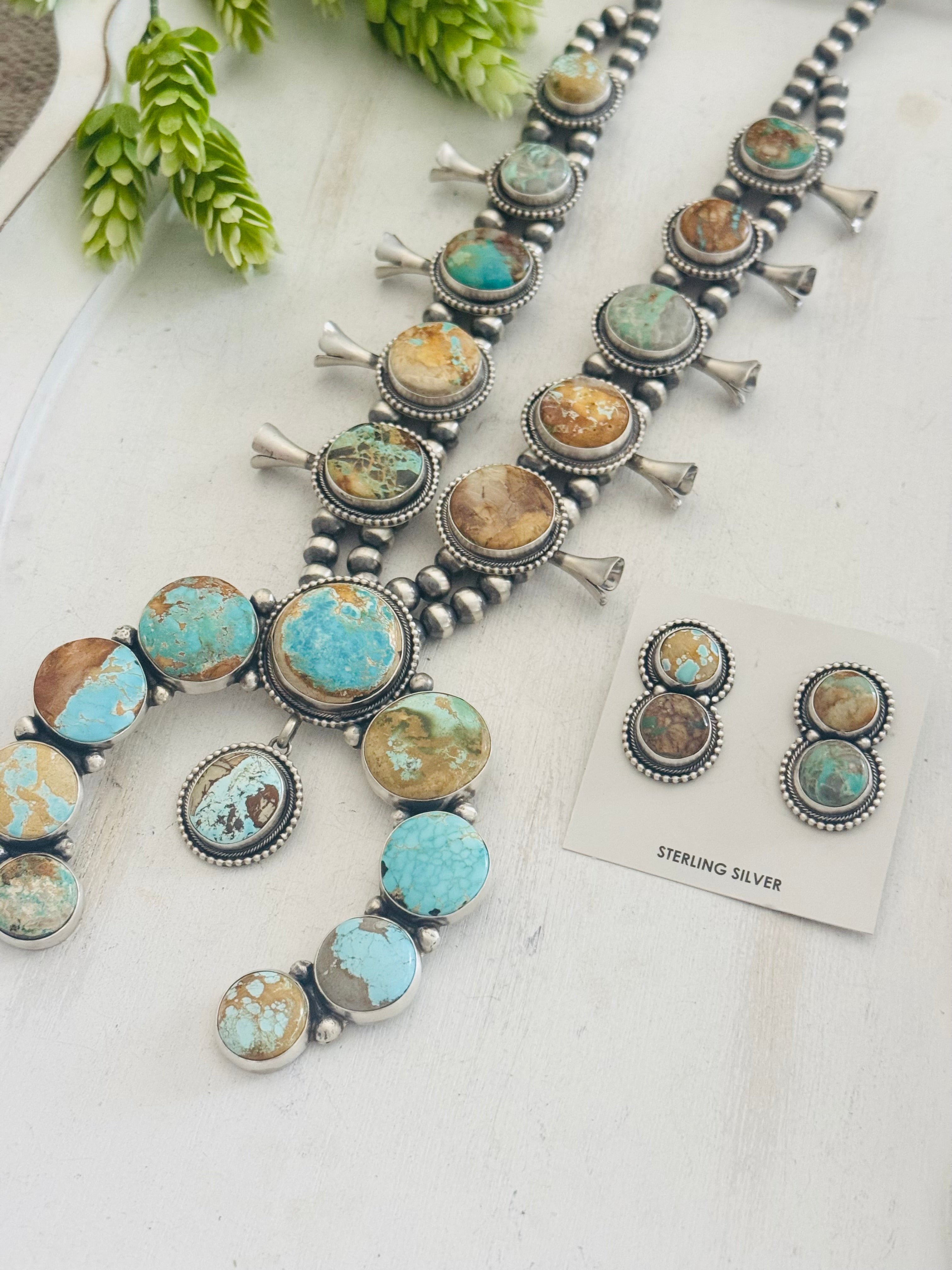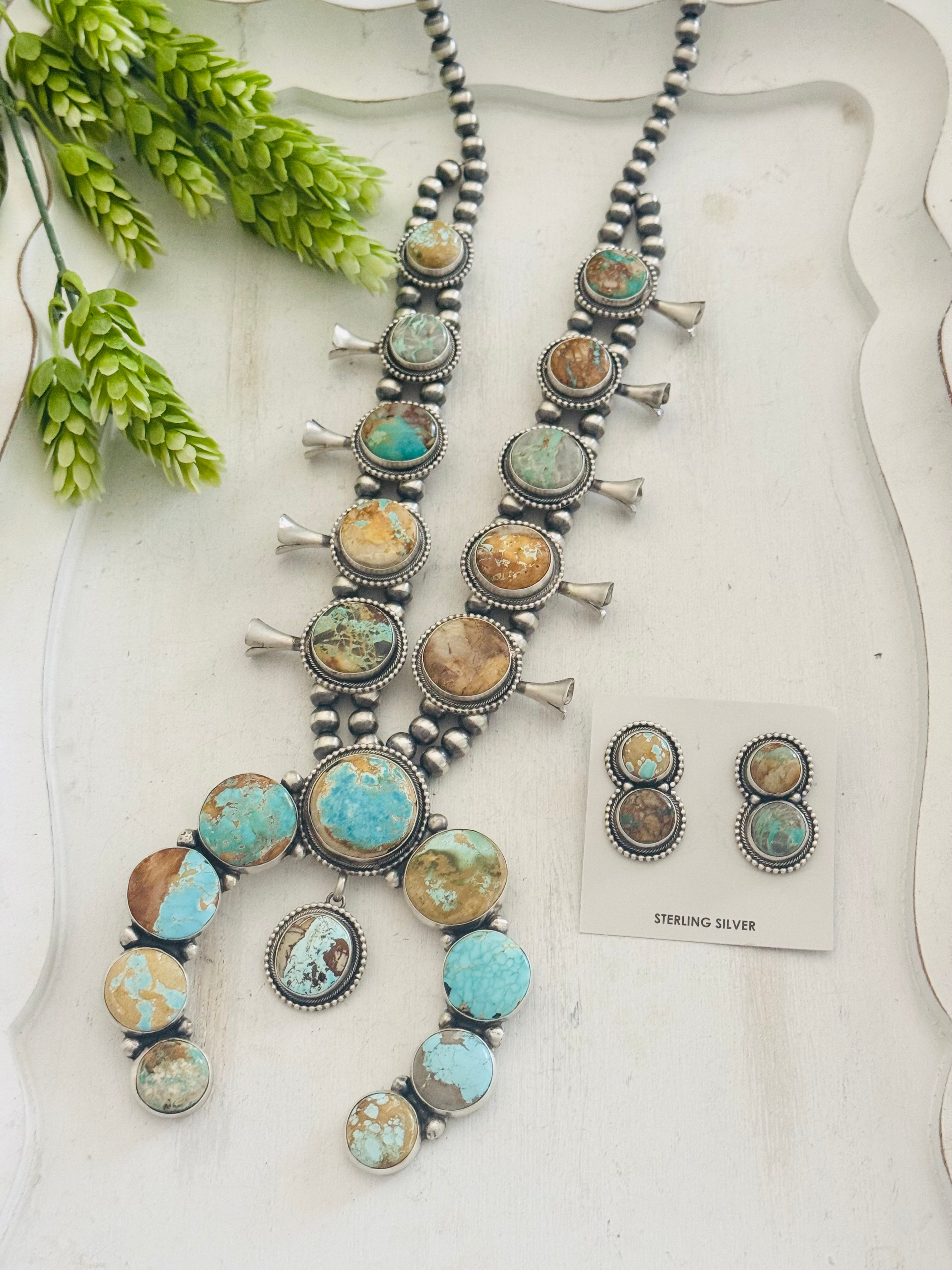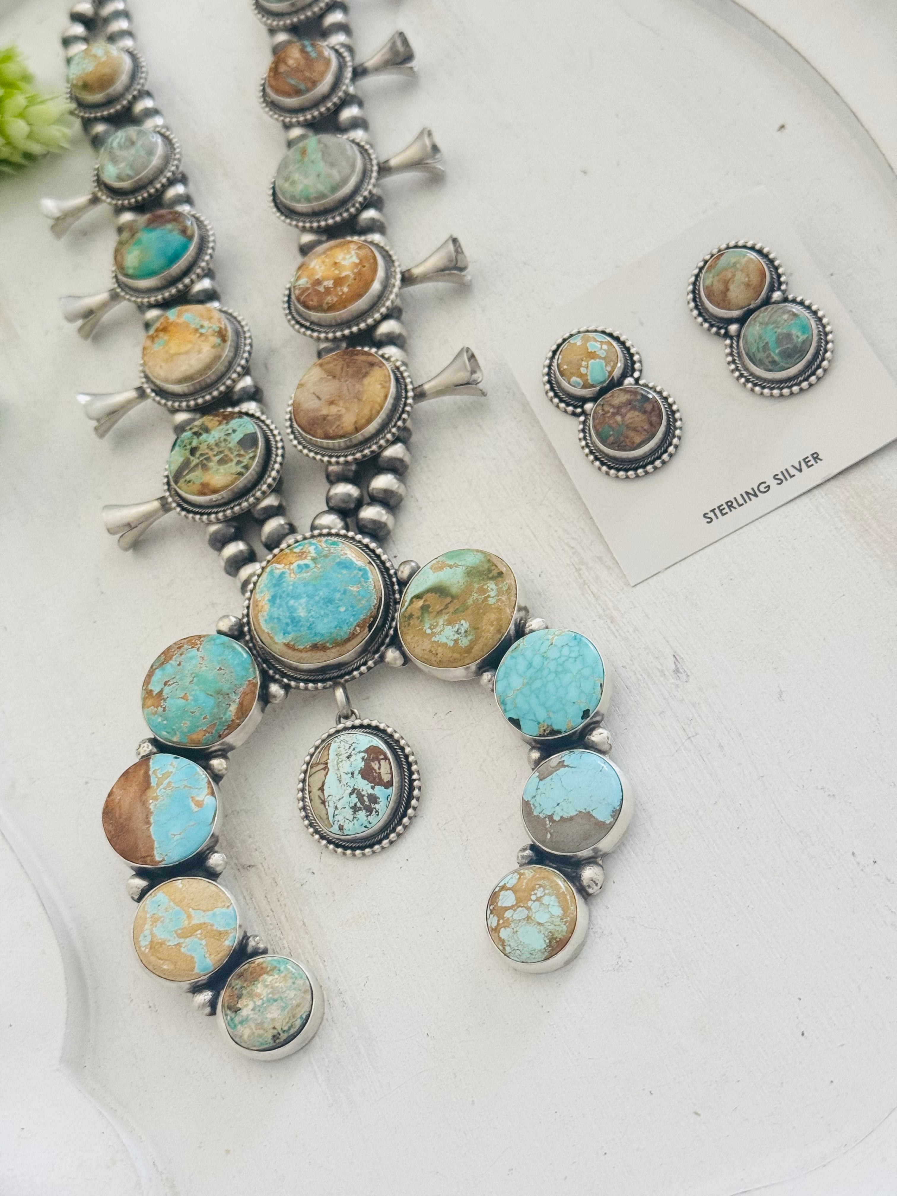 Darrin Livingston Royston Turquoise & Sterling Silver Squash Blossom Necklace Set
