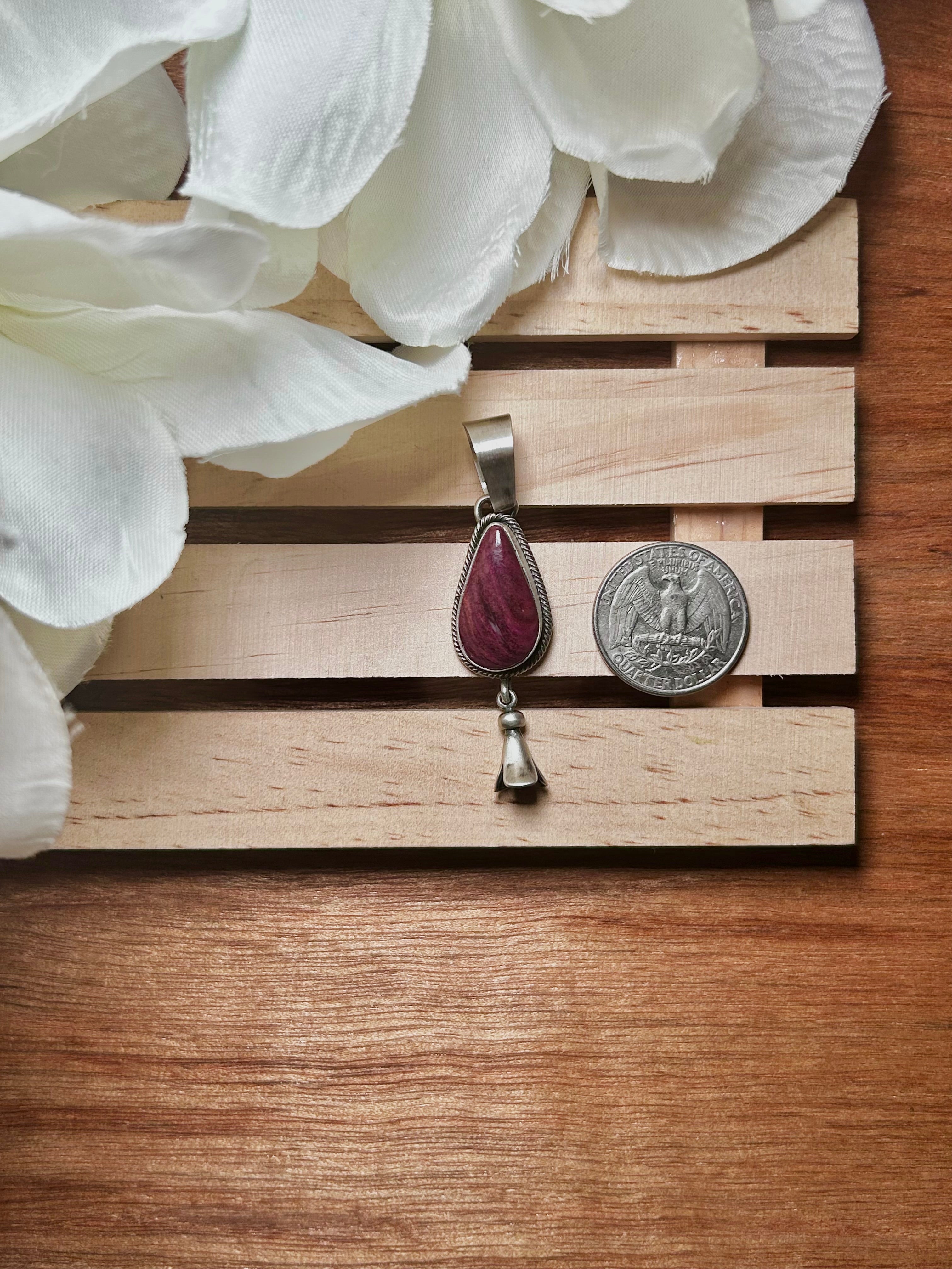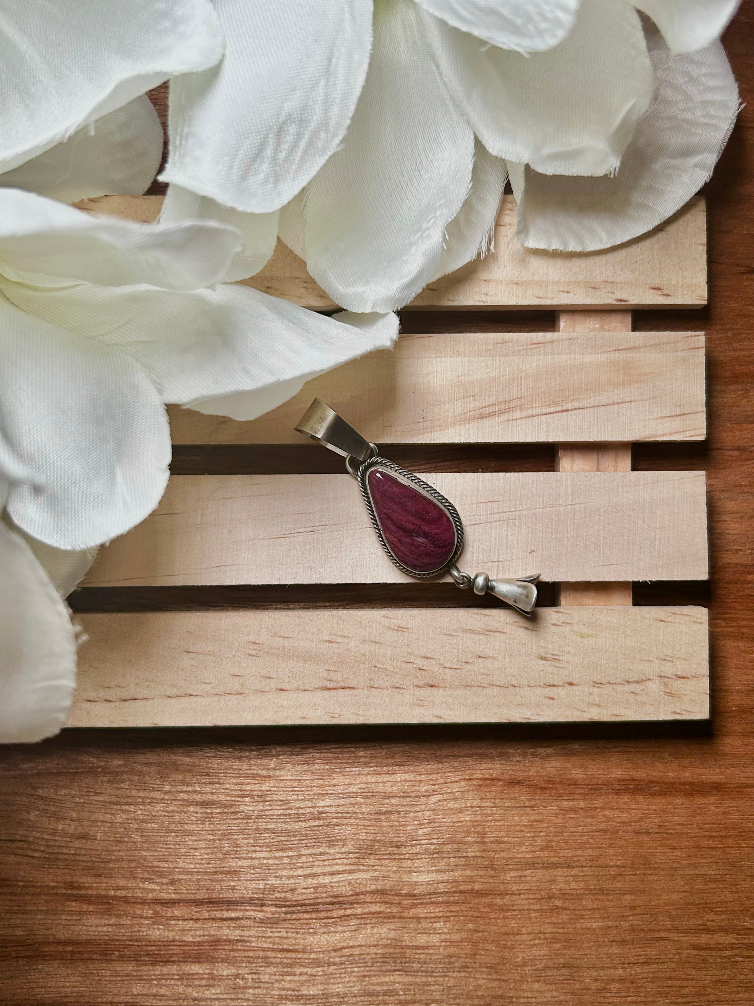 Darrin Livingston Purple Spiny Oyster & Sterling Silver Pendant. It measures 2 3/8 inches long and 5/8 of an inch wide. Pendant Only. Signed by the artist and stamped sterling silver.