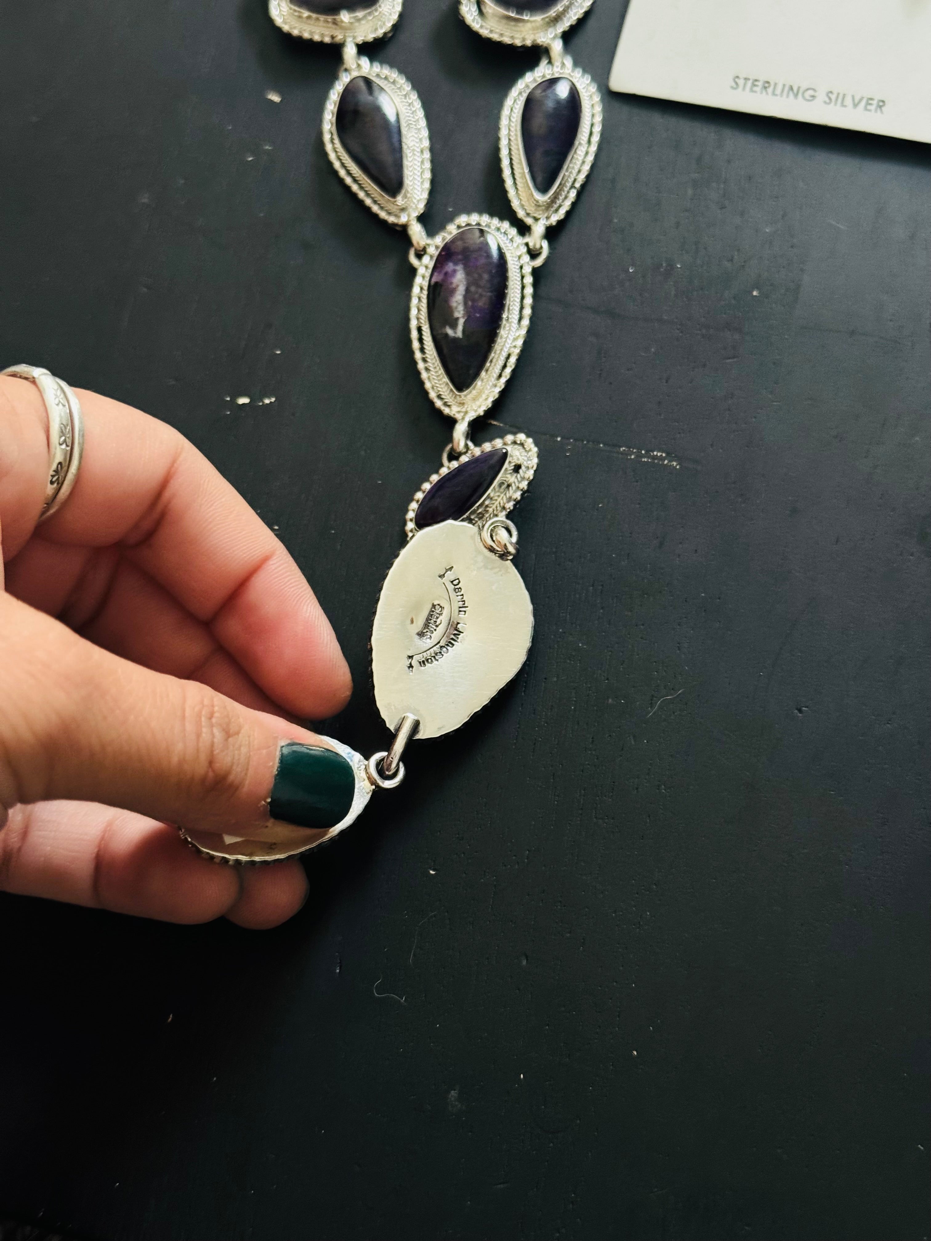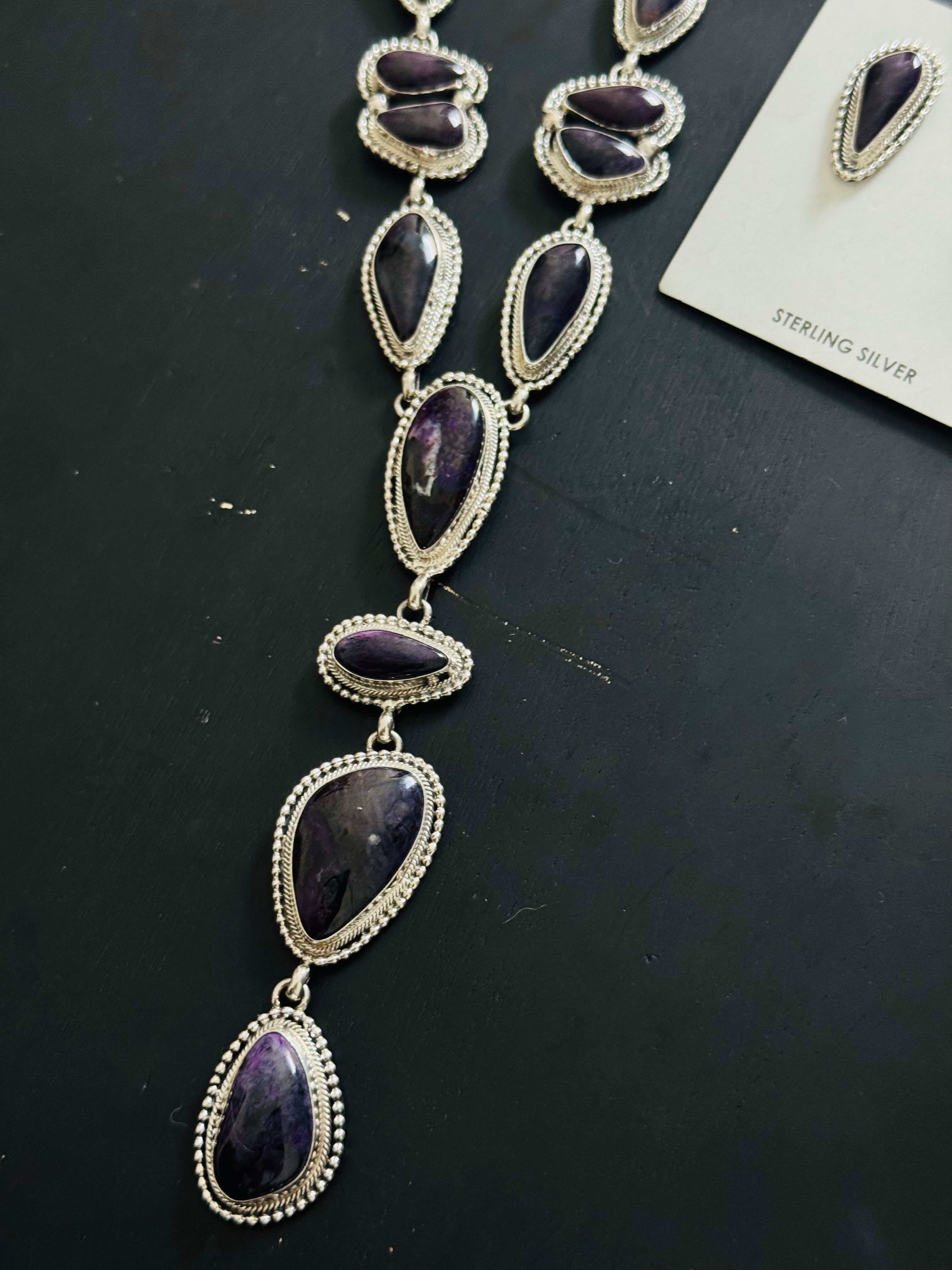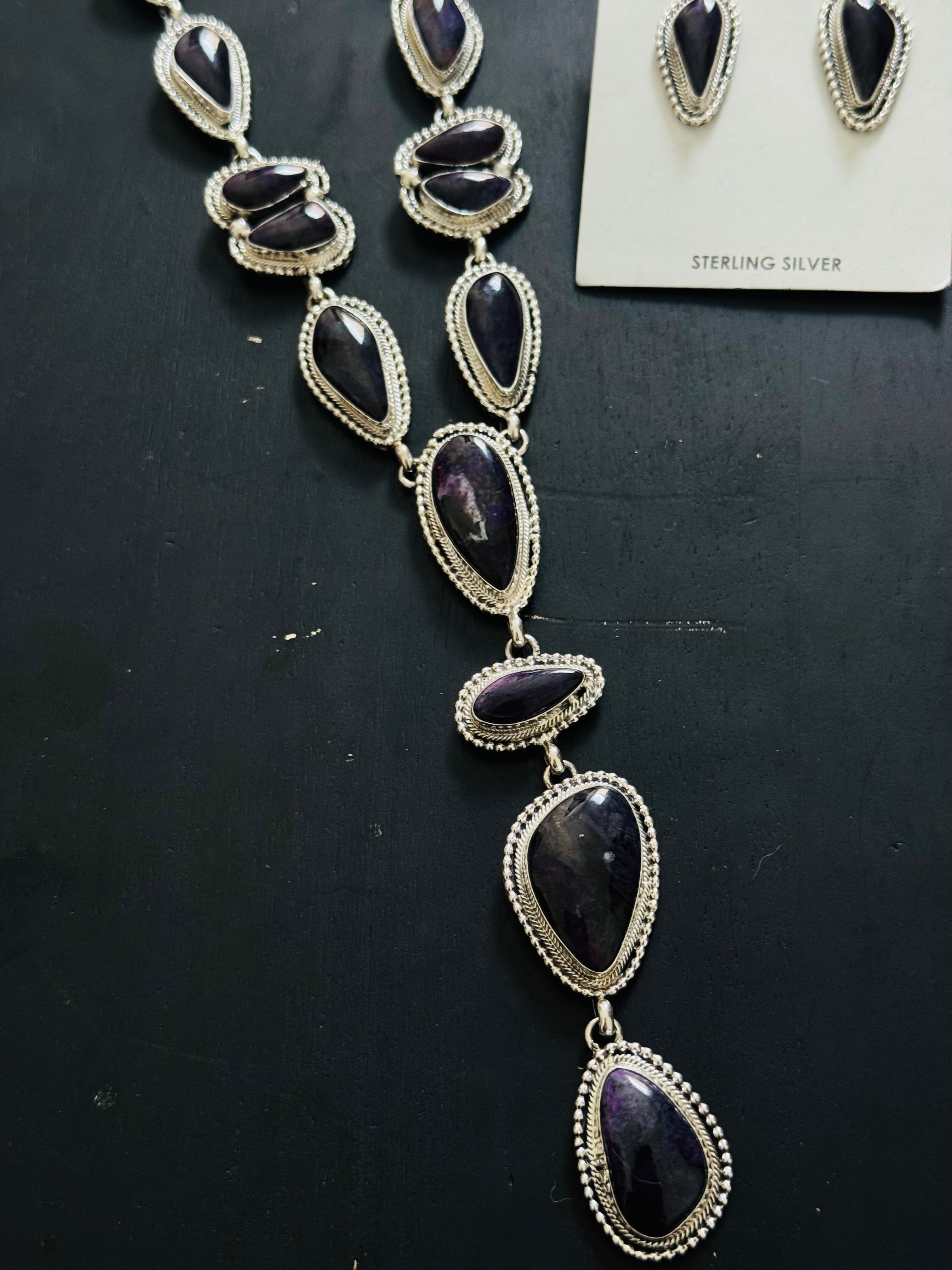 Darrin Livingston High Grade Sugilite & Sterling Silver Lariat Necklace Set