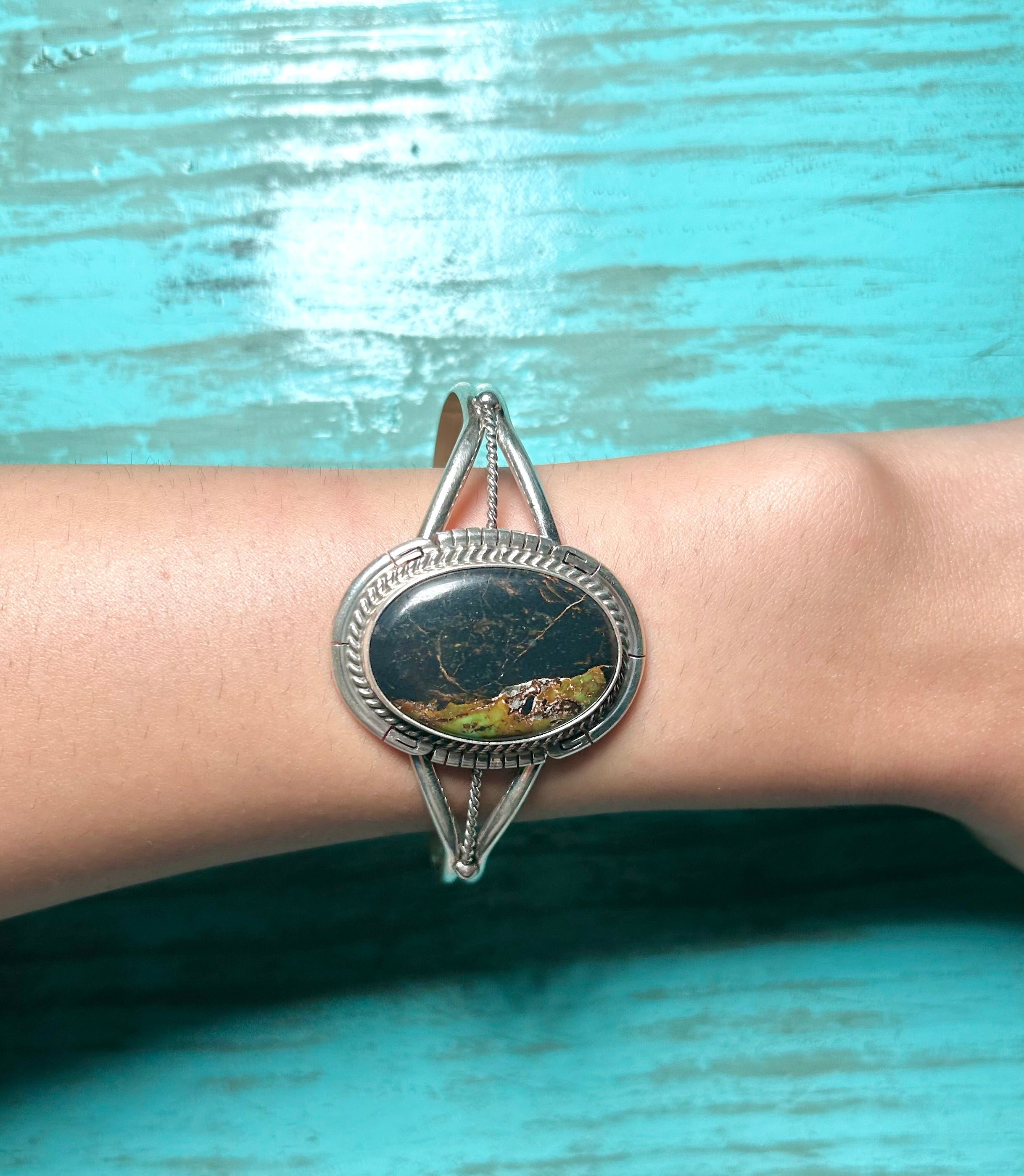 Dave Skeets Black Jack Turquoise & Sterling Silver Cuff Bracelet
