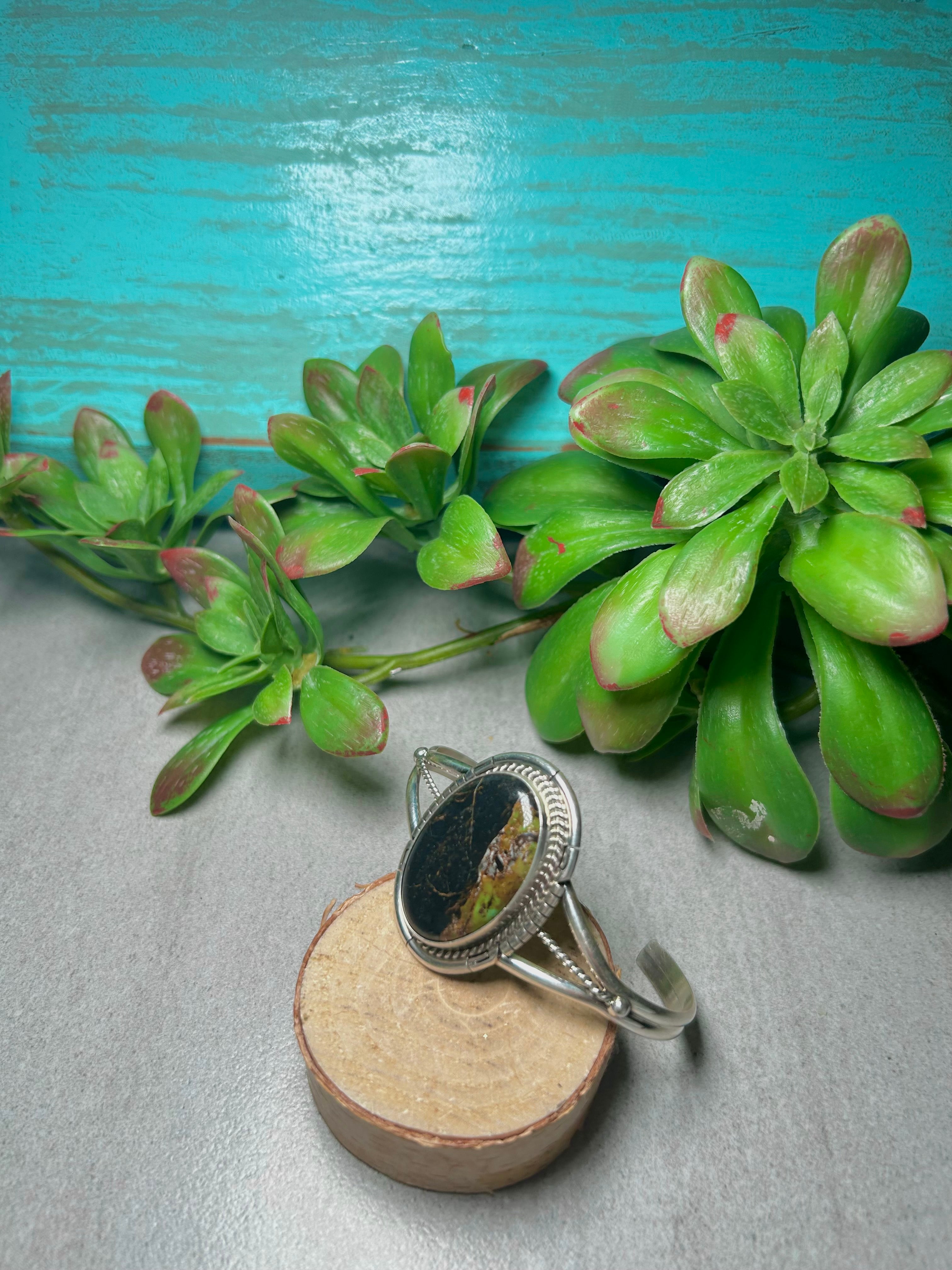 Dave Skeets Black Jack Turquoise & Sterling Silver Cuff Bracelet. It measures 1 1/2 inches wide with an inside circumference of 5 1/2 inches and a gap of 1 inch. Signed by the artist and stamped sterling silver.