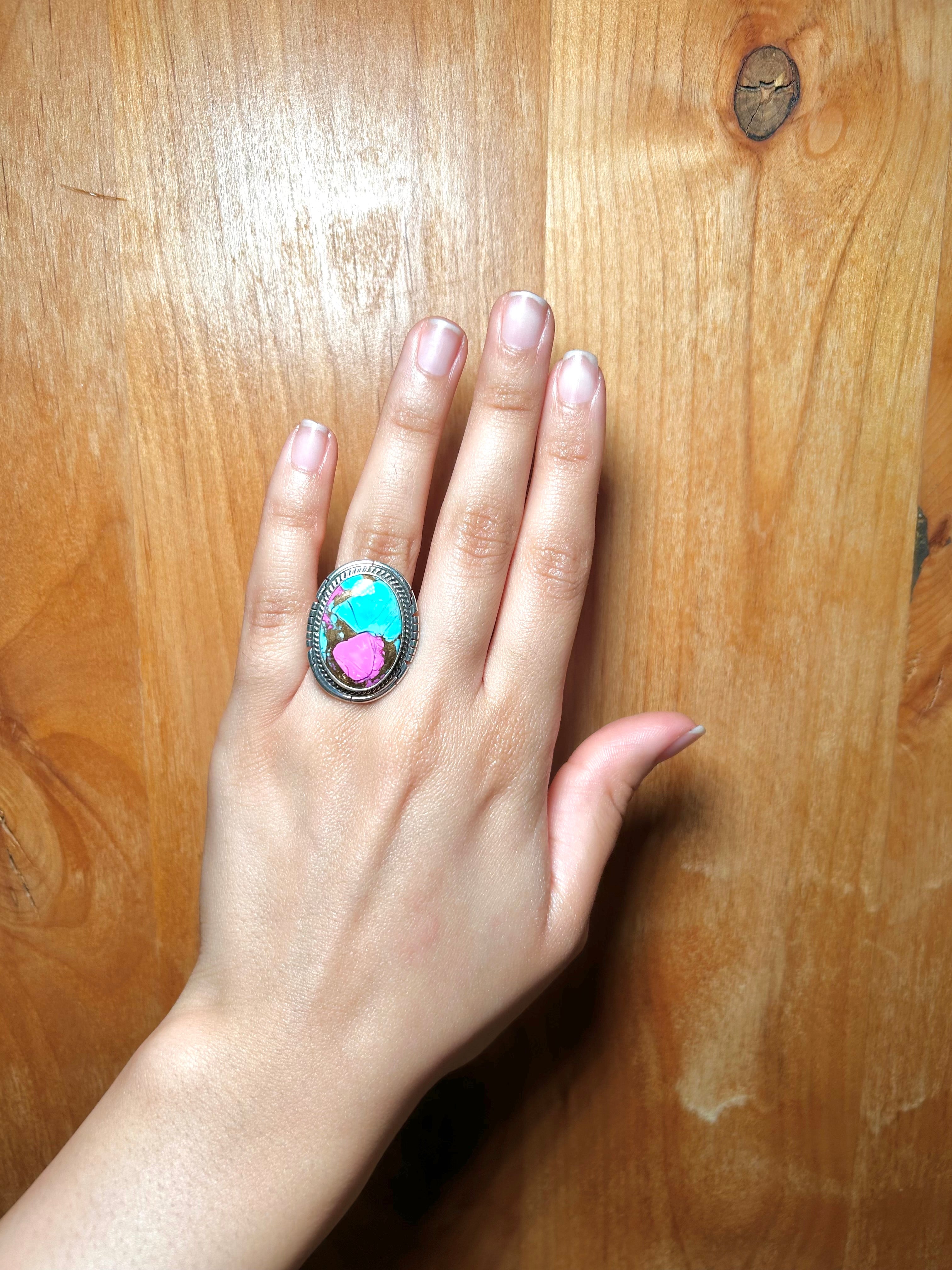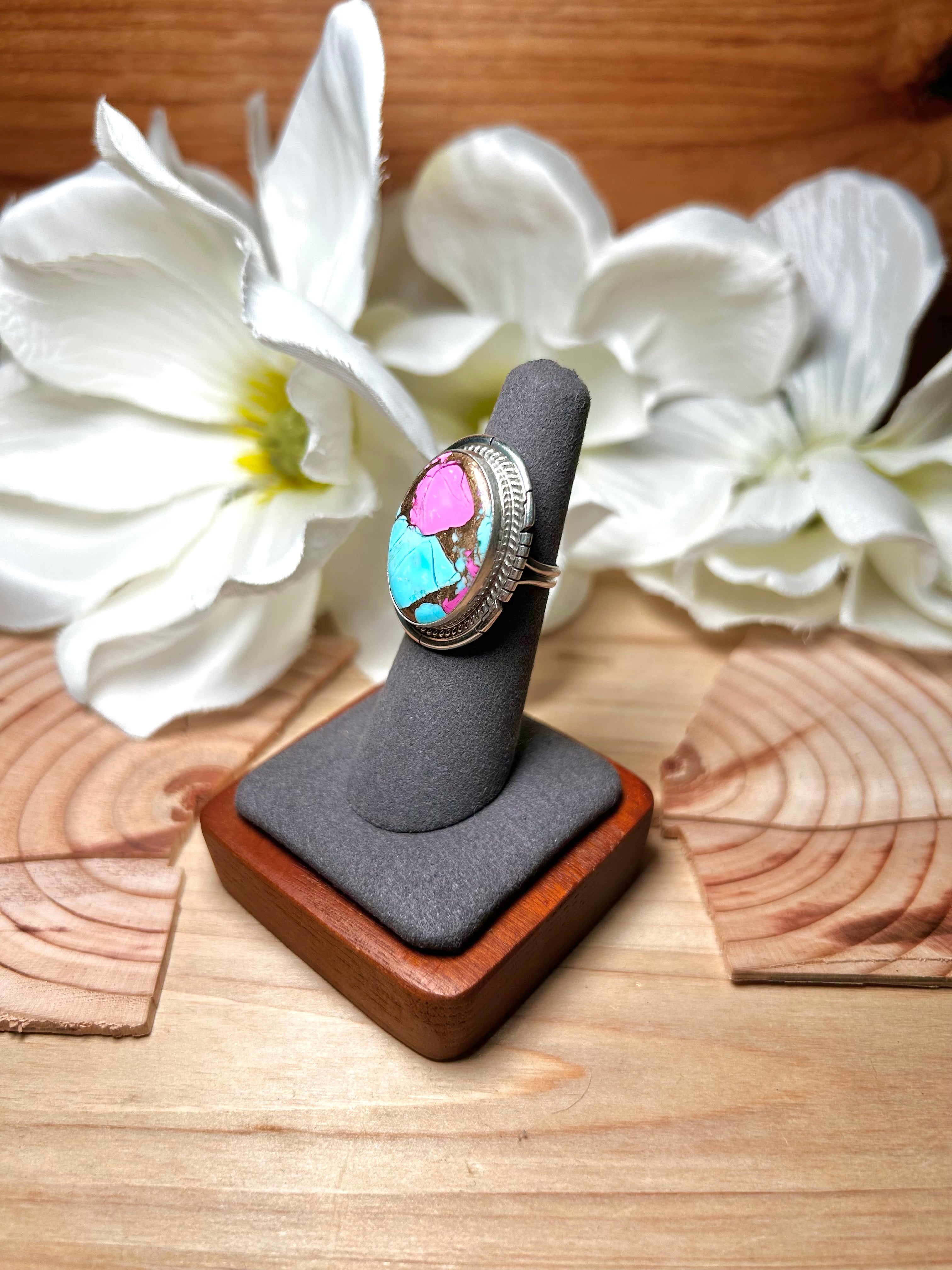 Dave Skeets Cotton Candy Dahlia & Sterling Silver Ring Size 5.75