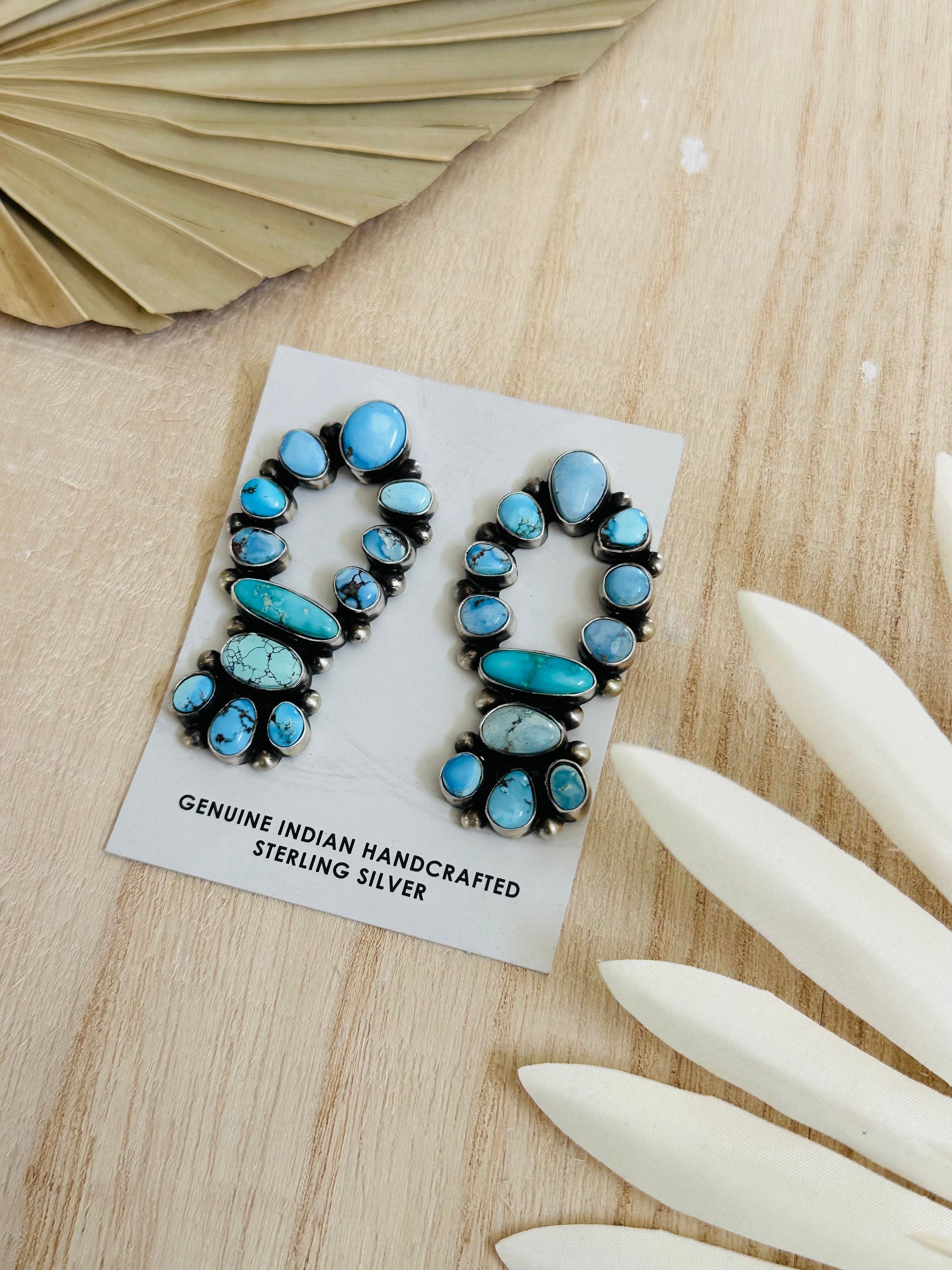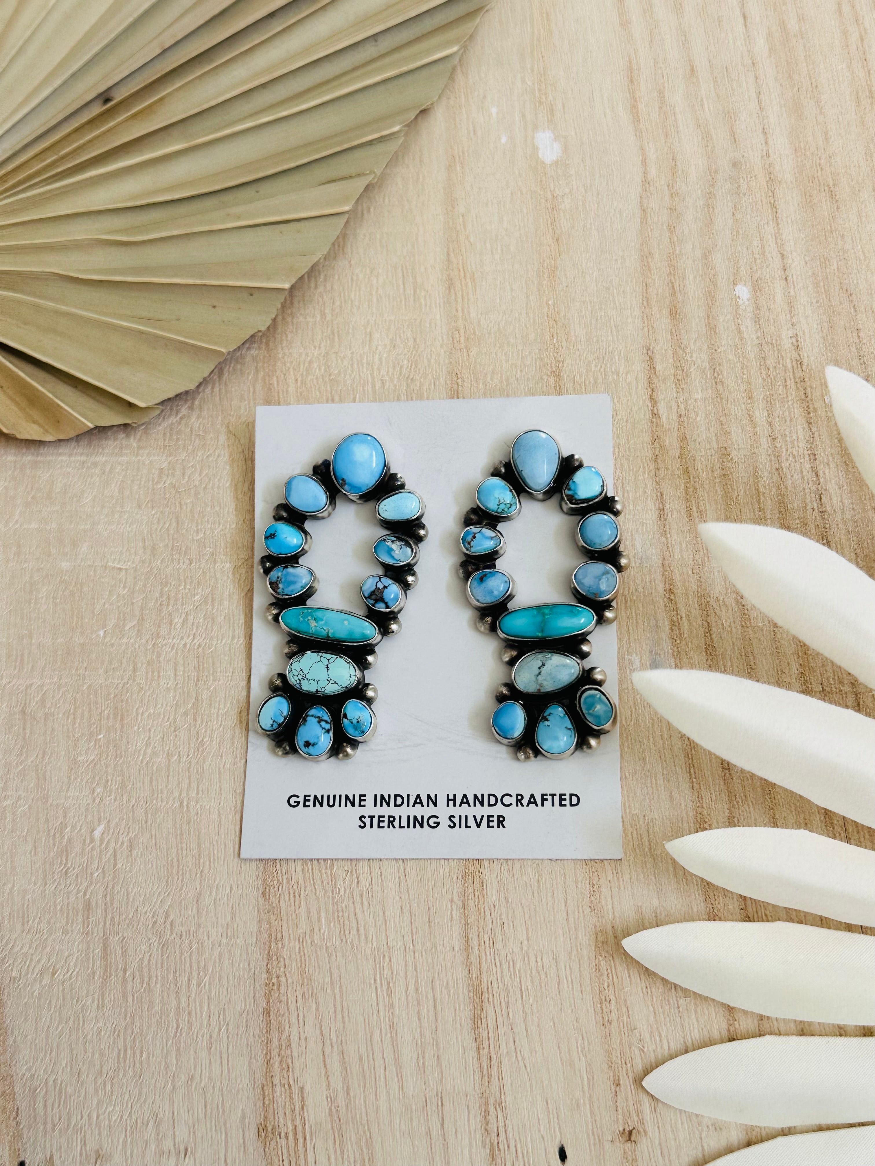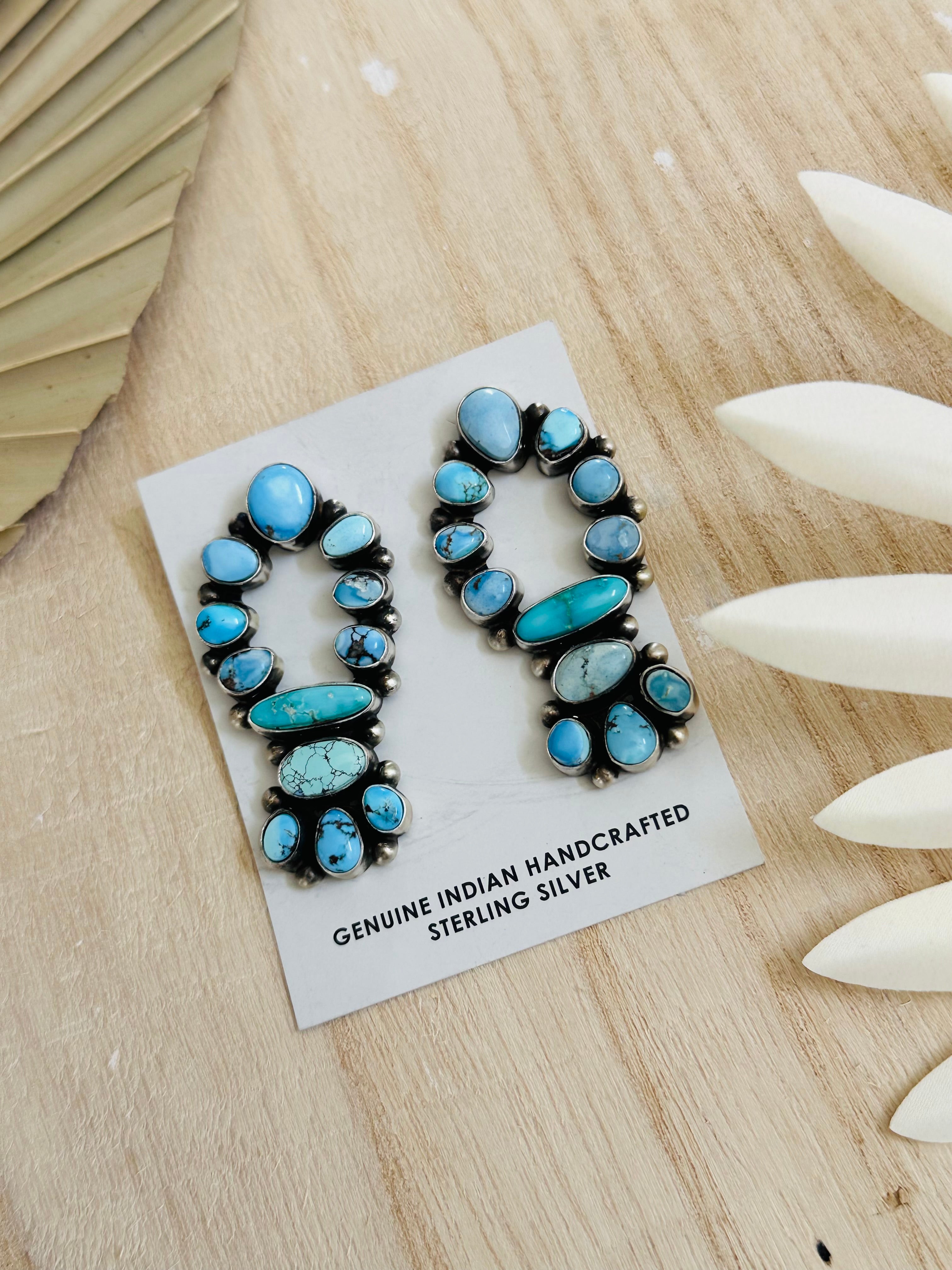 Dave Skeets Golden Hills Turquoise & Sterling Silver Post Dangle Earrings