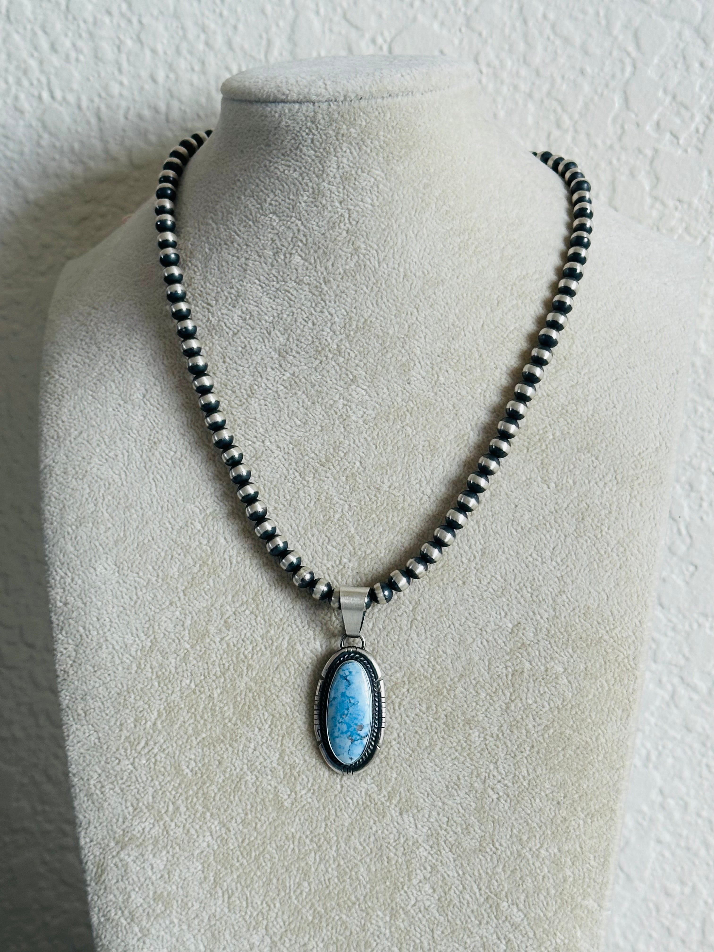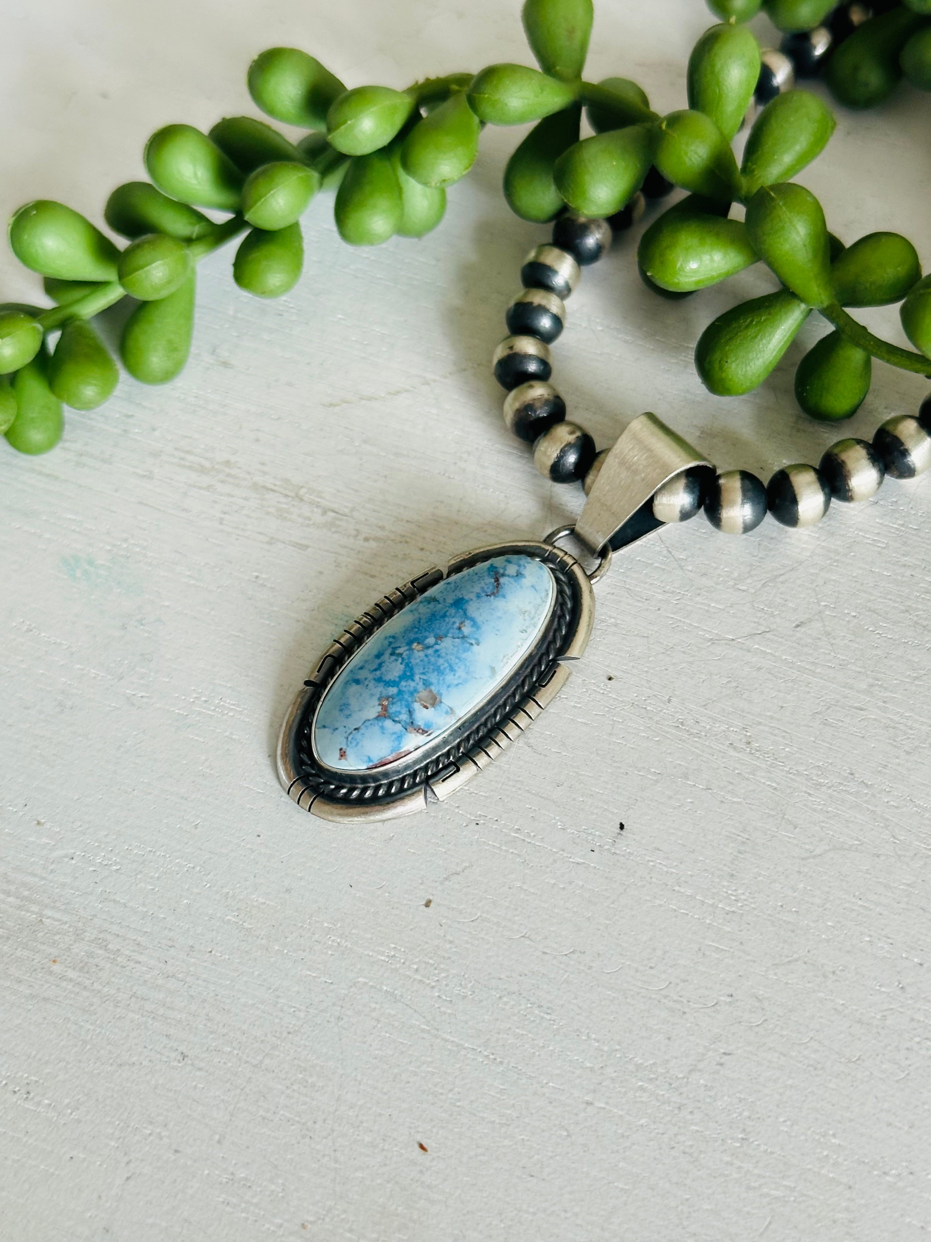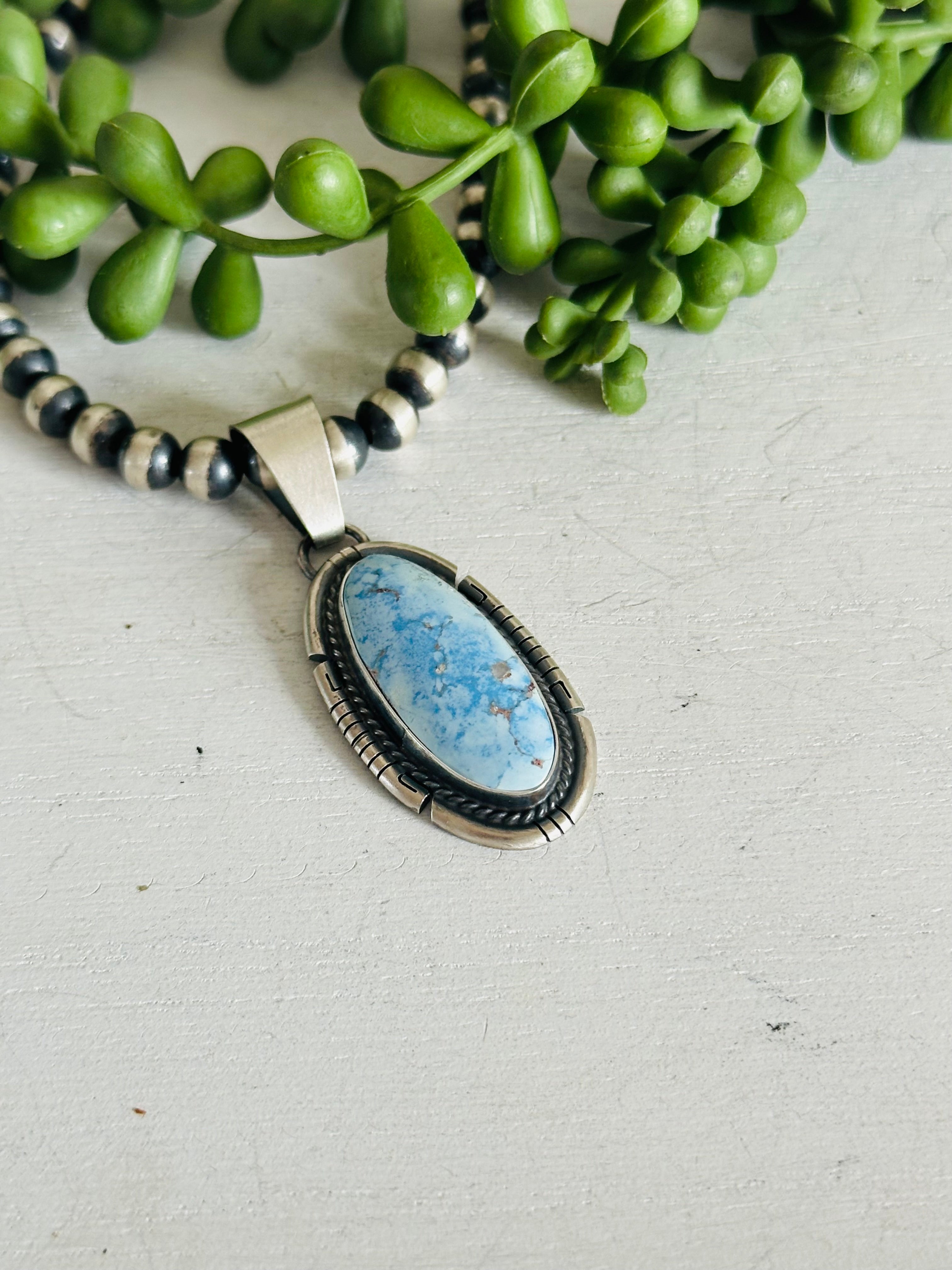 Dave Skeets Golden Hills Turquoise & Sterling Silver Pendant. It measures 2 inches long and 3/4 of an inch wide. Pendant Only!! Signed by the artist and stamped sterling silver.