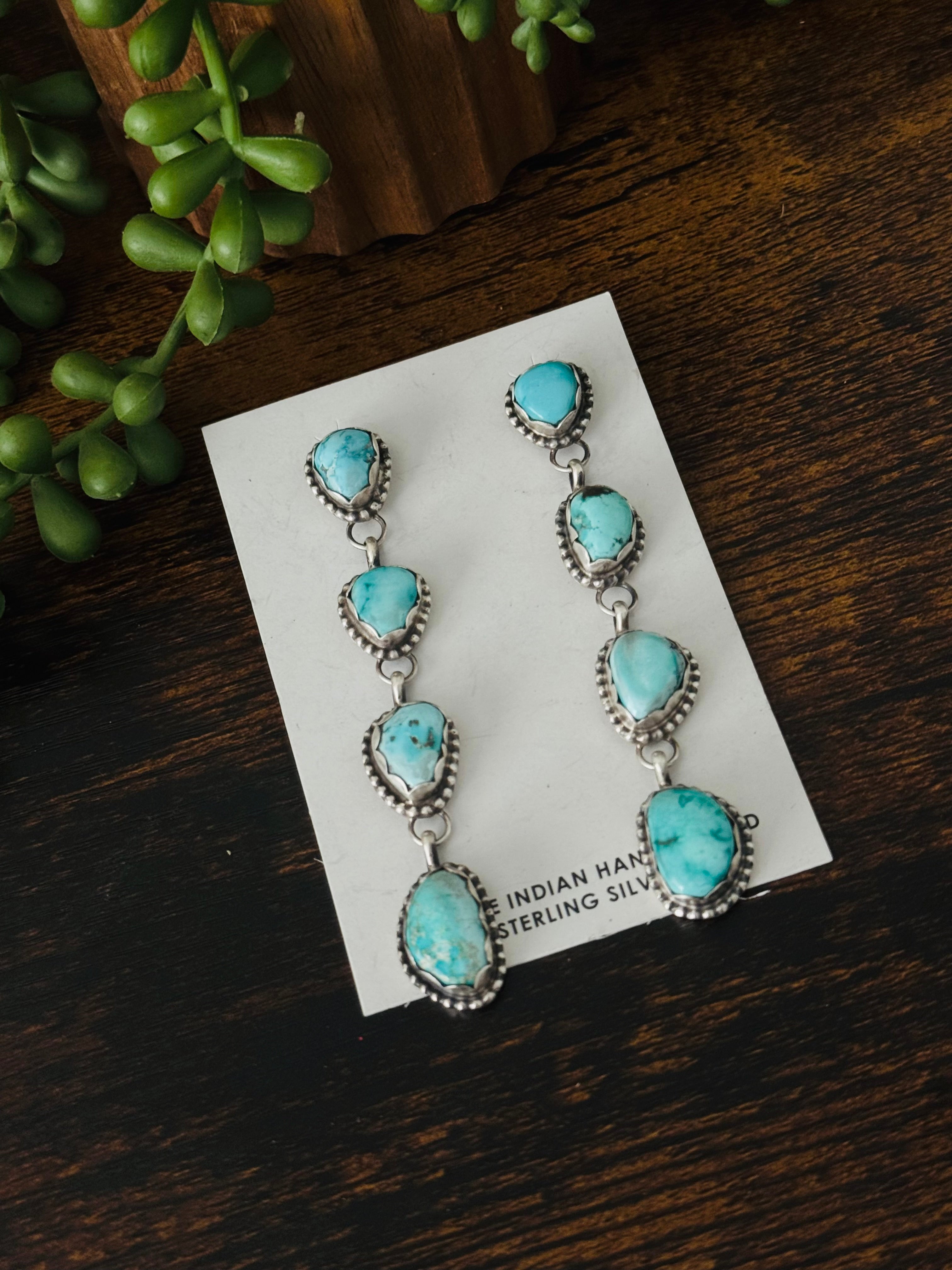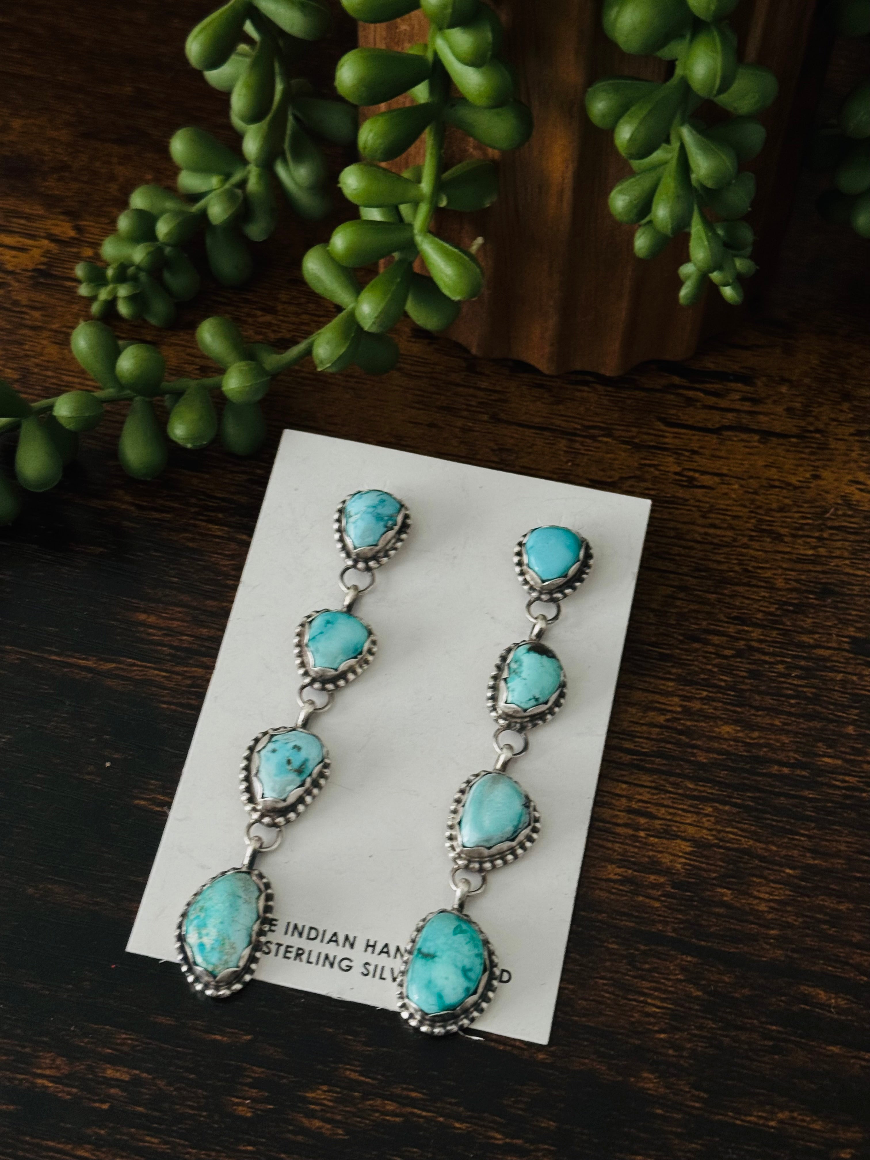 Dave Skeets Royston Turquoise & Sterling Silver Post Dangle Earrings