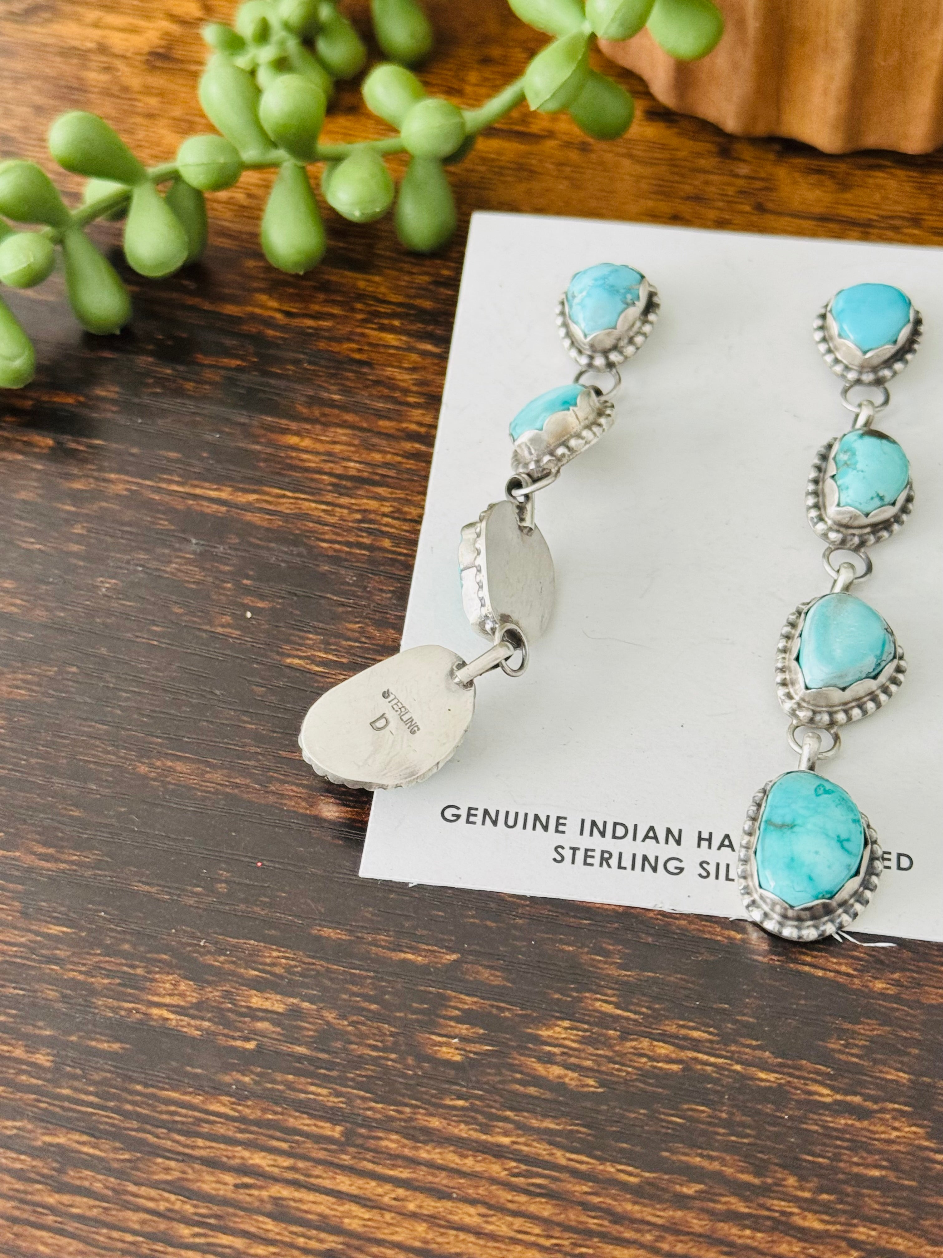 Beautiful lightweight Dangle Earrings. Dave Skeets Royston Turquoise & Sterling Silver Post Dangle Earrings. It measures 3 1/8 inches long and 1/2 of an inch wide. Stamped sterling silver and signed.