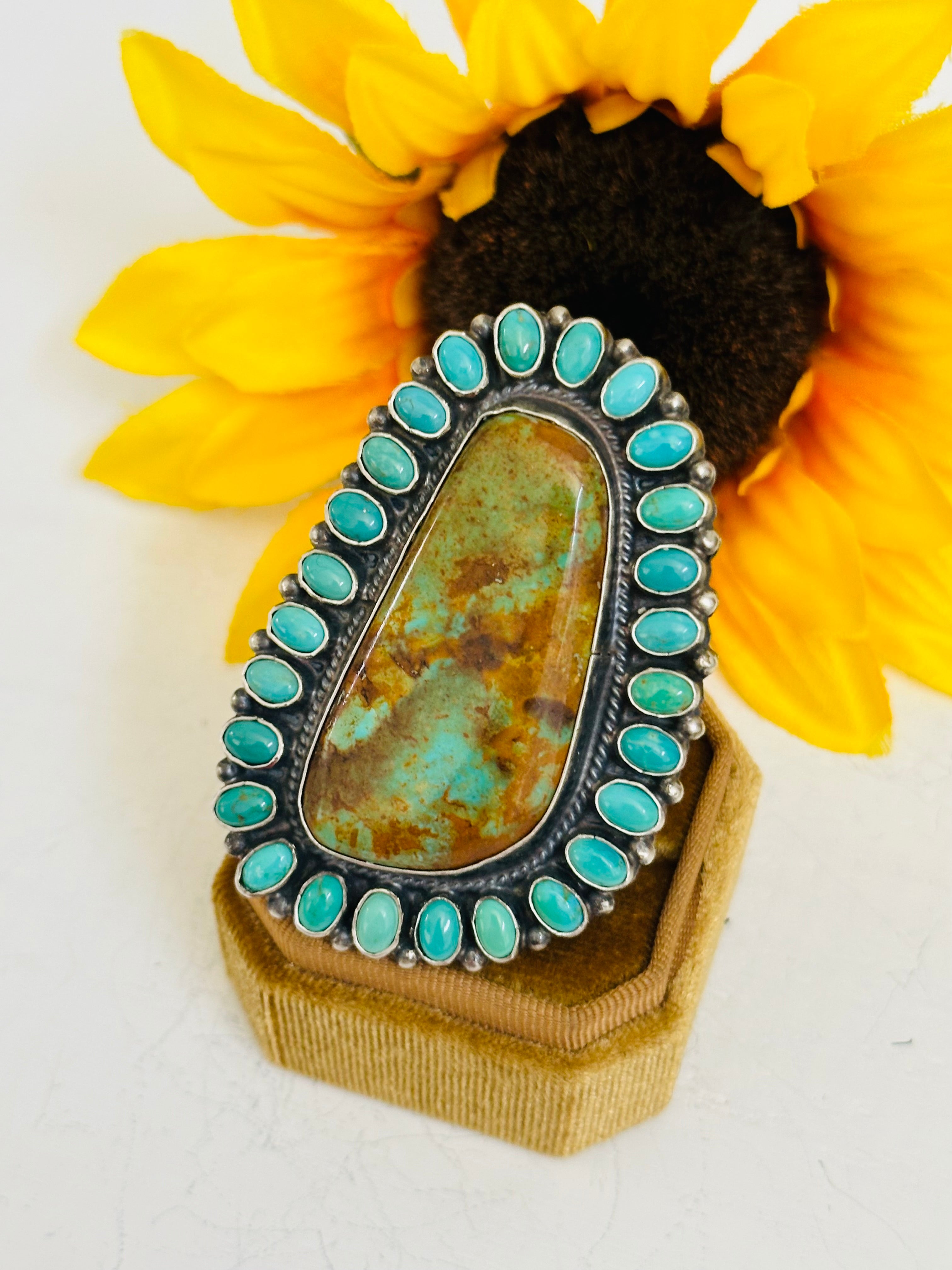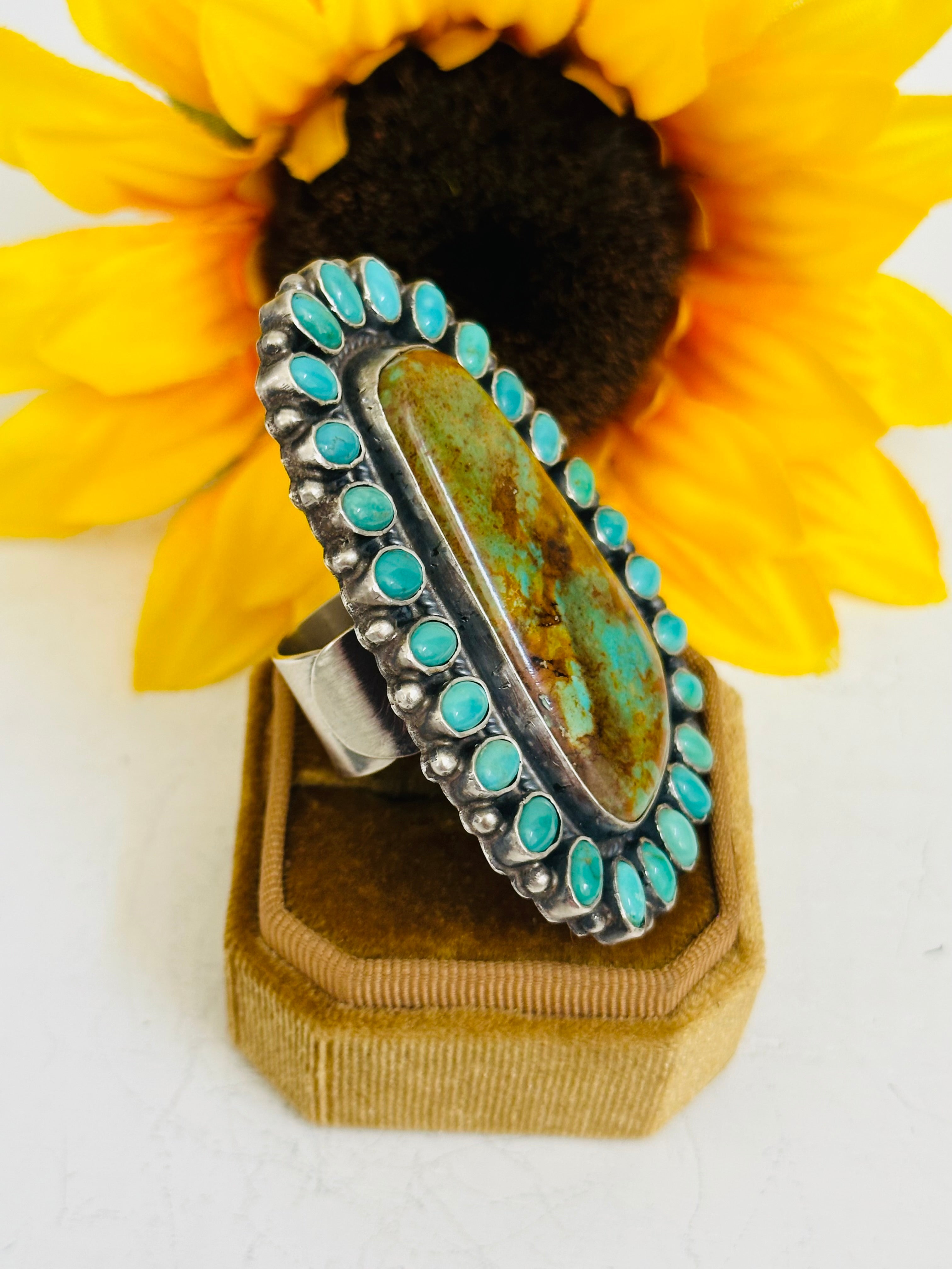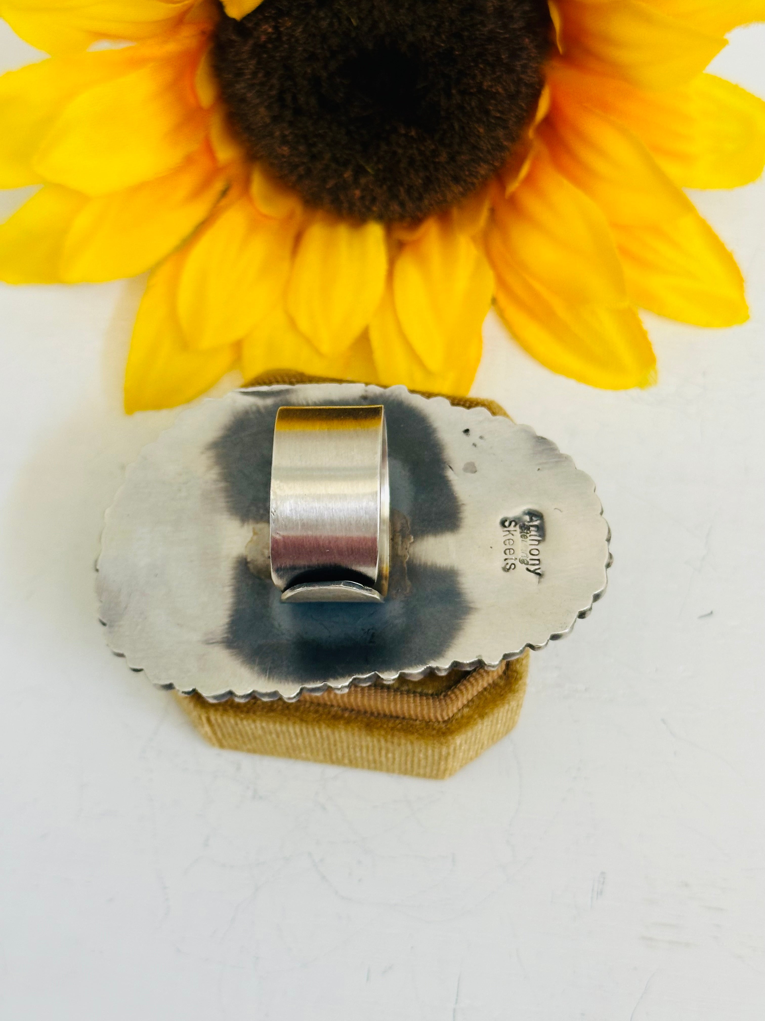 Beautiful ring. Anthony Skeets Royston & Kingman Turquoise & Sterling Silver Adjustable Ring. It measure 2 1/2 inches long and 1 3/4 inches wide.