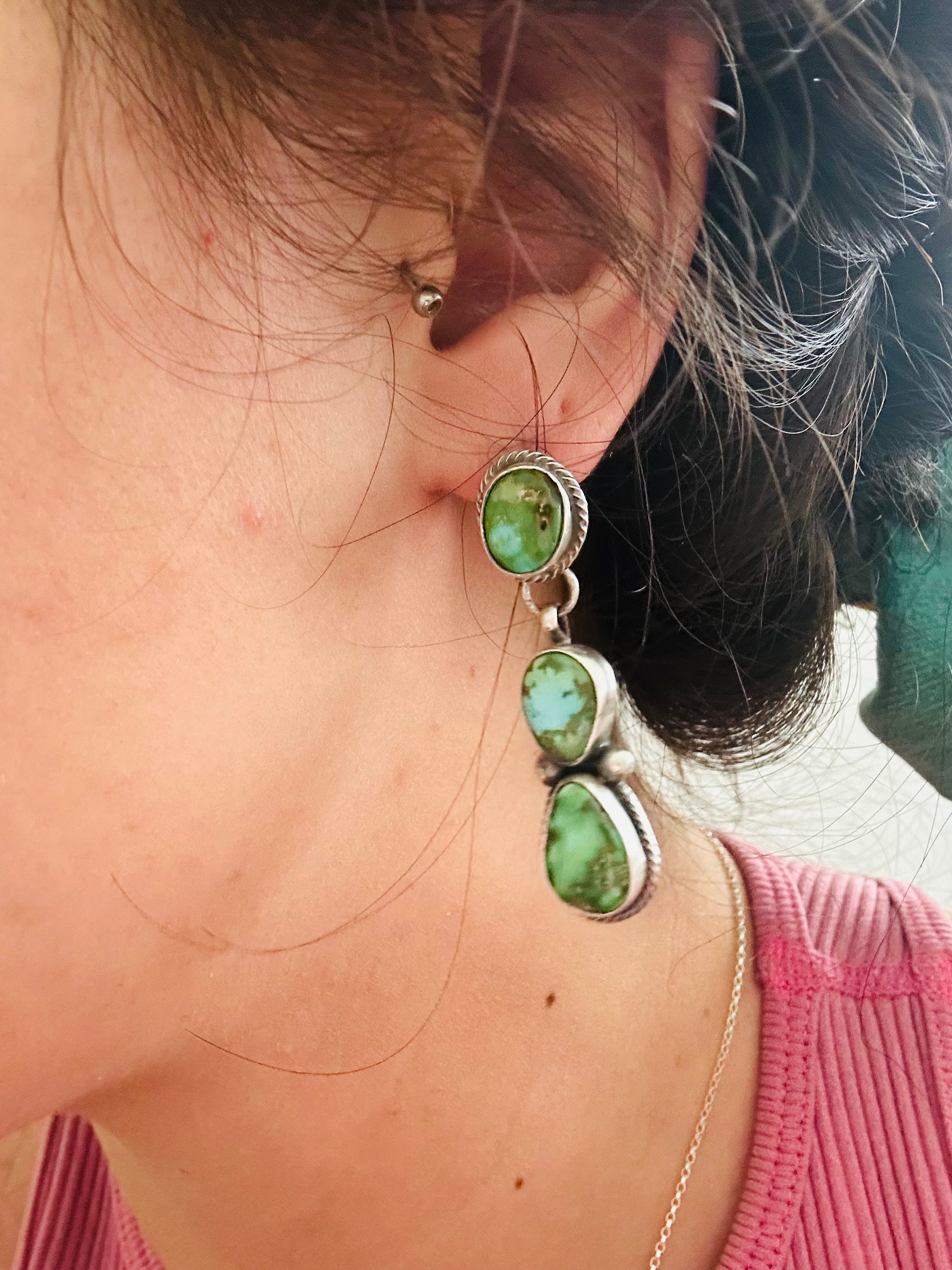 Dave Skeets Sonoran Mountain Turquoise & Sterling Silver Post Dangle Earrings