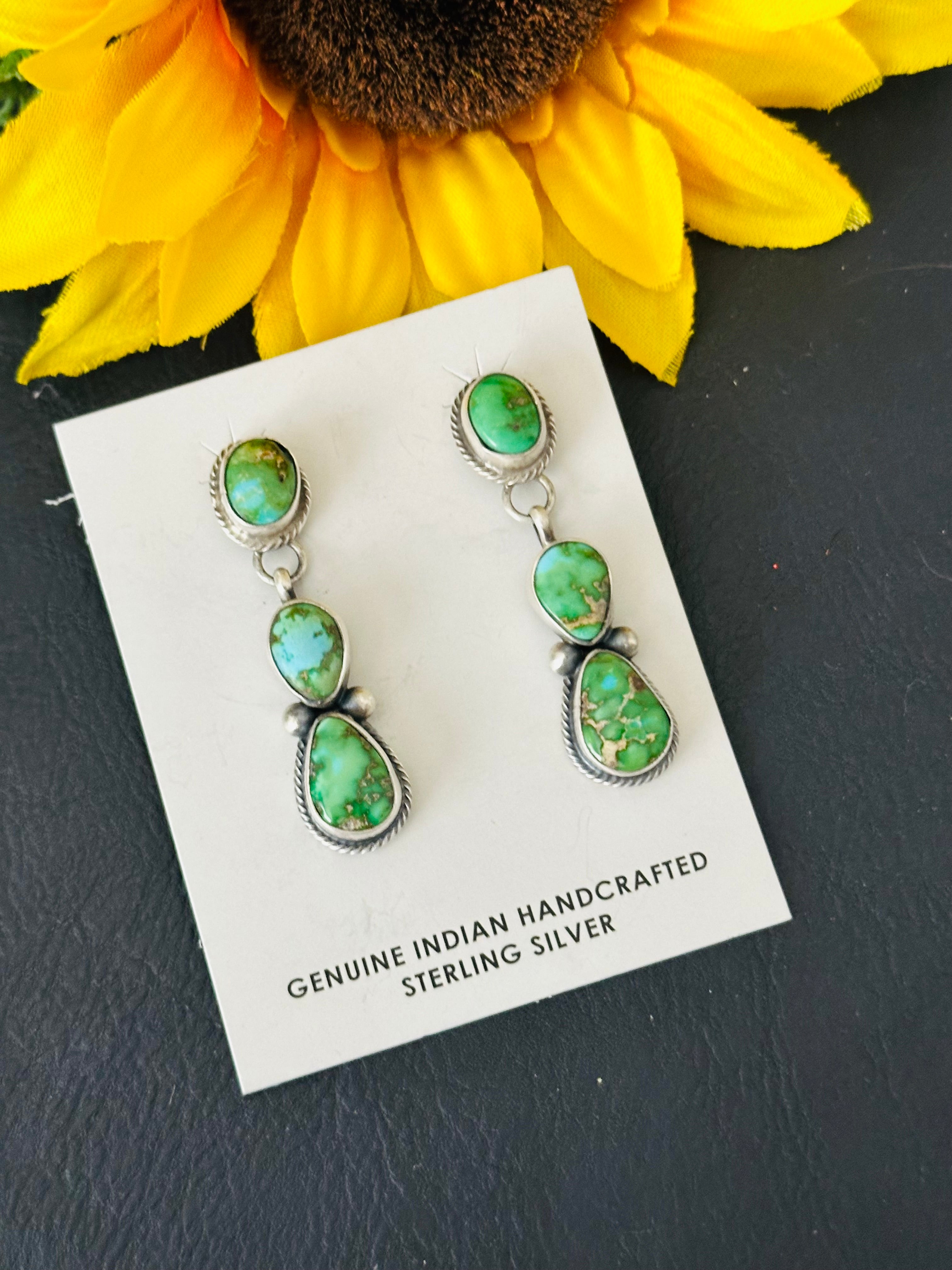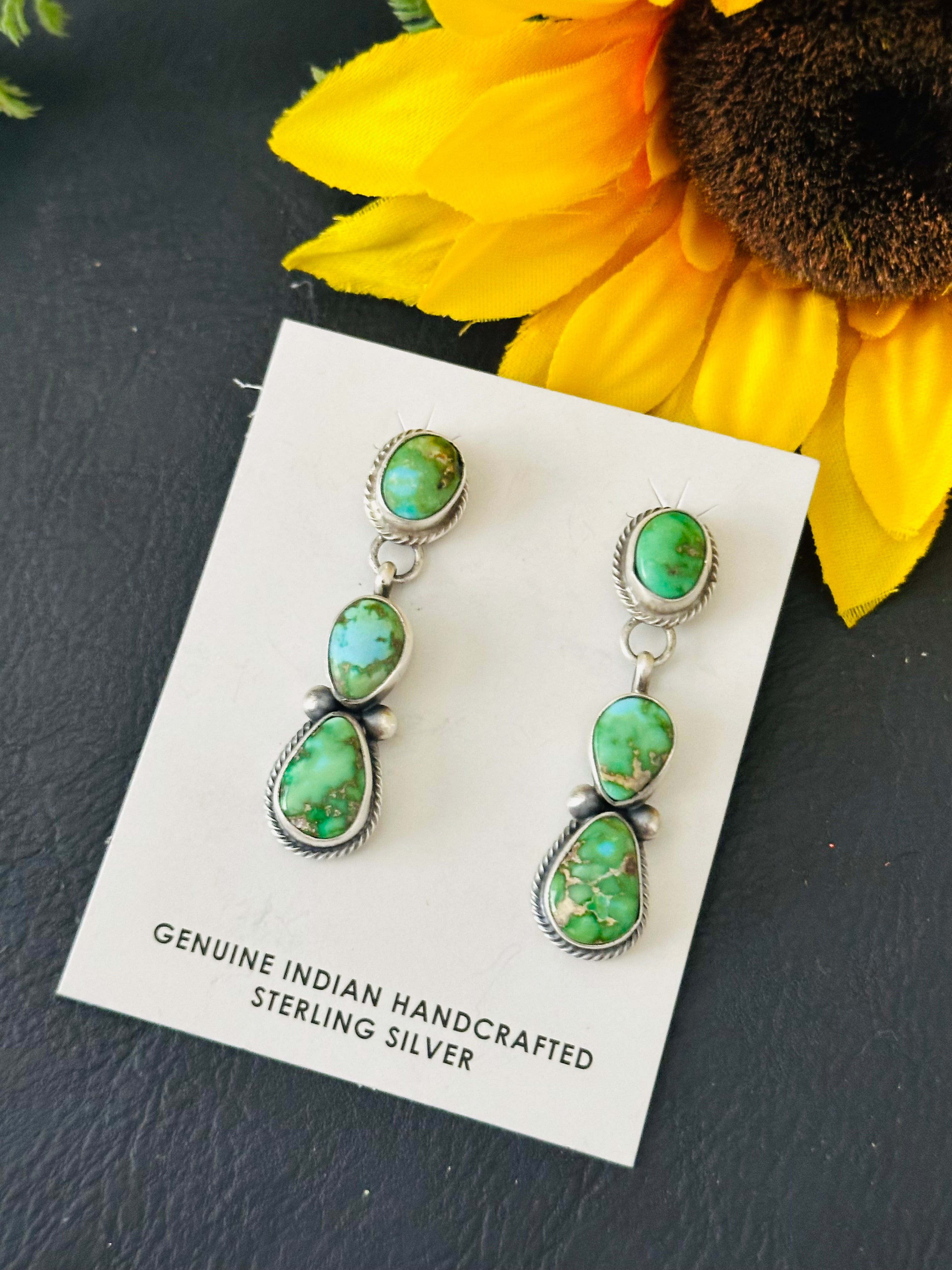 Beautiful lightweight Dangle Earrings. Dave Skeets Sonoran Mountain Turquoise & Sterling Silver Post Dangle Earrings. It measures 1 7/8 inches long and 1/2 of an inch wide. Stamped sterling silver and signed.
