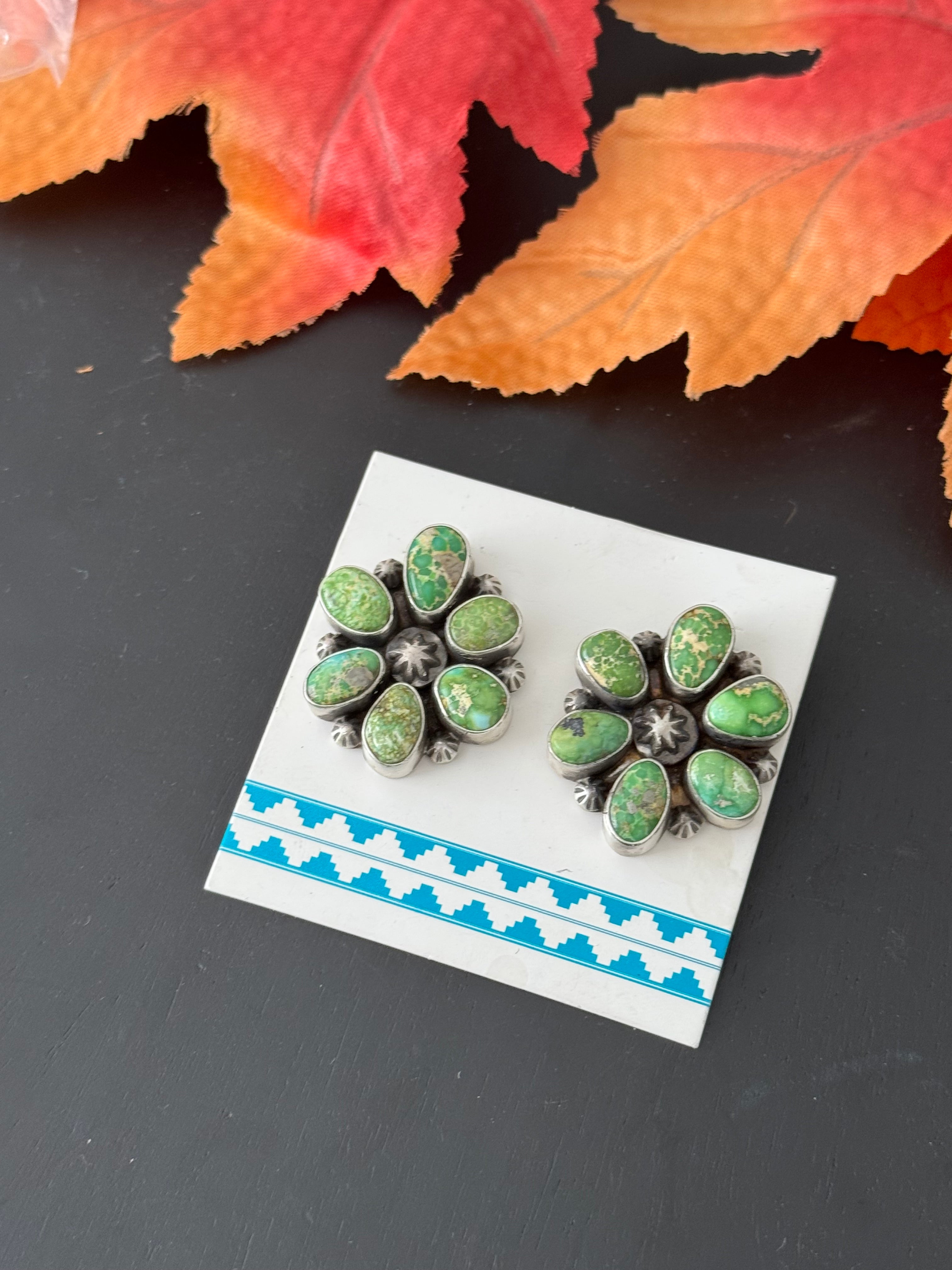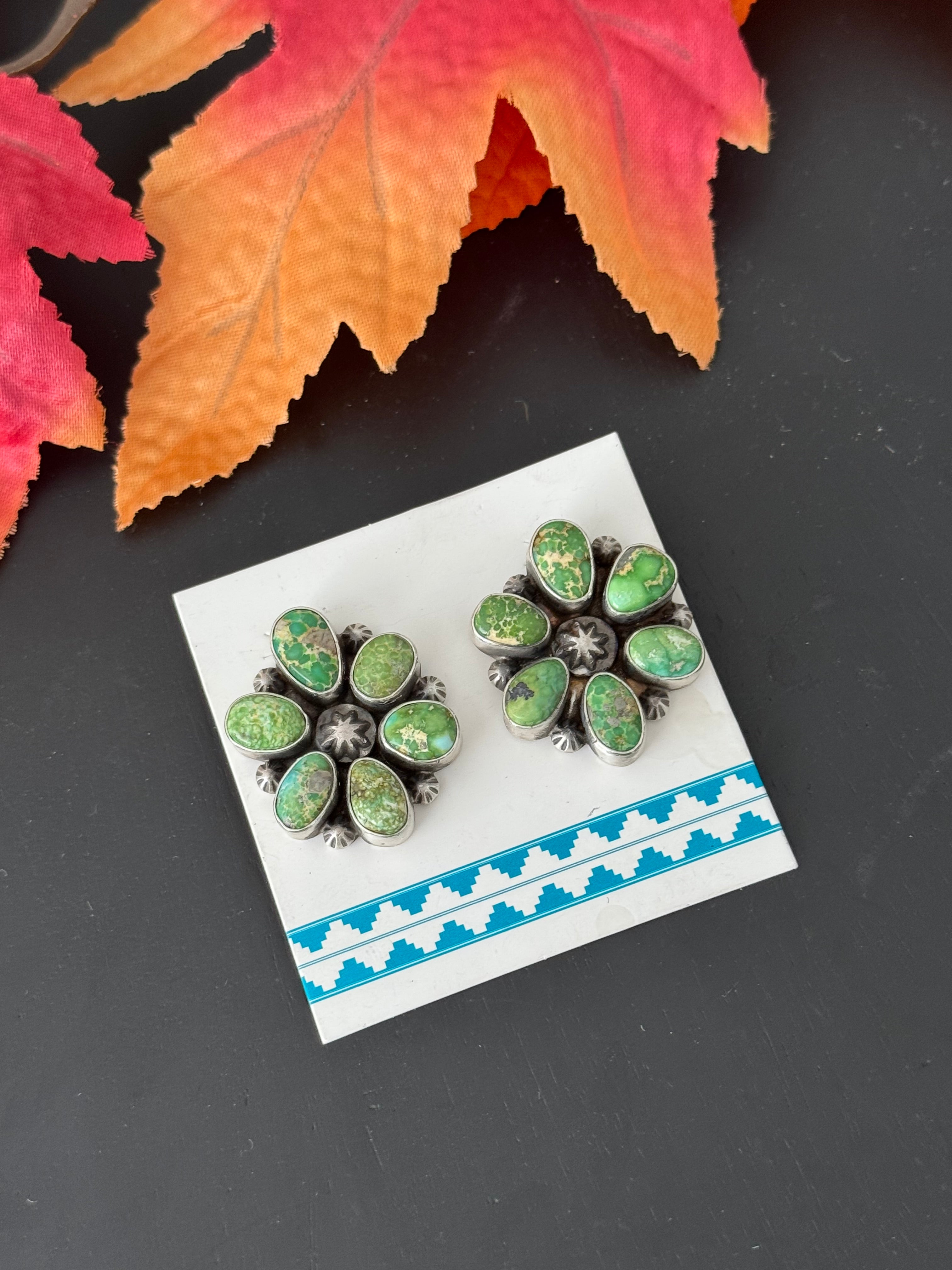 Dave Skeets Sonoran Gold Turquoise & Sterling Silver Post Dangle Earrings