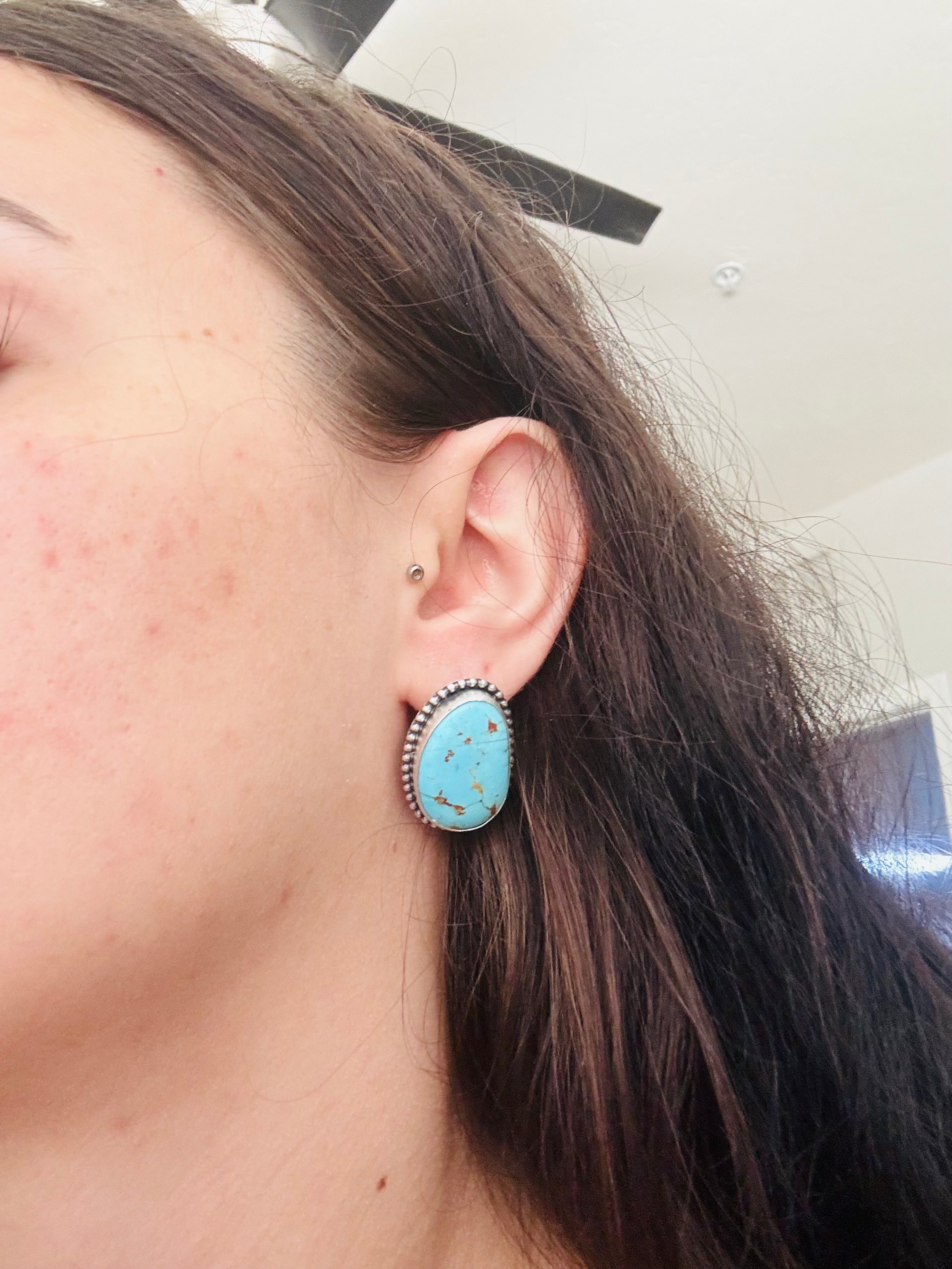 Eli Skeets Kingman Turquoise & Sterling Silver Post Earrings