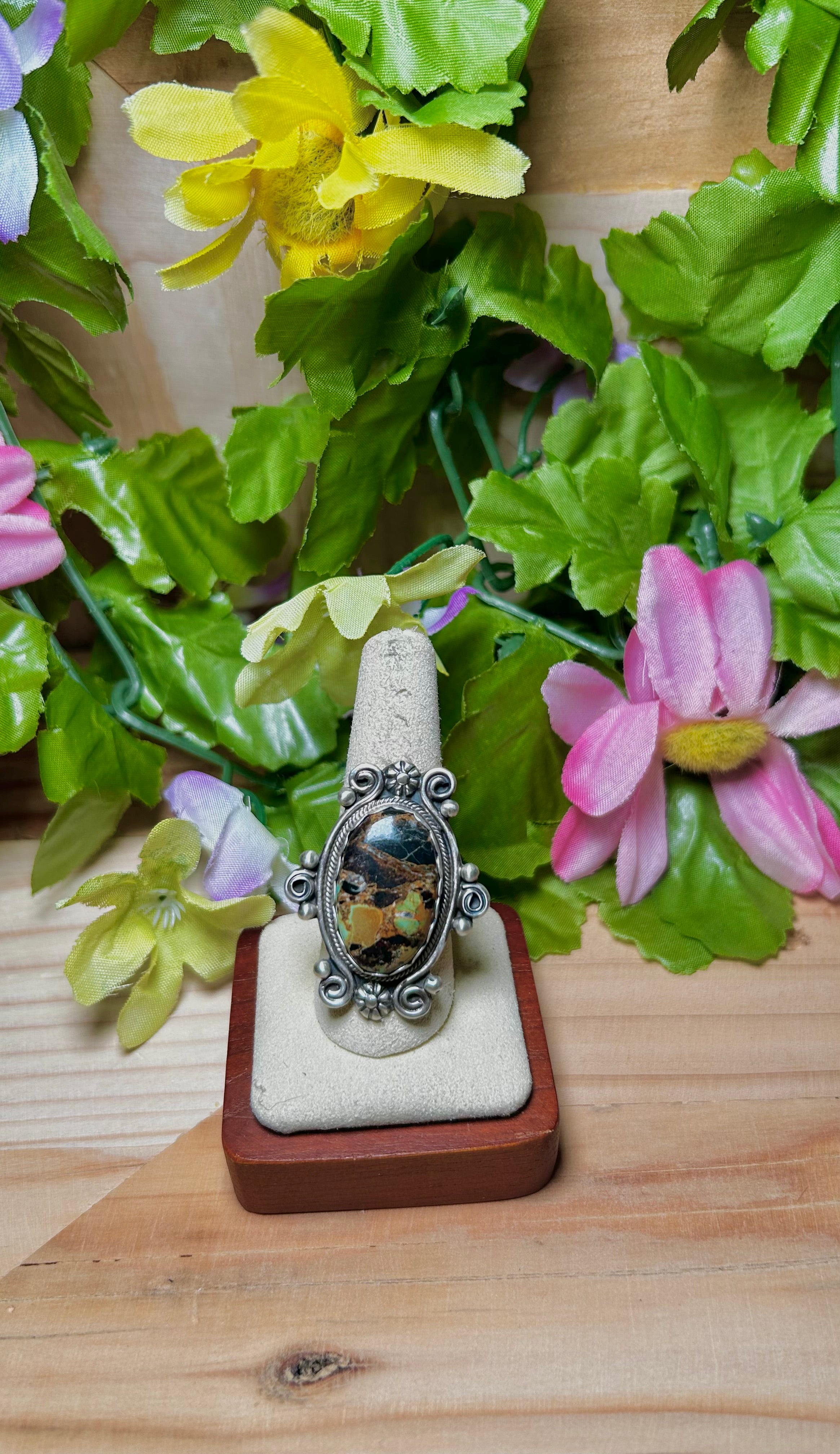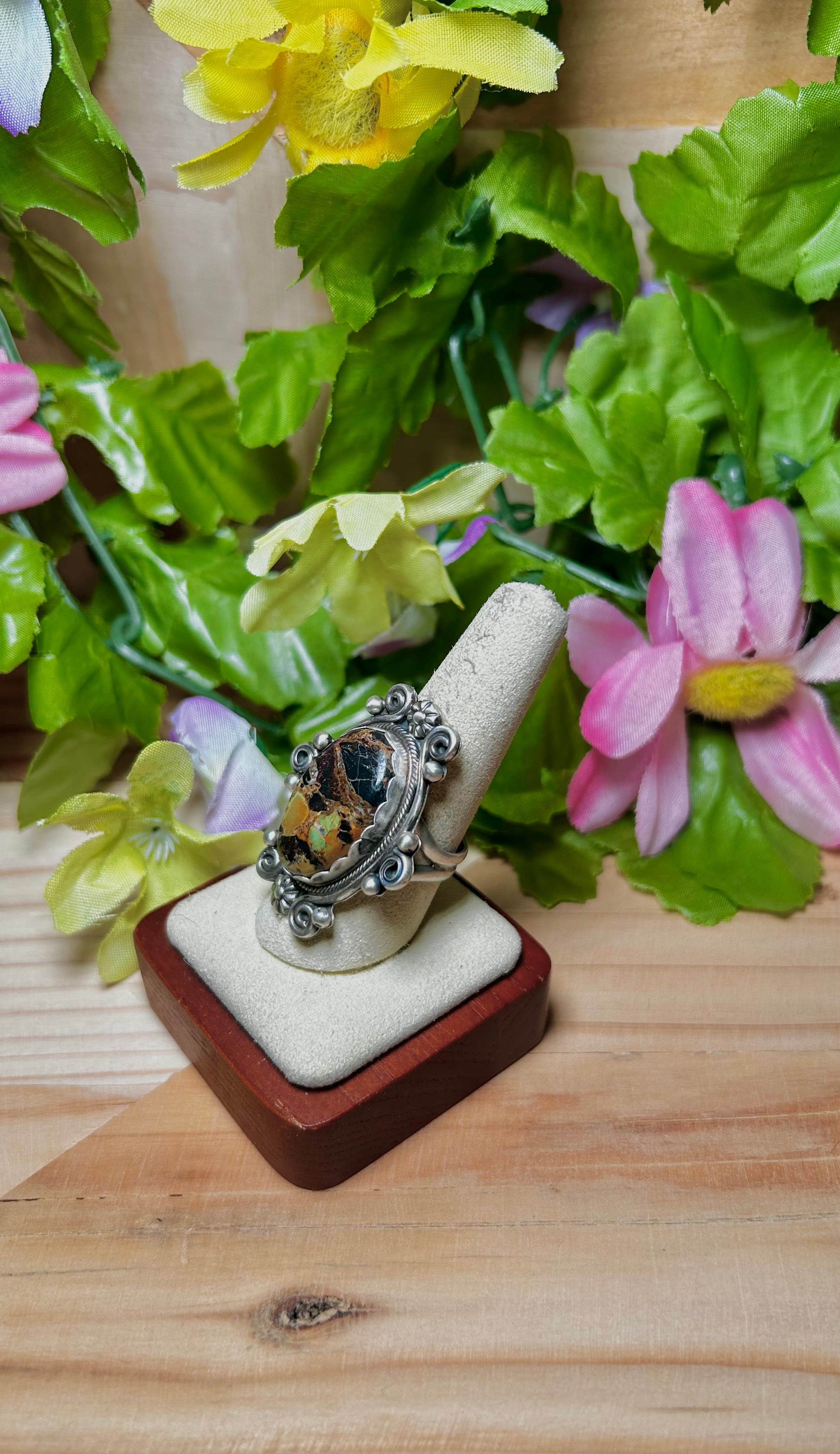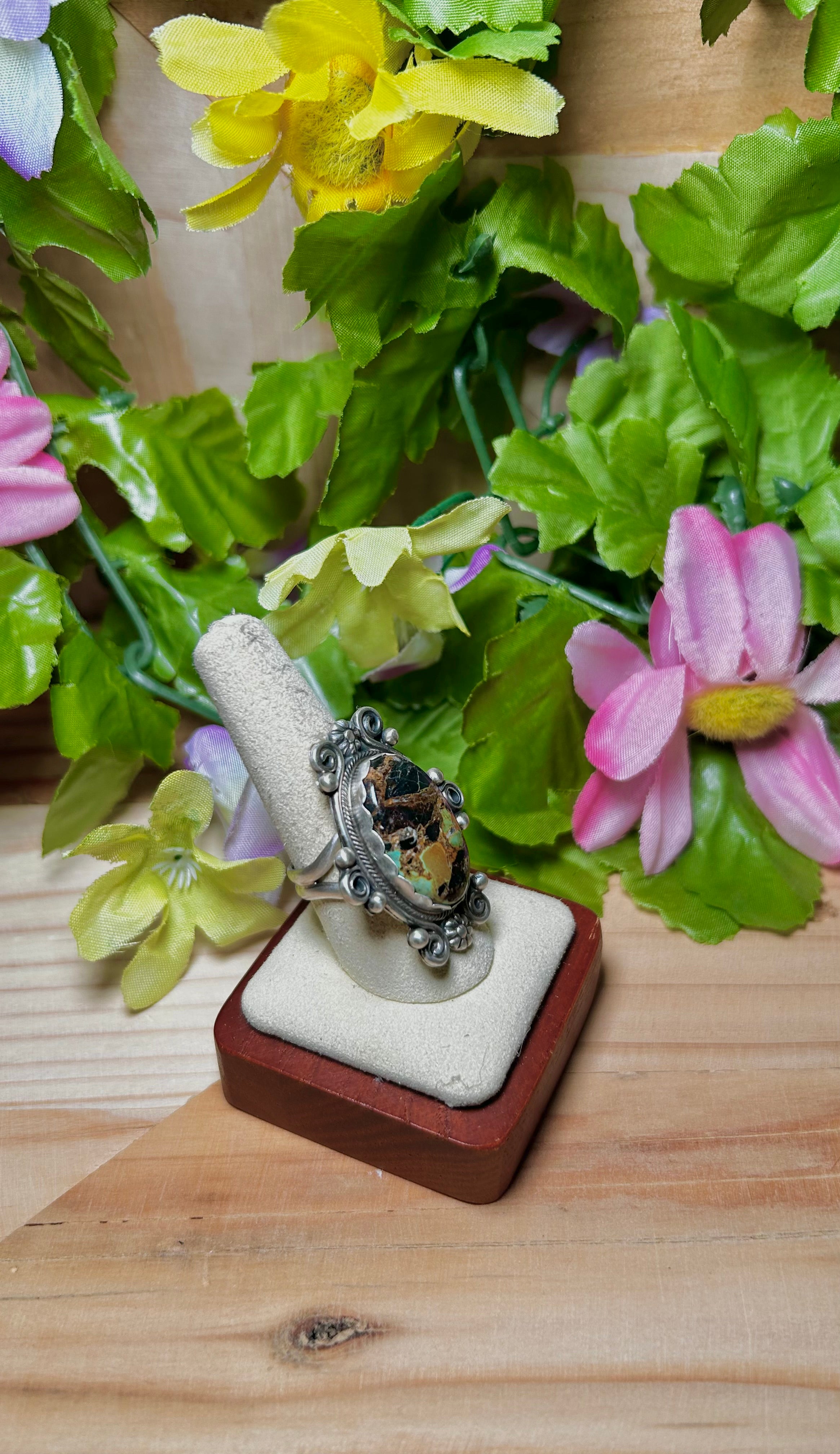 Jamison Hoskie Black Jack Turquoise & Sterling Silver Ring Size 9.25