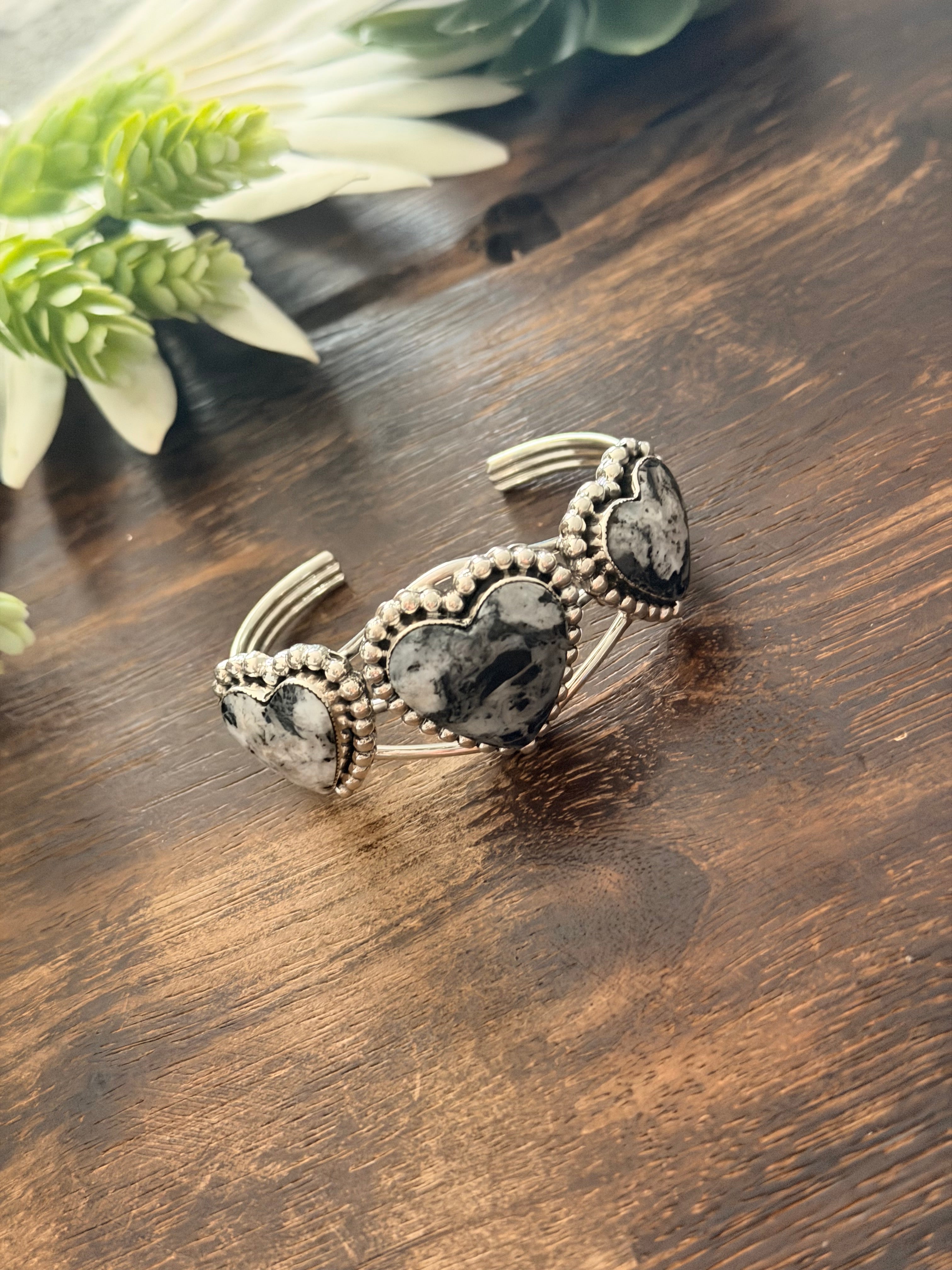 David Lopez White Buffalo & Sterling Silver Heart Cuff Bracelet