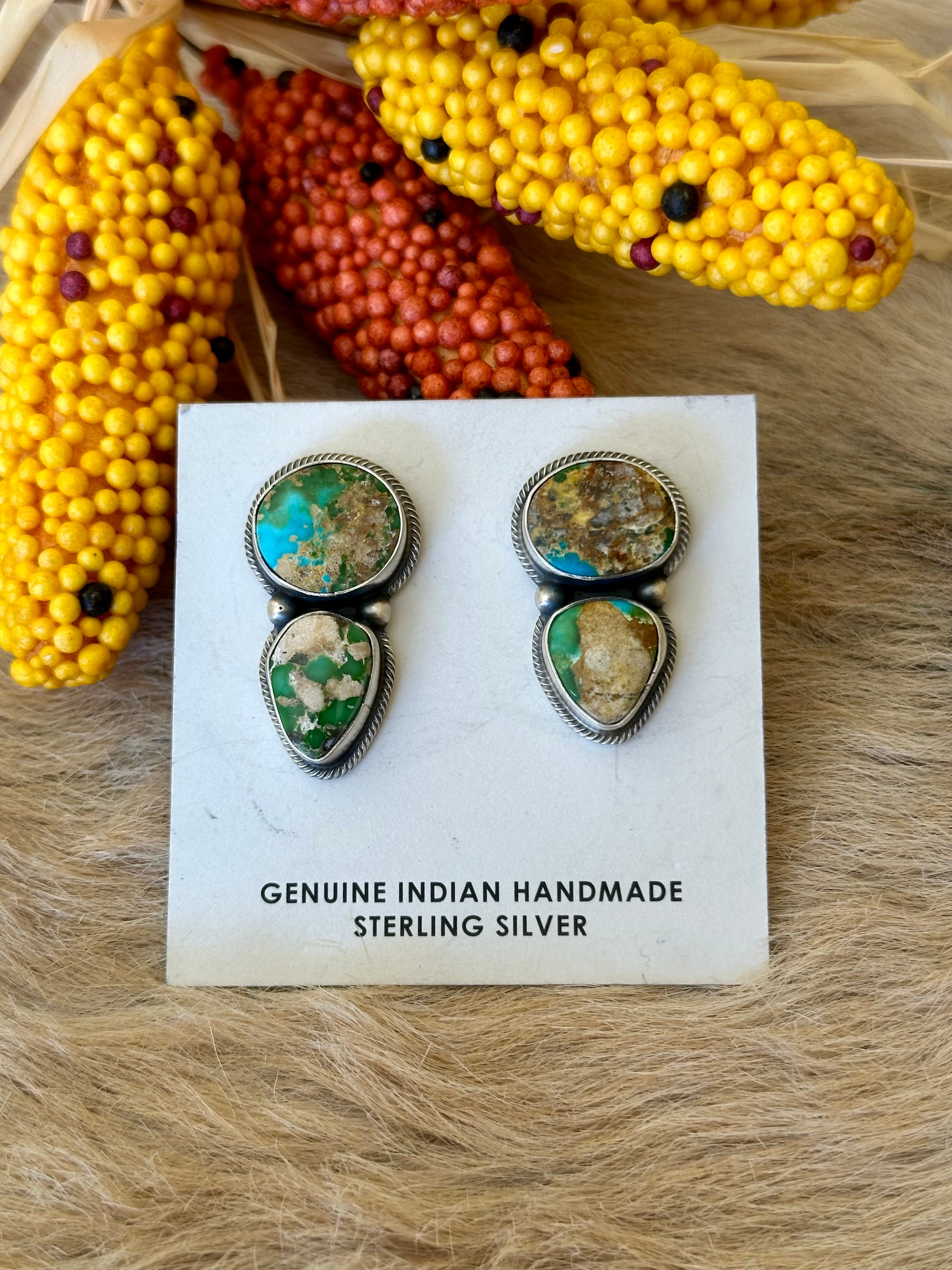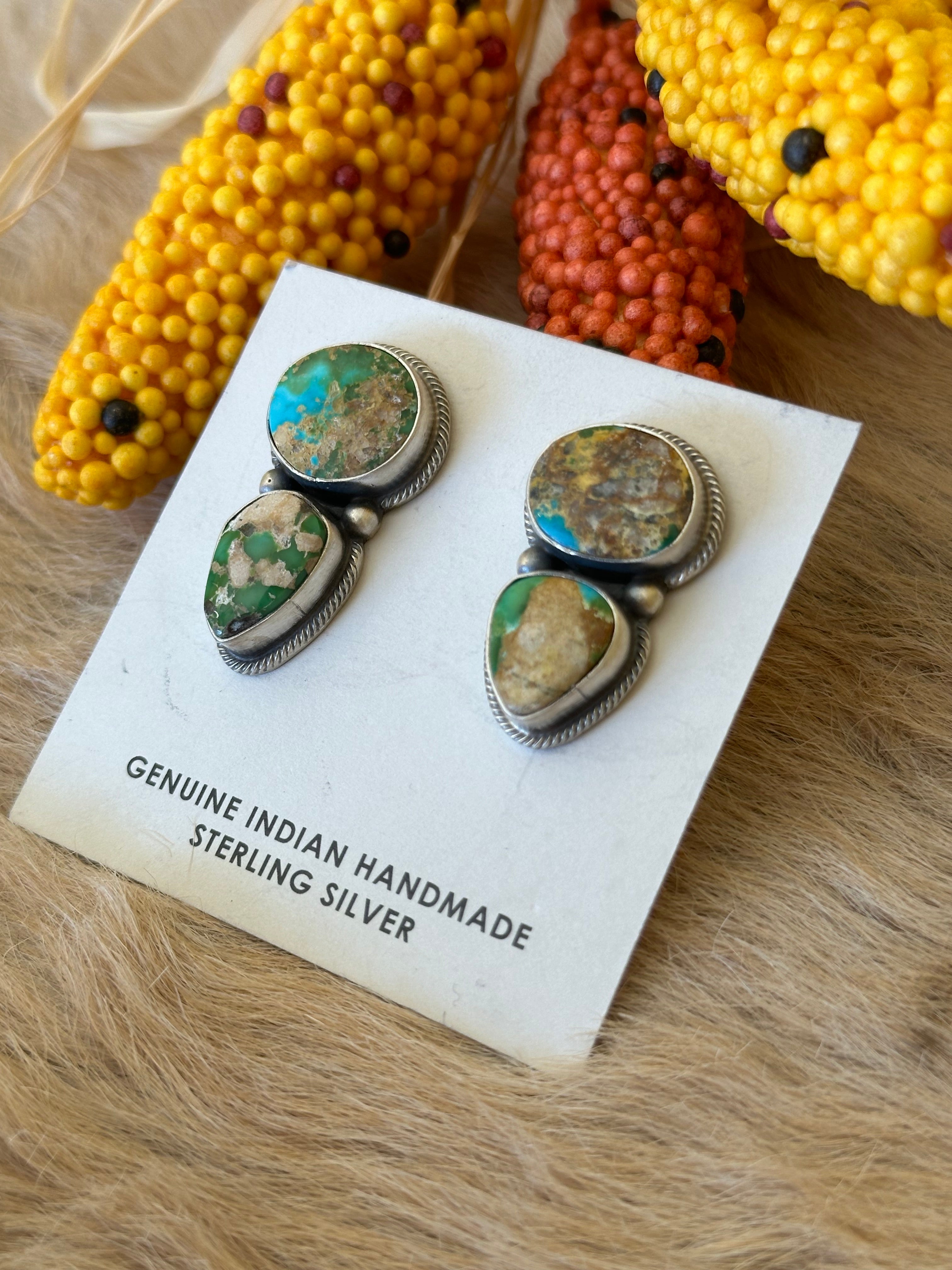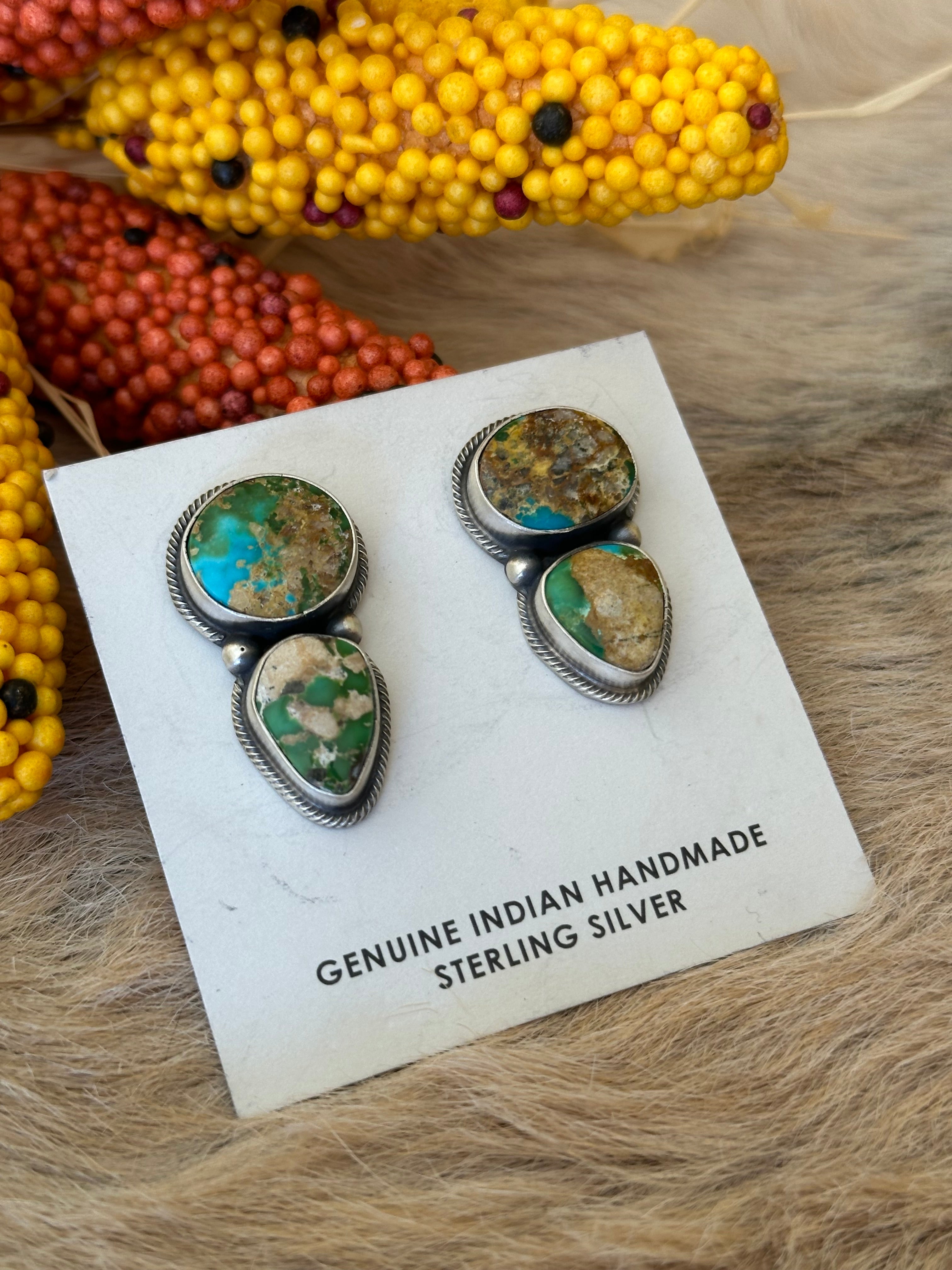 Dave Skeets Sonoran Mountain Turquoise & Sterling Silver Post Dangle Earrings