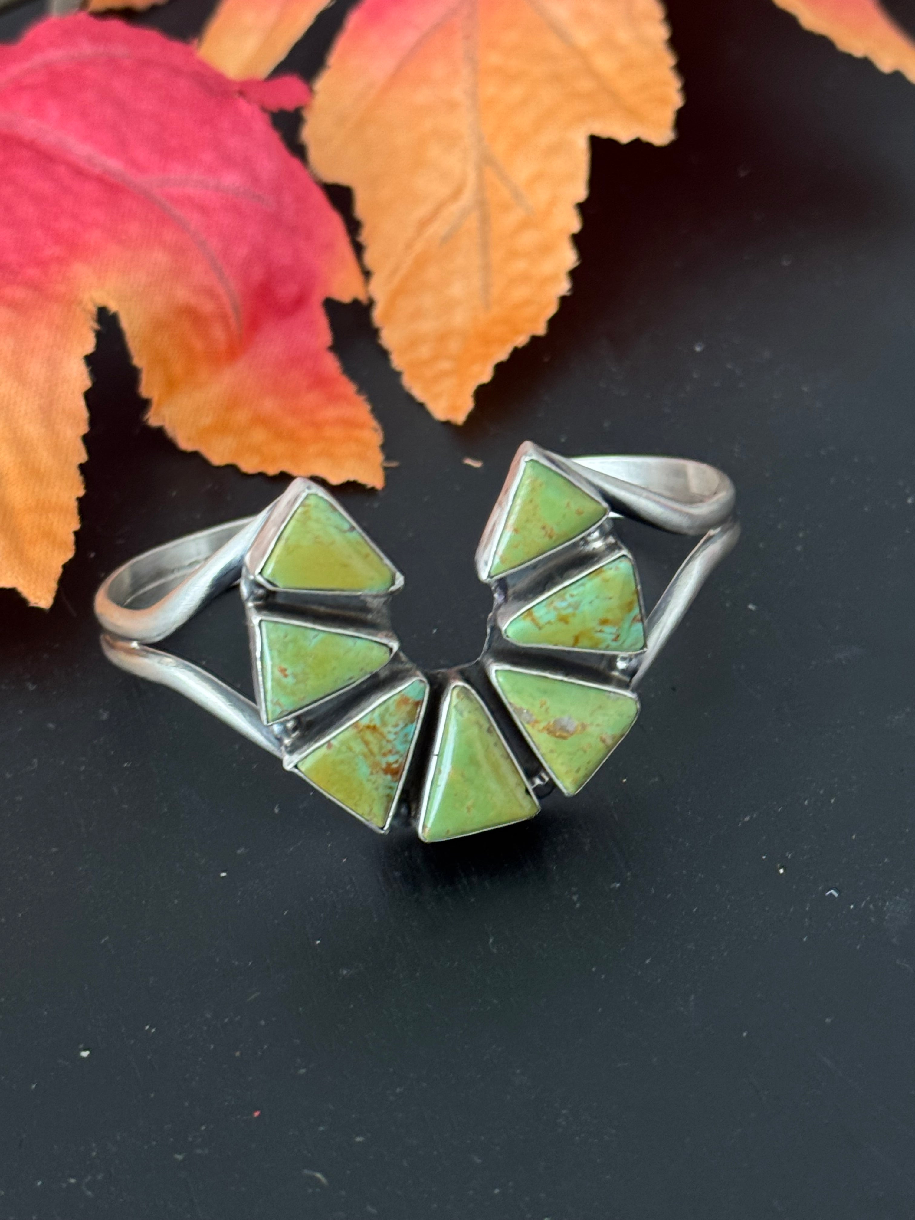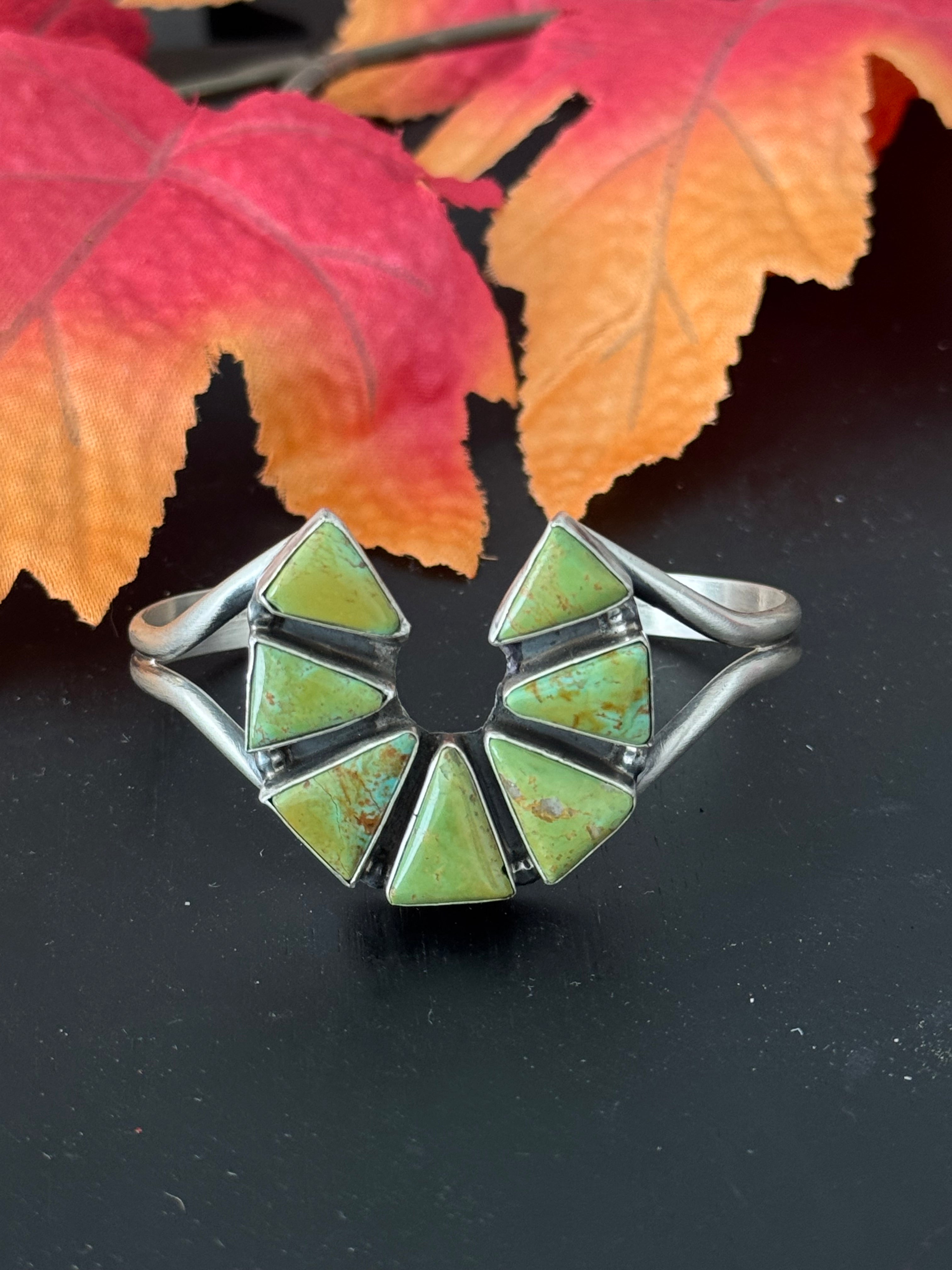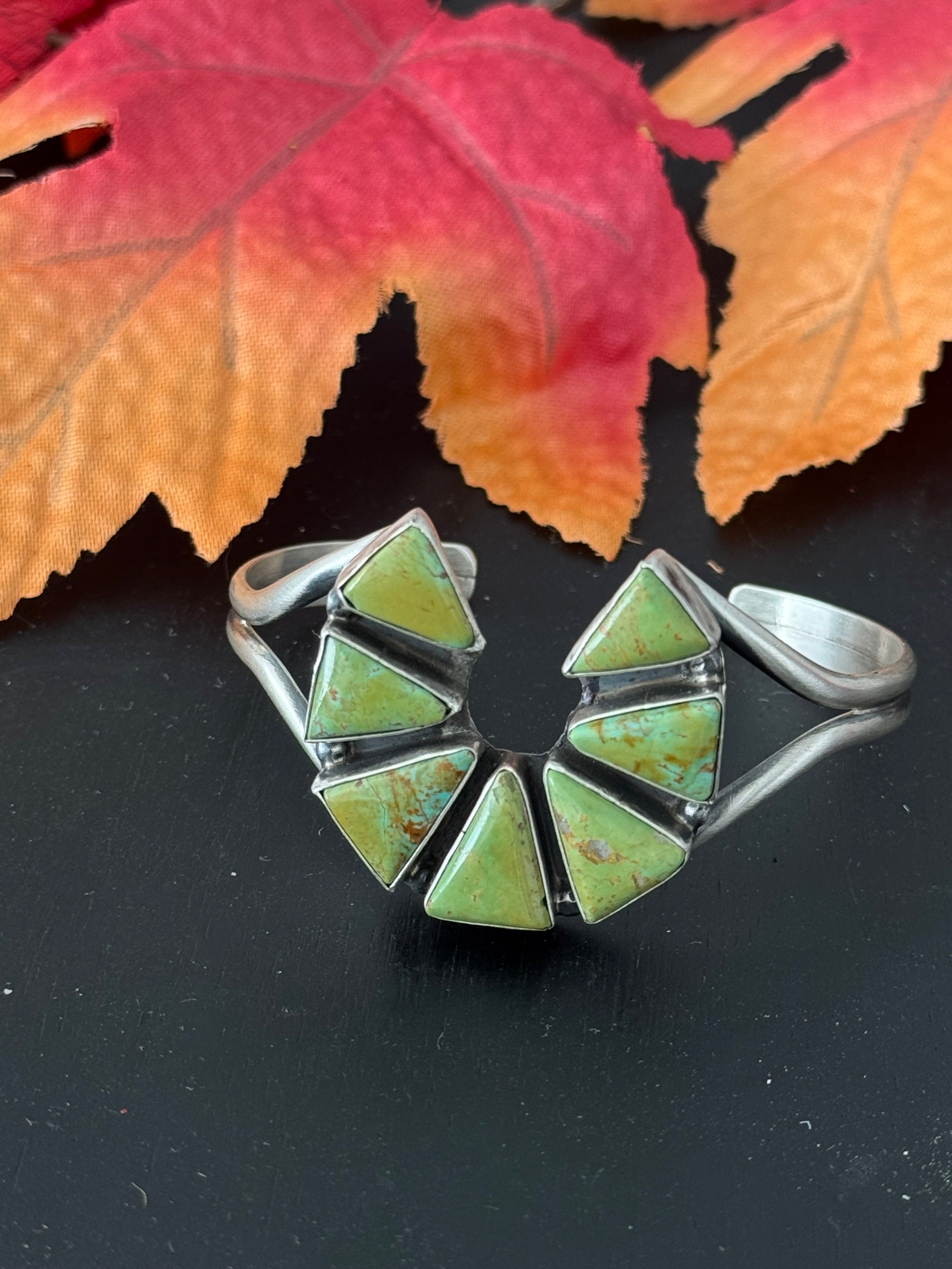 Donovan Skeets Kingman Turquoise & Sterling Silver Cluster Naja Cuff Bracelet