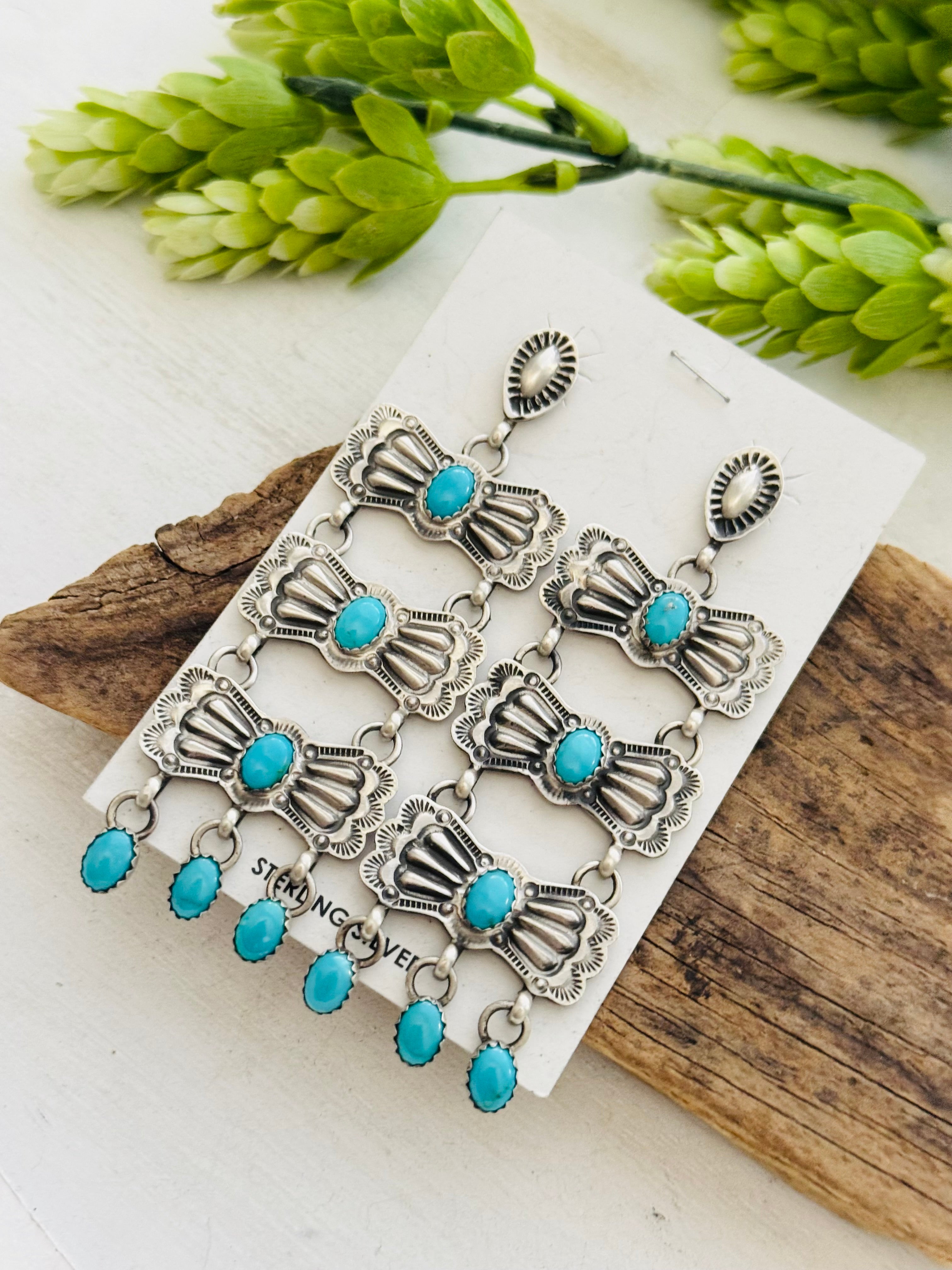 Eleanor Richards Kingman Turquoise & Sterling Silver Post Dangle Earrings