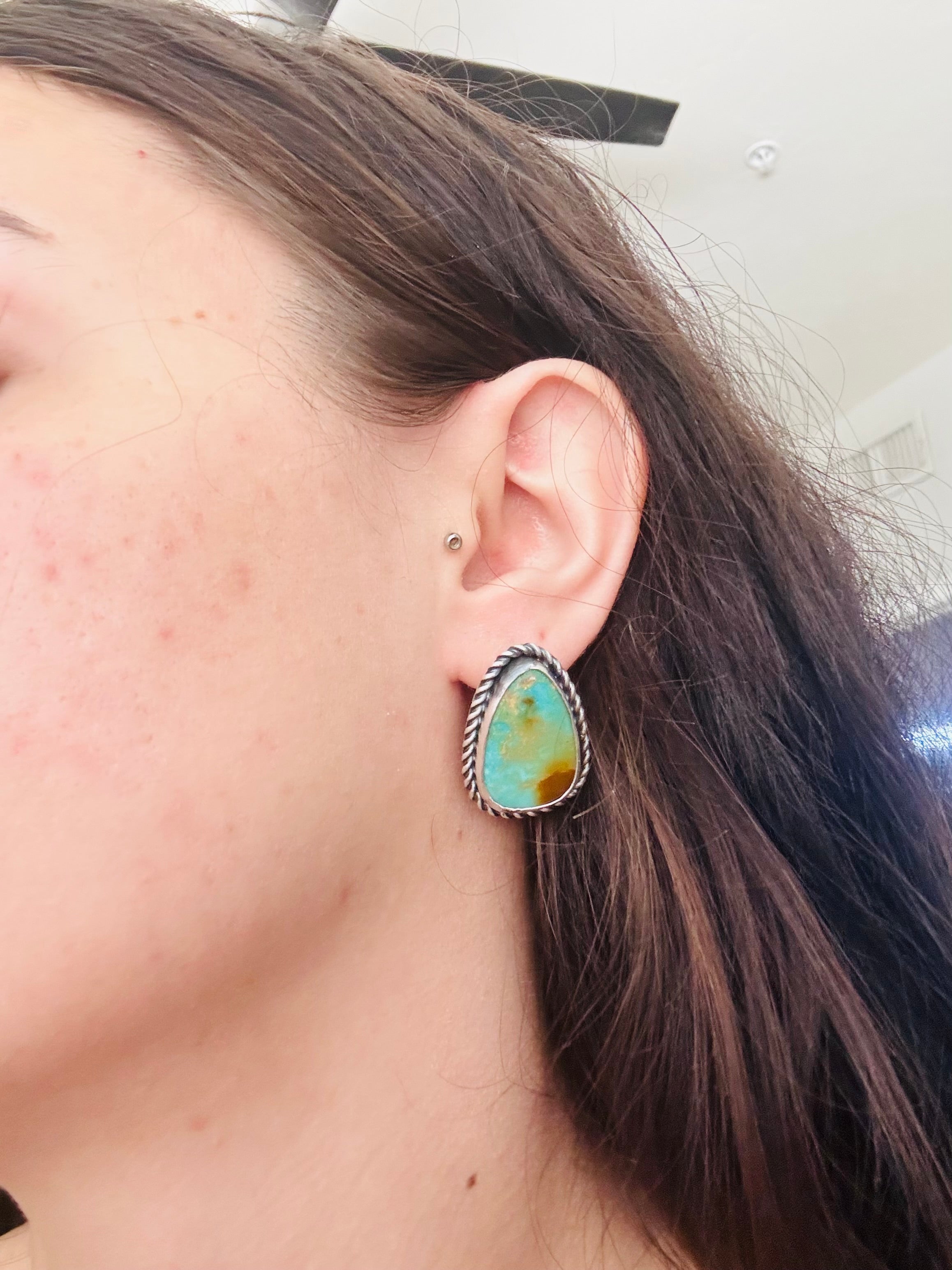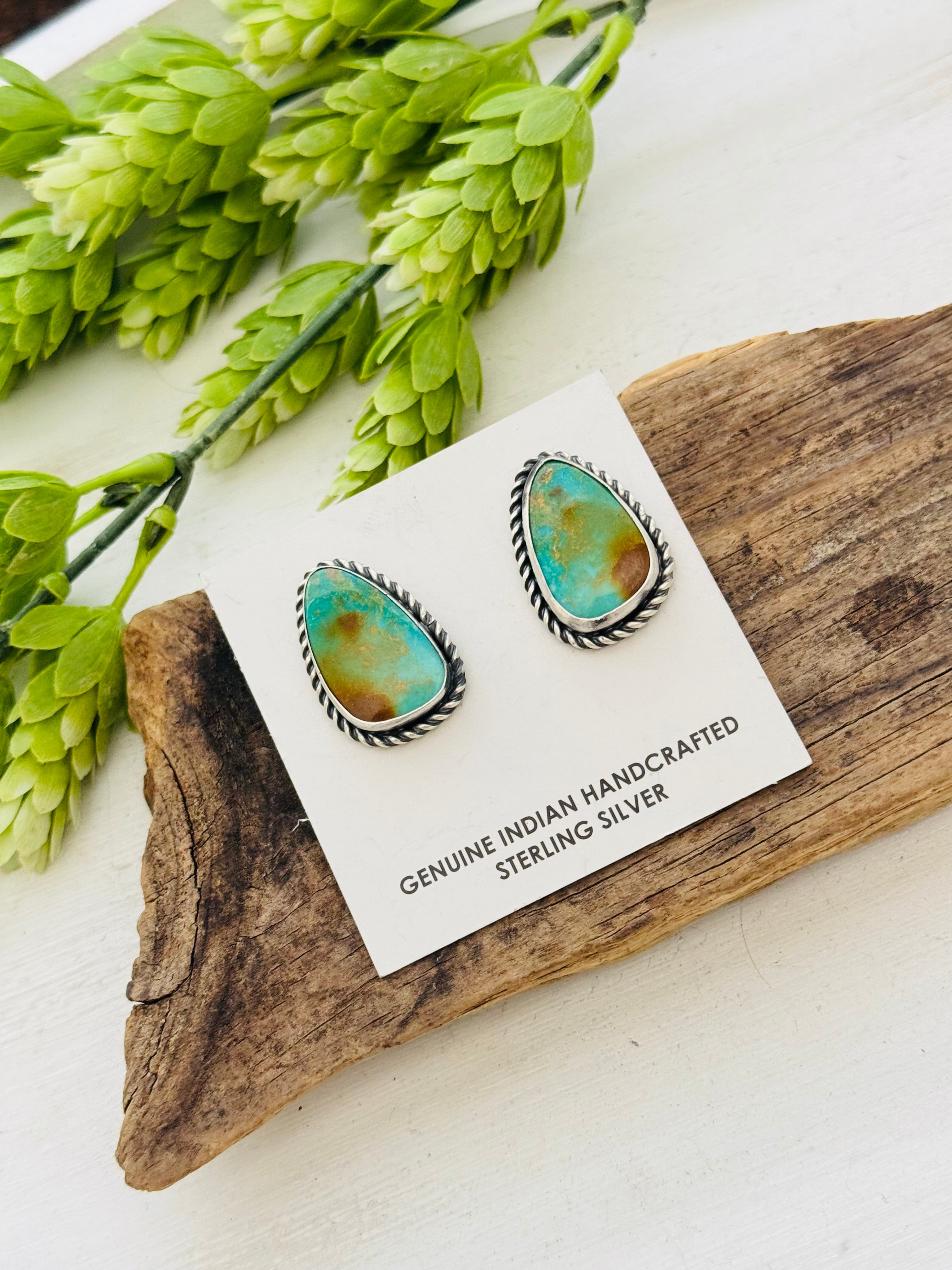 Eli Skeets Kingman Turquoise & Sterling Silver Post Earrings