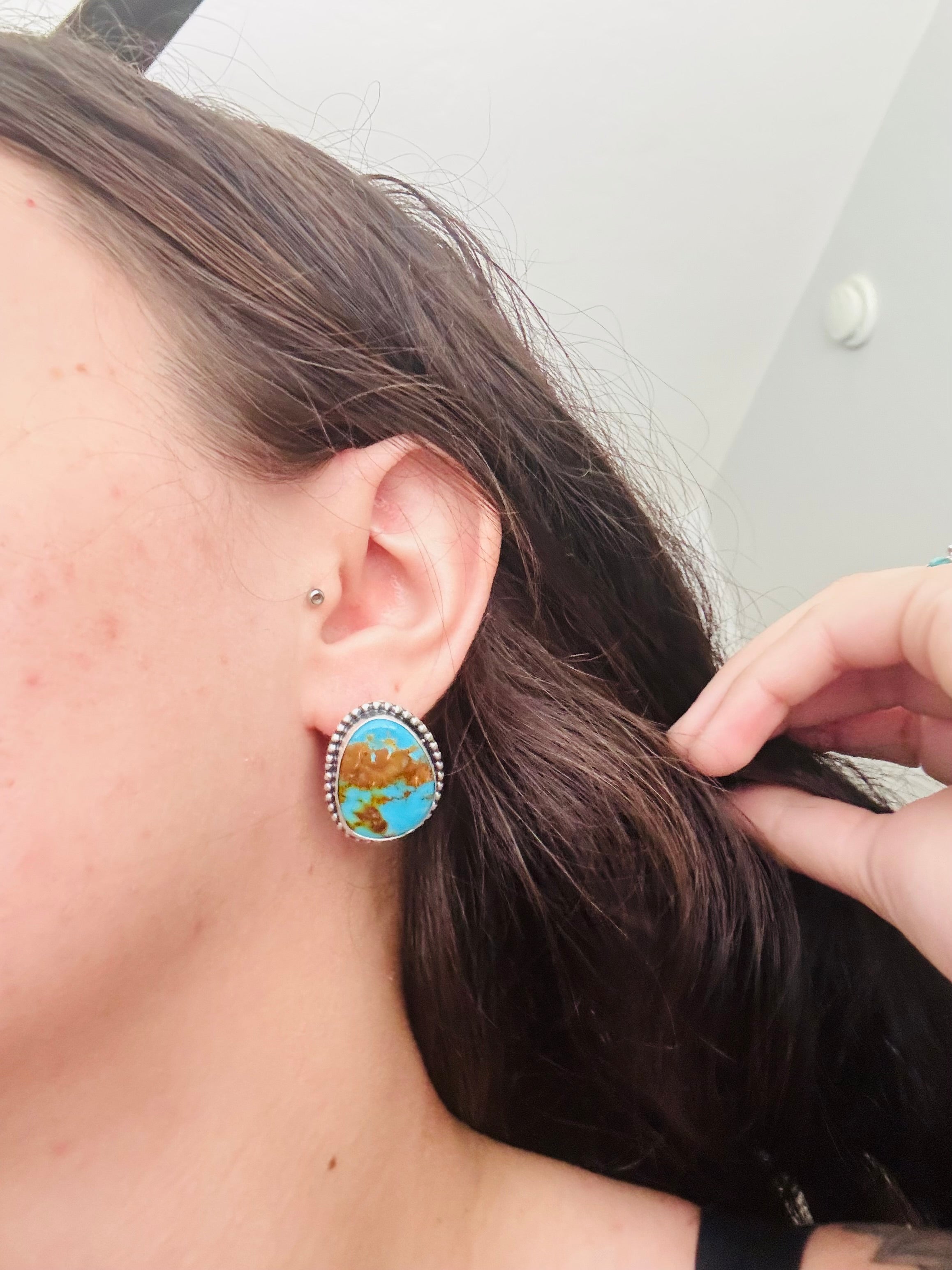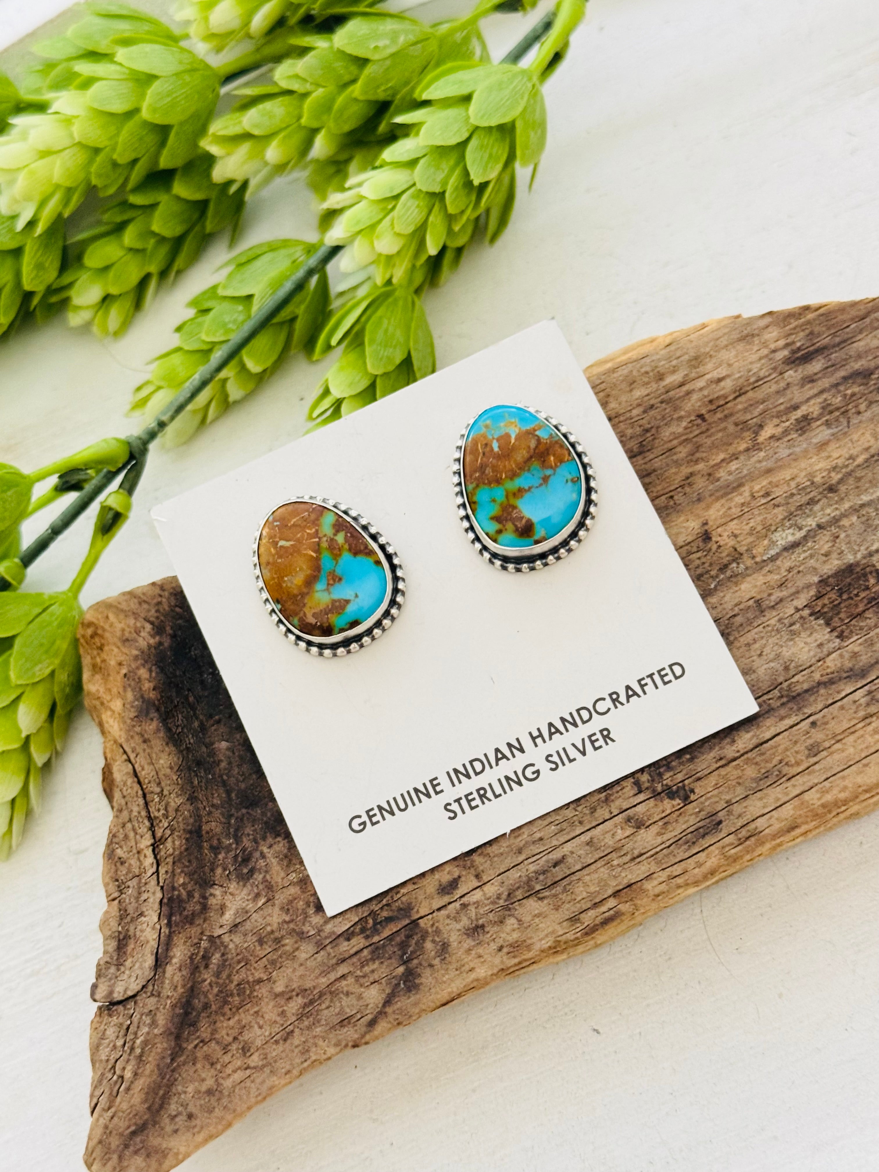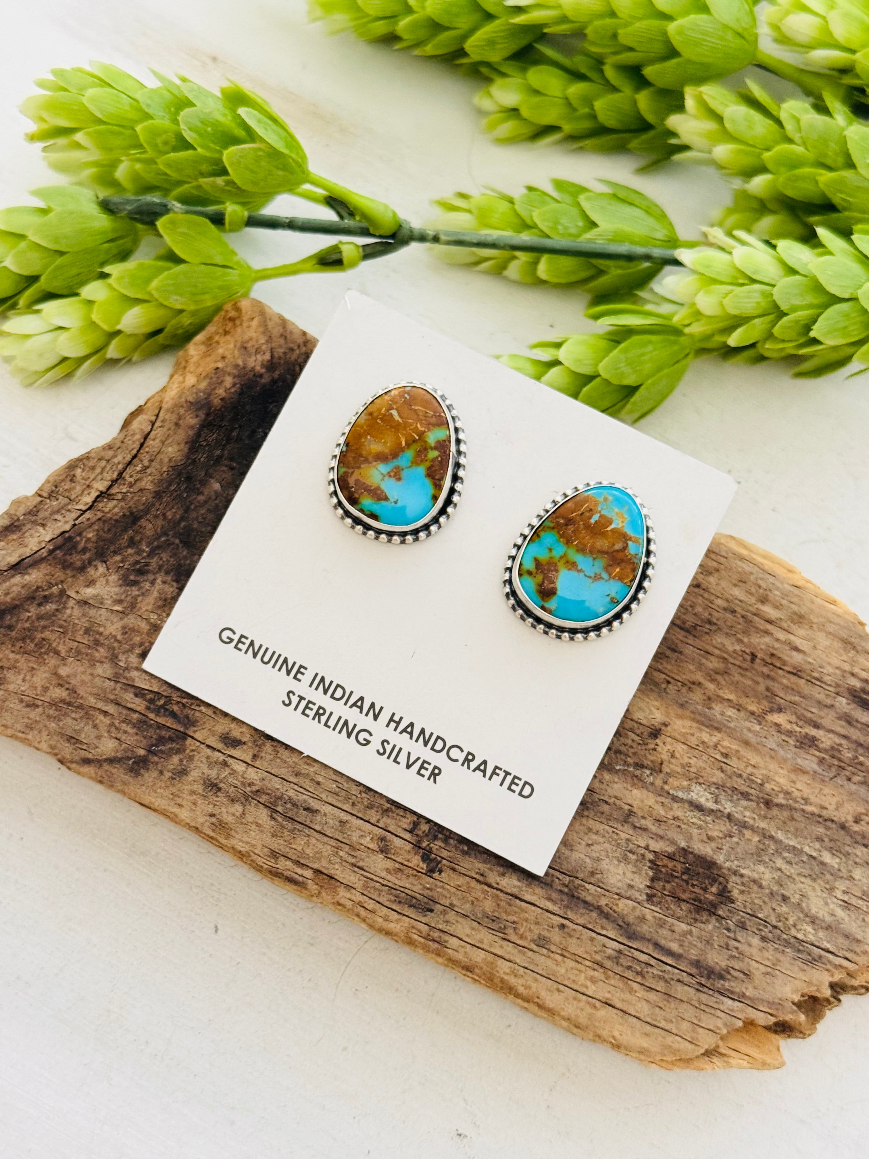Eli Skeets Kingman Turquoise & Sterling Silver Post Earrings