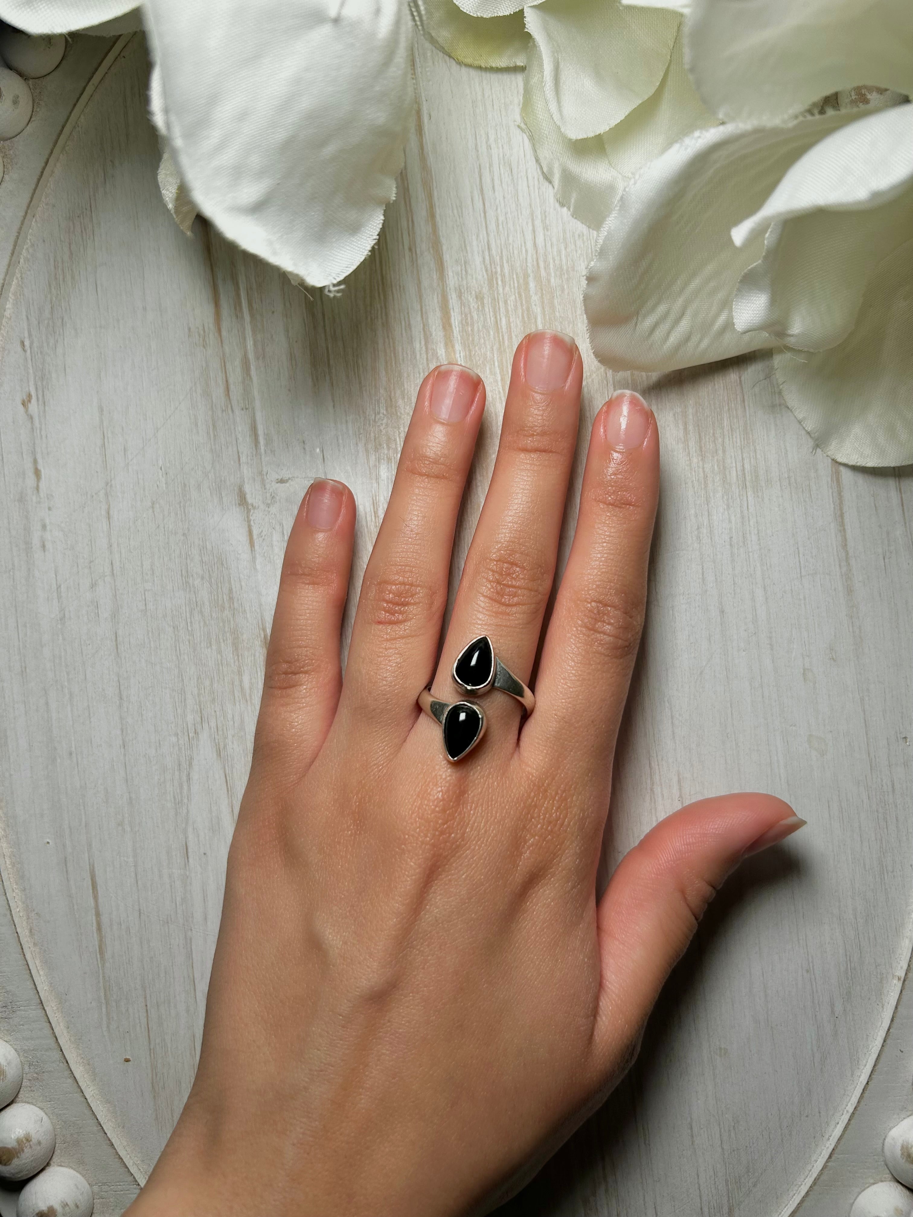Navajo Made Onyx & Sterling Silver Adjustable Ring