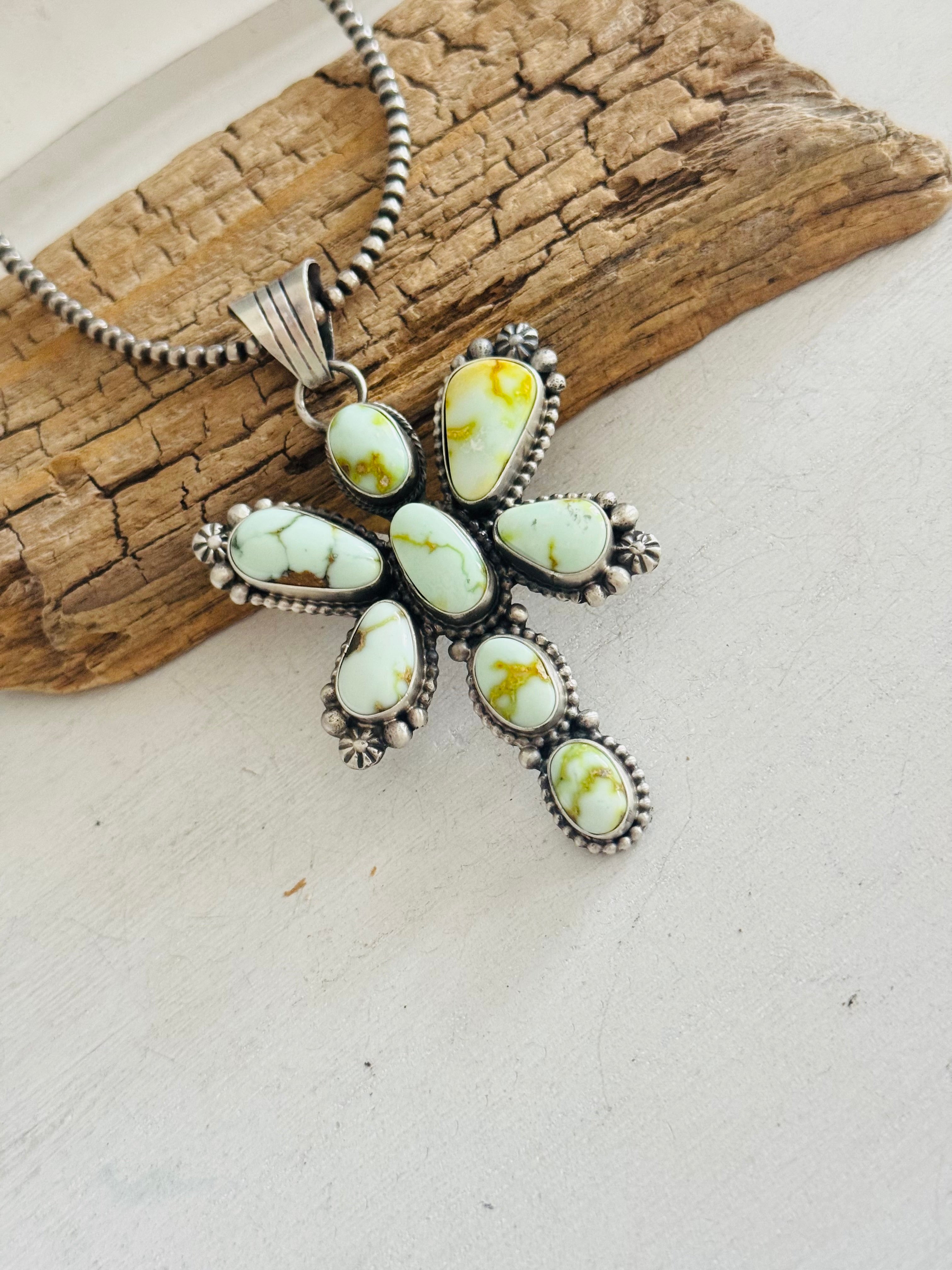 Eli Skeets Palomino Variscite & Sterling Silver Dragonfly Cluster Pendant