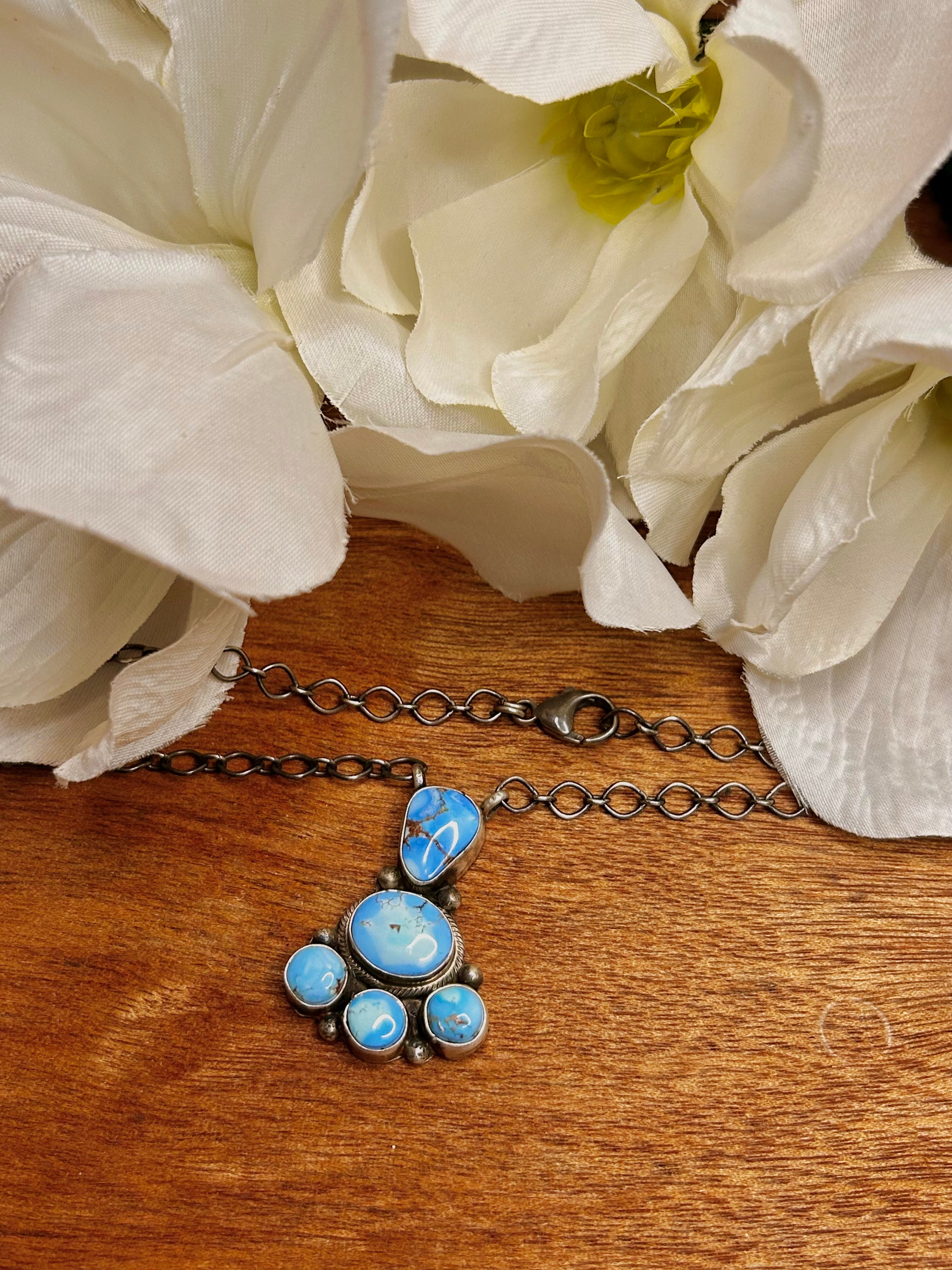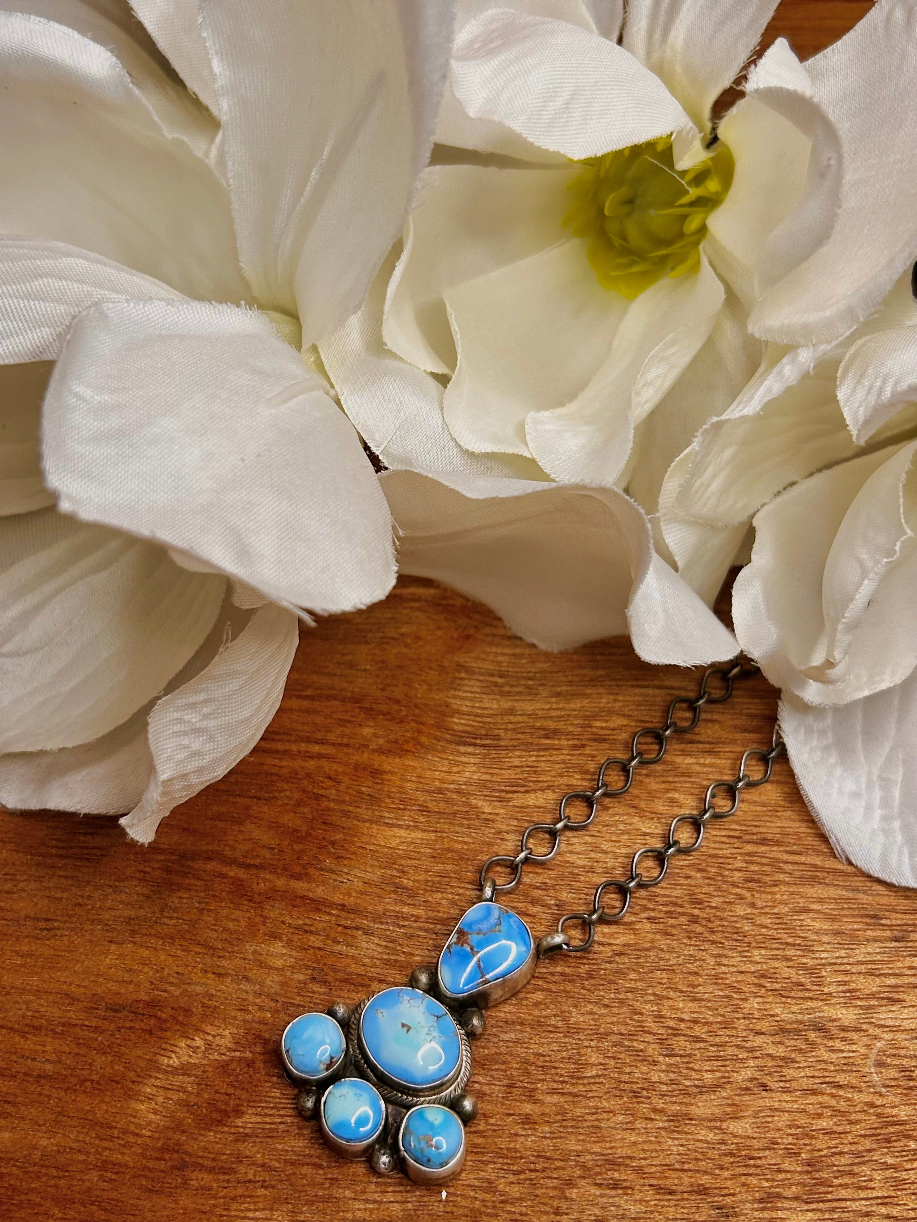 Ella Peters Made Golden Hill’s & Sterling Silver Necklace.  It measures 24 1/2 inches long with hang while the chain measures 21 1/2 inches long. Signed by the artist and stamped sterling silver.