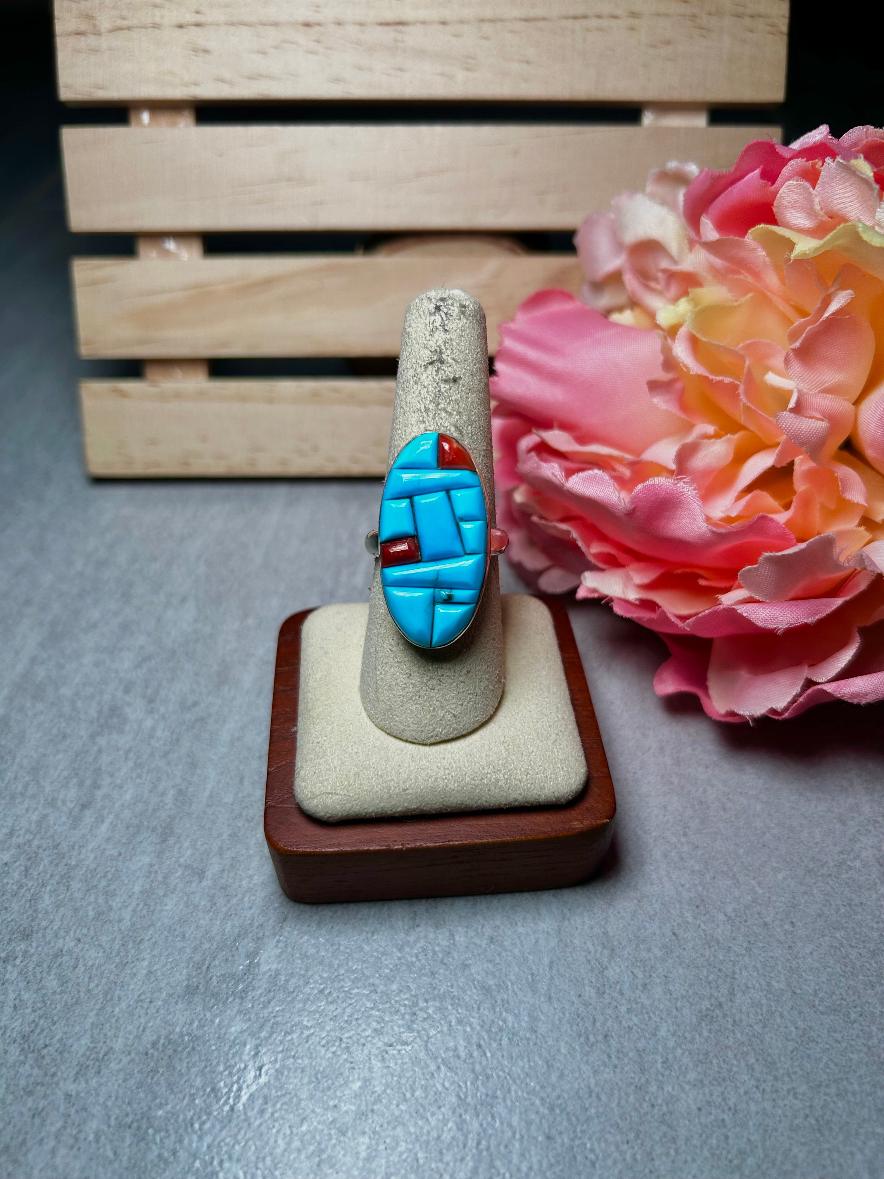 Navajo Multi Stone Cobble Stone & Sterling Silver Ring Size 8.25